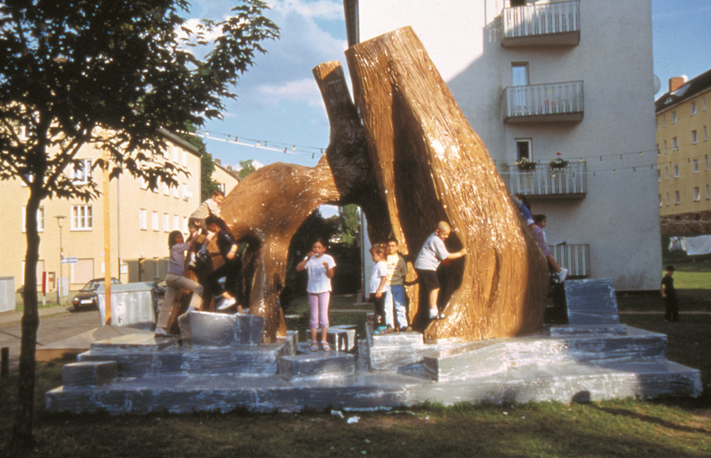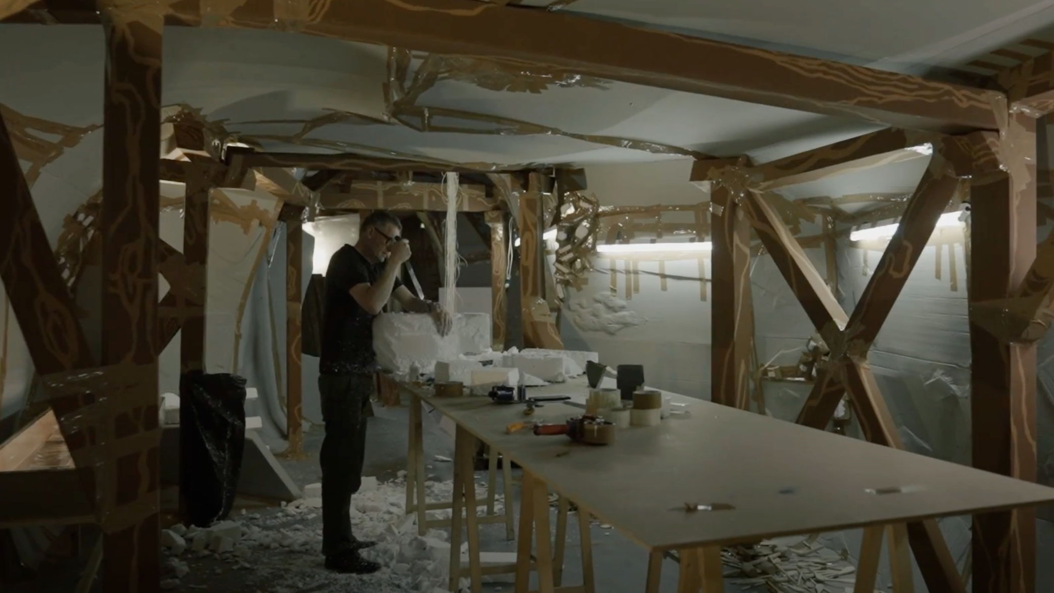 Thomas Hirschhorn at the Robert Walser-Sculpture, Biel/Bienne, 2019