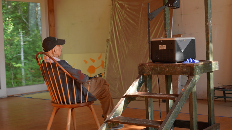 Gladstone Gallery will present 11 new paintings by Alex Katz inspired by Henri Matisse’s The Red Studio (1911). Each work is environmental in scale, using only a single orange on a white ground, and depicts the road in Maine where he has lived and worked every summer for almost 70 years. The view down this road is now so familiar to Katz that it has become embedded in his subconscious. He has rendered this vista numerous times over the decades, yet now, in this exhibition, the paintings seem to be formed from the unconscious memory rather than the eye. The image dematerializes, reduced to its elemental form. The viewer, standing before the orange void, falls into the space and into the years. Also accompanying the exhibition is a DRAWING RESTRAINT by Matthew Barney, which explores the then 96-year-old Katz at work on one of these enormous canvases.