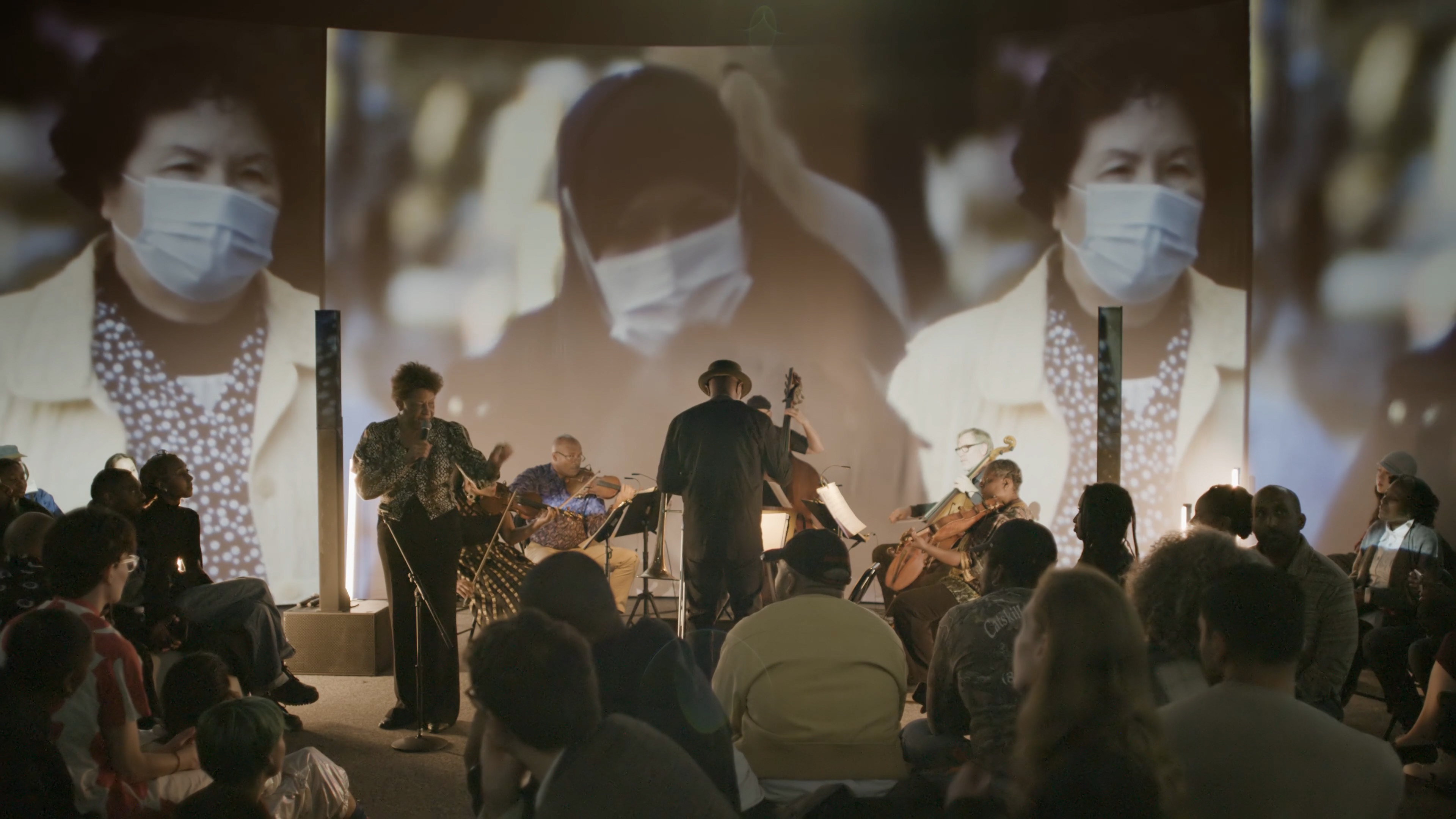Carrie Mae Weems’ Cyclorama: The Shape of Things (2021) is a culminating work in an ongoing, four-decade-long career dedicated to probing the jagged history of racial injustice in the United States and the world at large. On view almost continuously in different museum venues since its acclaimed premiere at the Park Avenue Armory in New York, The Shape of Things will return to the city in a special, free-to-the public, presentation at Gladstone, which coincides with the 2024 presidential election and to mark the artist’s inaugural exhibition with the gallery. At this moment of grave political precarity, with democracy itself on the ballot, Weems’ video installation immerses the viewer in a moving visual and sonic evocation of resistance, resilience, and redemption. Projected within a cylindrical structure, The Shape of Things draws its panoramic imagery from the 19th-century cyclorama, a popular form of entertainment comprising a 360° history painting often depicting epic battles and military conquests, frequently, and not unironically here, those from the Civil War. These circular murals and the structures that housed them would travel from city to city across the country, like the circus—another potent source for Weems in her quest to convey the convoluted spirit of our times, when tragedy and absurdity conspire together but cannot, despite all apparent efforts, drown out hope.