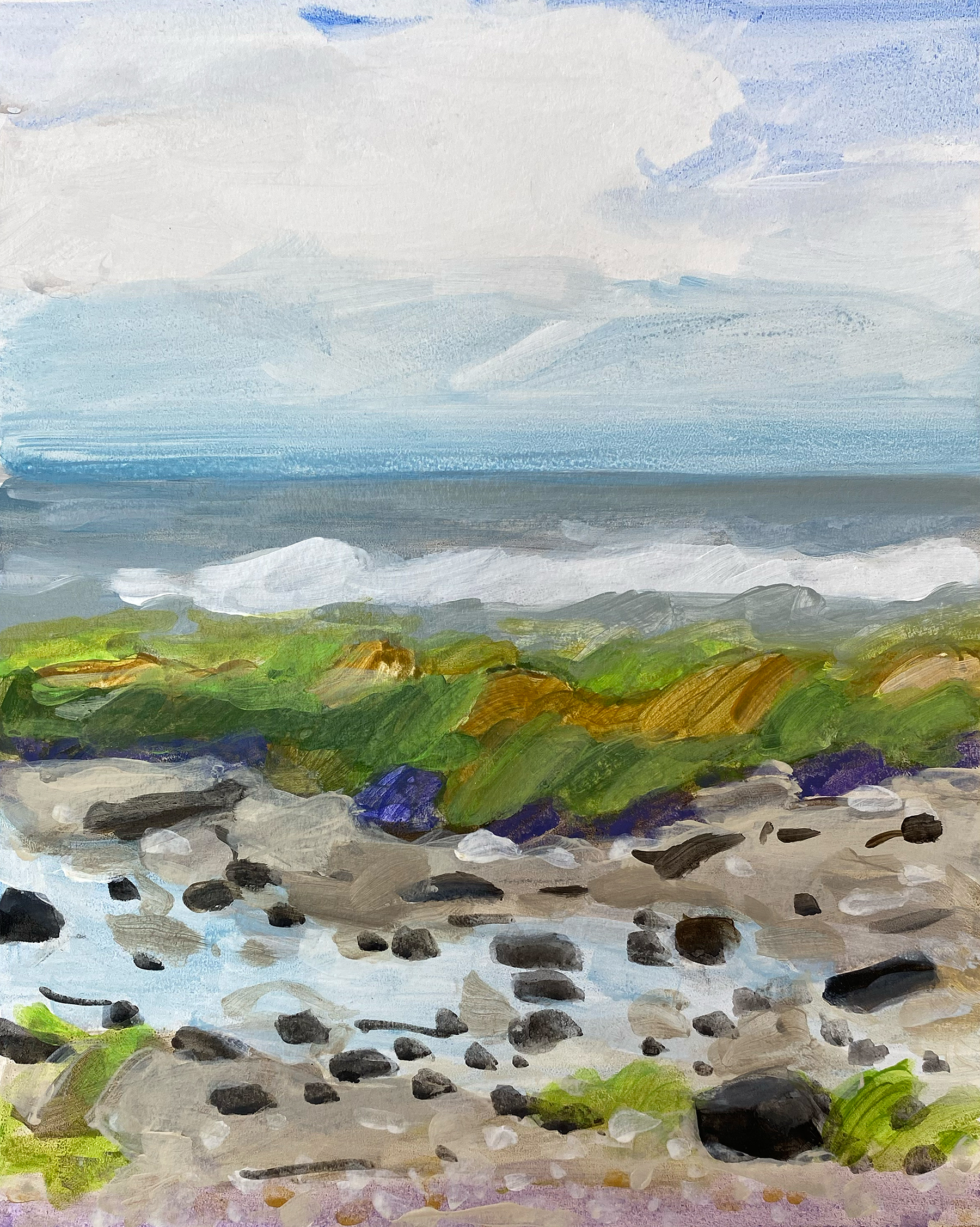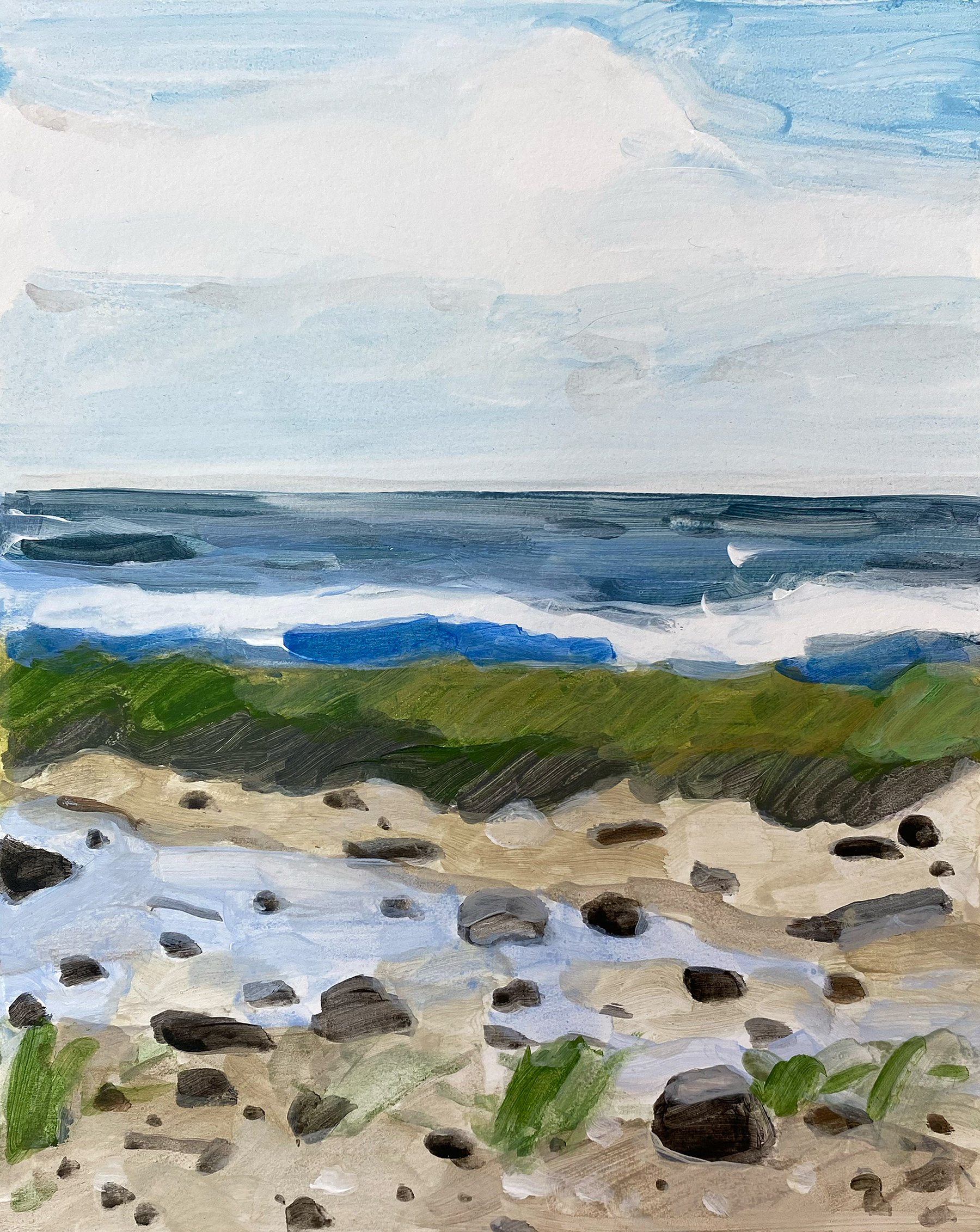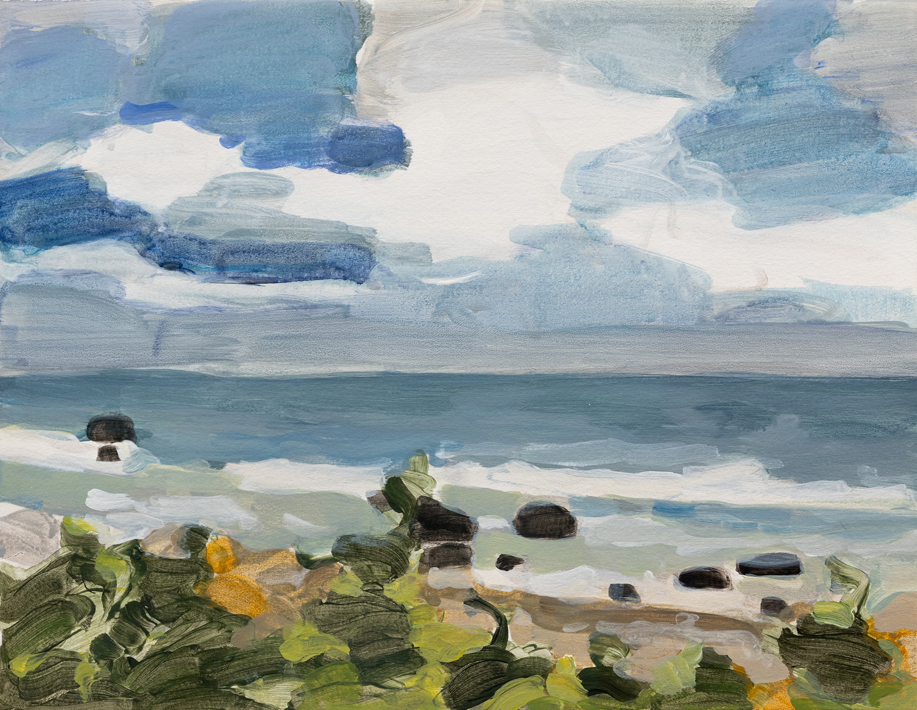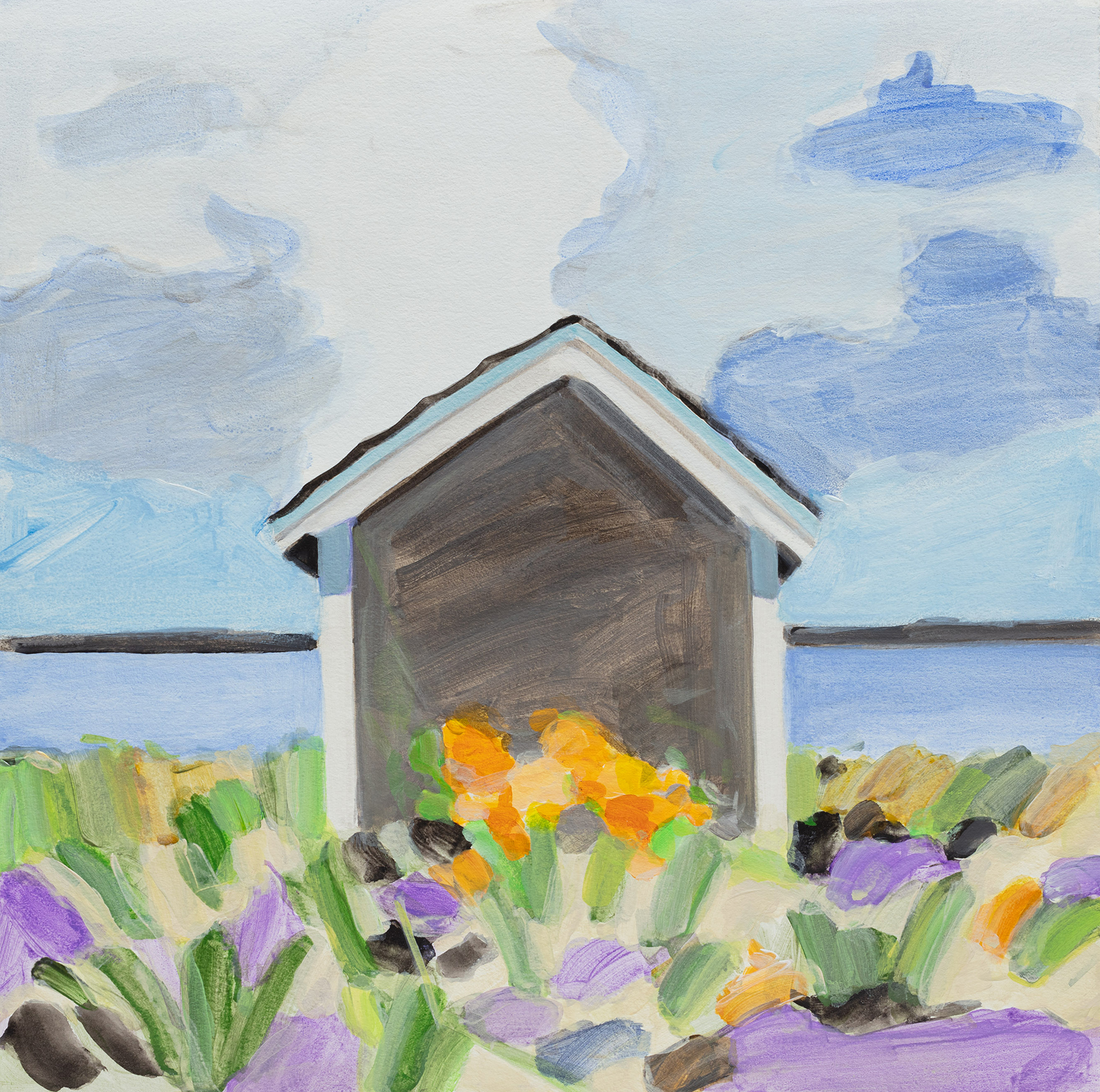 Gallace is widely recognized for her intimate portrayals of coastal and rural environments in the American Northeast. Working at a small scale, she renders houses, shorelines, and quiet landscapes with a distilled visual language that balances observation and abstraction. Her scenes feel both specific and elusive, suggesting places shaped as much by memory and perception as by direct experience.