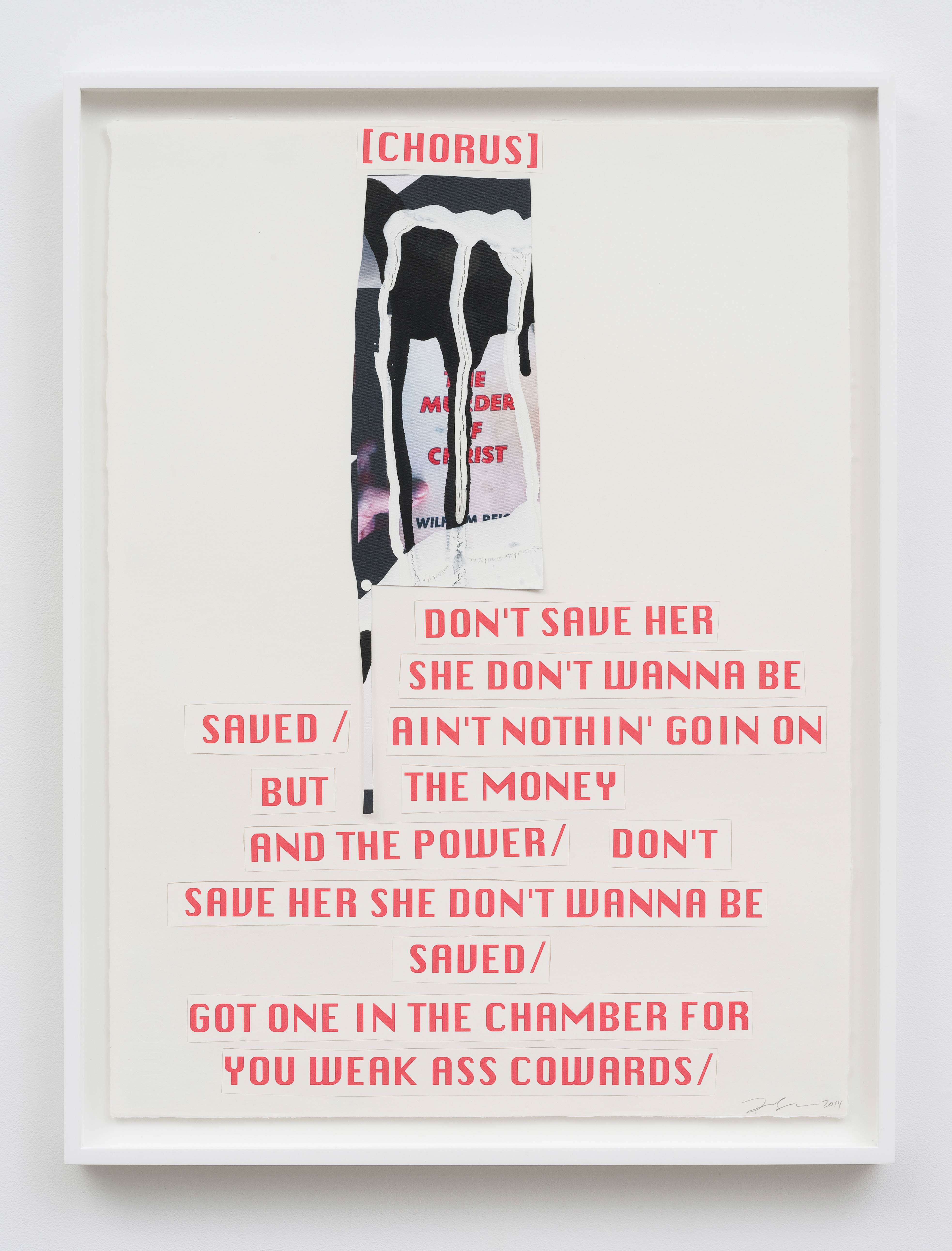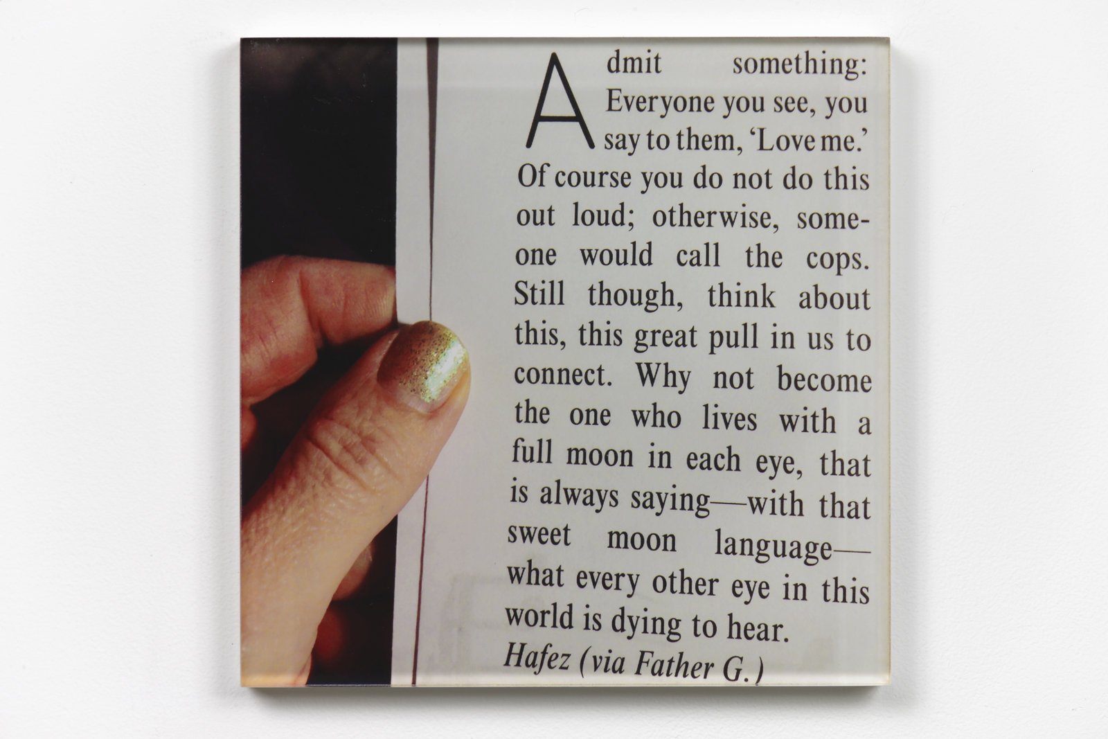 Frances Stark (b. 1967, Newport Beach, California) lives and works in Los Angeles, California. Stark addresses the conditions of creative labor, producing candid and affecting work about the nature of artistic practice and the corresponding yet integral banality of the everyday. The artist’s body of work stands as a self-reflexive inquiry into the process of artistic production, and the often-elided demands of daily life. Stark makes drawings, collages, videos, PowerPoints, performances, and paintings that have been extensively exhibited in museums and galleries worldwide.
