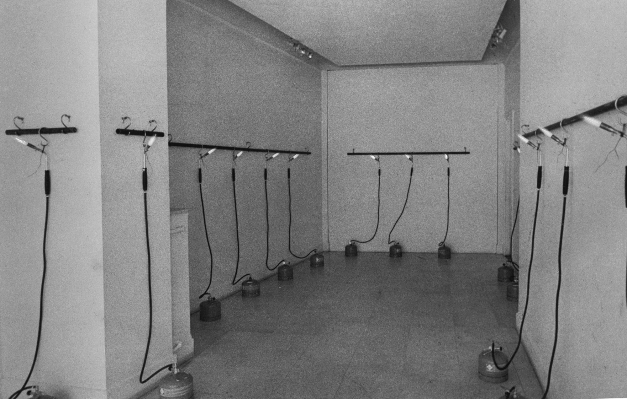 Kounellis's work has appeared in key, historical exhibitions such as the first Arte Povera exhibition, Arte Povera, Galleria La Bertesca, Genova, Italy (1967); When Attitudes Become Form, Kunsthalle Bern, Switzerland (1969); Documenta 5 in Kassel, Germany (1972). His work has been featured in solo exhibitions at several major institutions, including: Kunstmuseum in Bern (1977); Museum Boijmans Van Beuningen, Rotterdam, Netherlands (1977); Musée d’Art Moderne de la Ville de Paris, France (1980); Whitechapel Art Gallery, London (1981); Musée d'Art Contemporain, Bordeaux, France (1985); The Museum of Contemporary Art Chicago, Illinois (1986); Musée d'Art Contemporain, Montreal, Canada (1987); Castello di Rivoli, Museo d'Arte Contemporanea, Rivoli, Turin, Italy (1988) Jannis Kounellis: Via del Mare, Stedelijk Museum, Amsterdam, Netherlands (1990); The Museo Nacional Centro de Arte Reina Sofía, Madrid (1996); Museum Ludwig, Cologne, Germany (1997); Neue National Gallery, Berlin (2007); and Monnaie de Paris, France (2016).