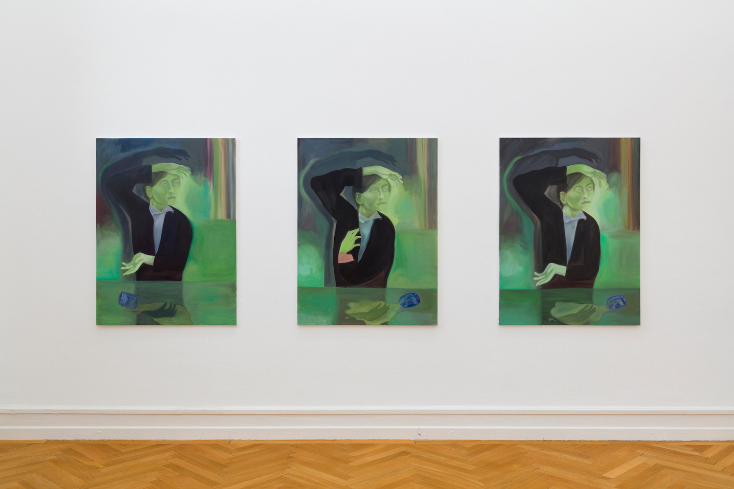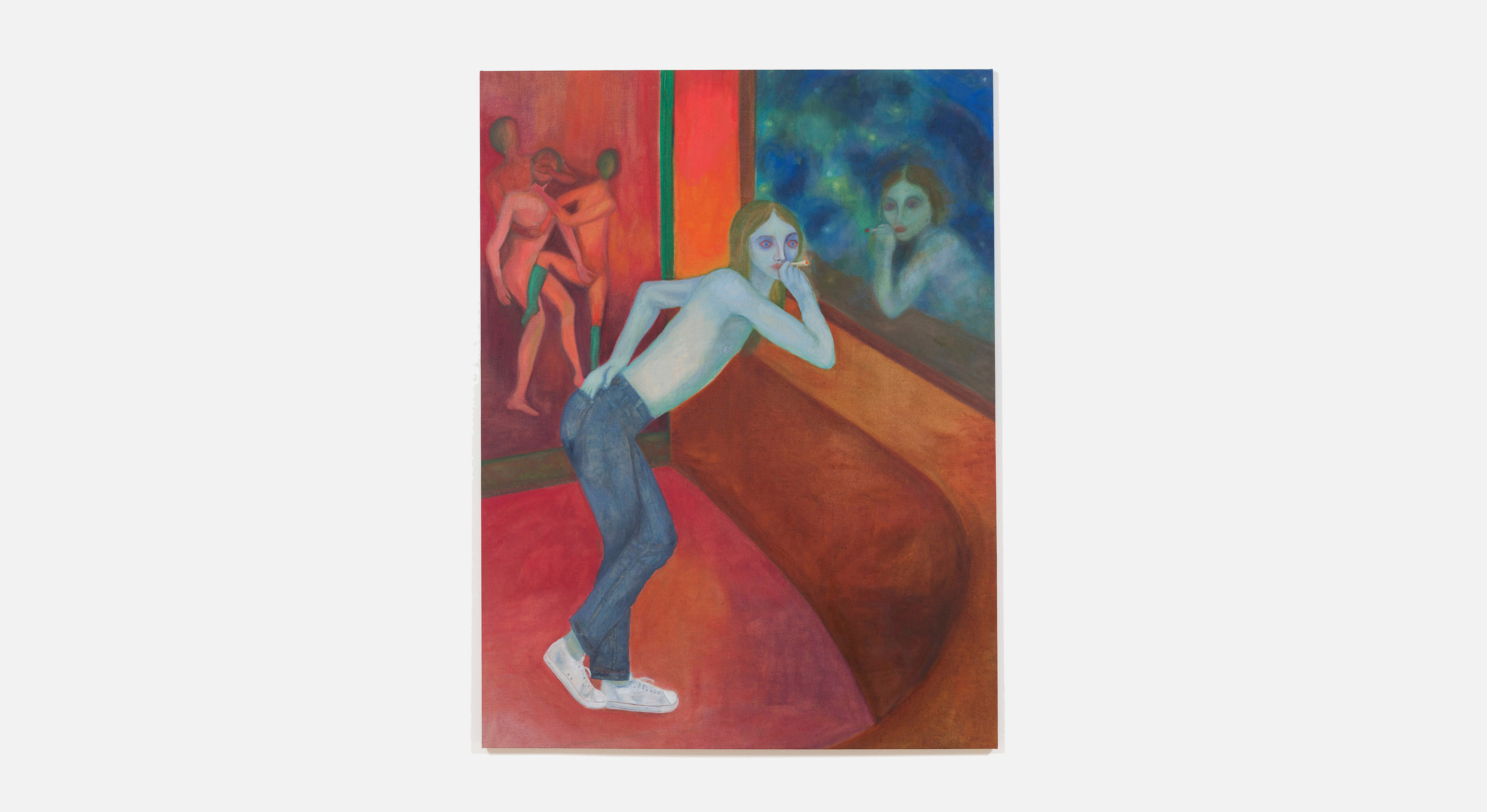 Jill Mulleady (b. 1980, Montevideo, Uruguay) is lives and works between Los Angeles and Paris. She works primarily in painting and she often intervenes in the spaces where she exhibits, staging the paintings with readymades, sculptures, and architectural installations, exploring themes of memory, transformation, and the power of history. In her work, references to historical painting are put into communication with images taken from both popular culture and personal life, creating an anachronic feeling of merged and frictional temporalities. Her practice shifts between close observations of everyday reality and highly elaborated imaginary worlds. These paintings can be seen as allegories for the contemporary experience of the image as an interface: not just a picture but a means of mobilizing attention, bodies and affects within an increasingly virtualized social space.