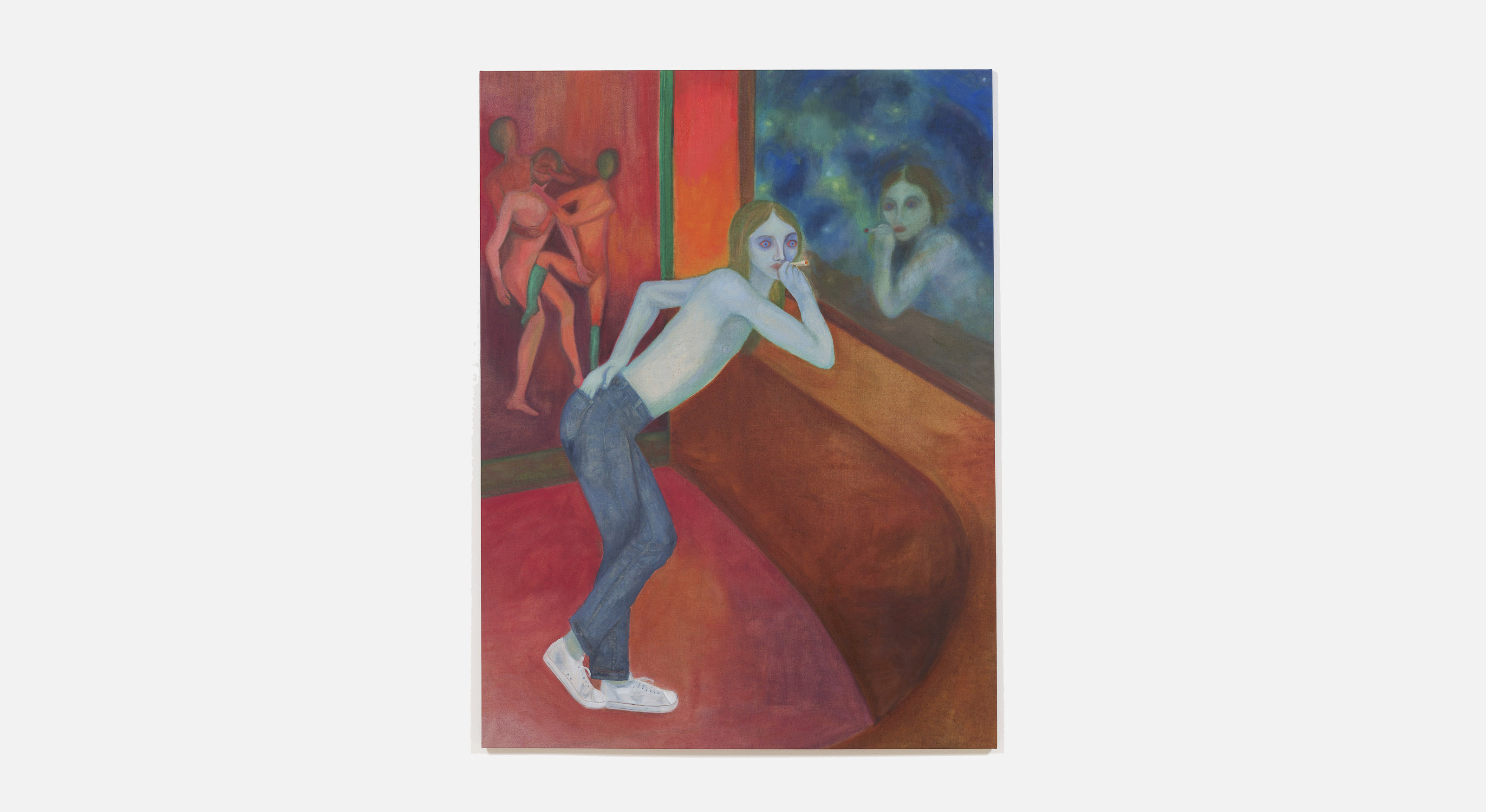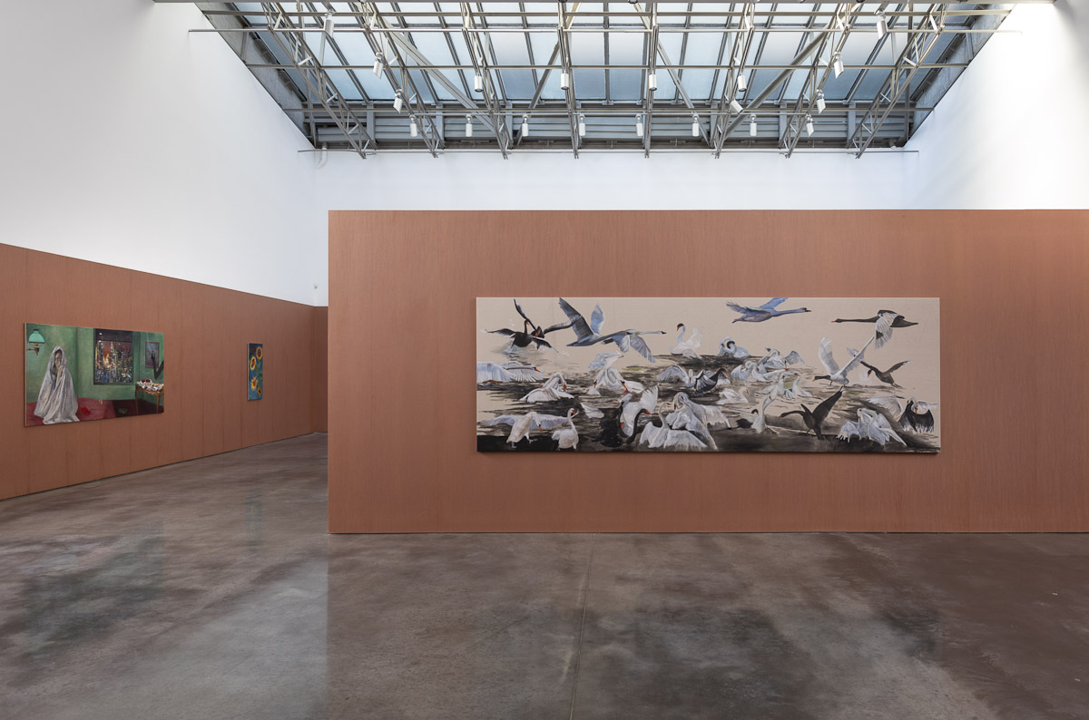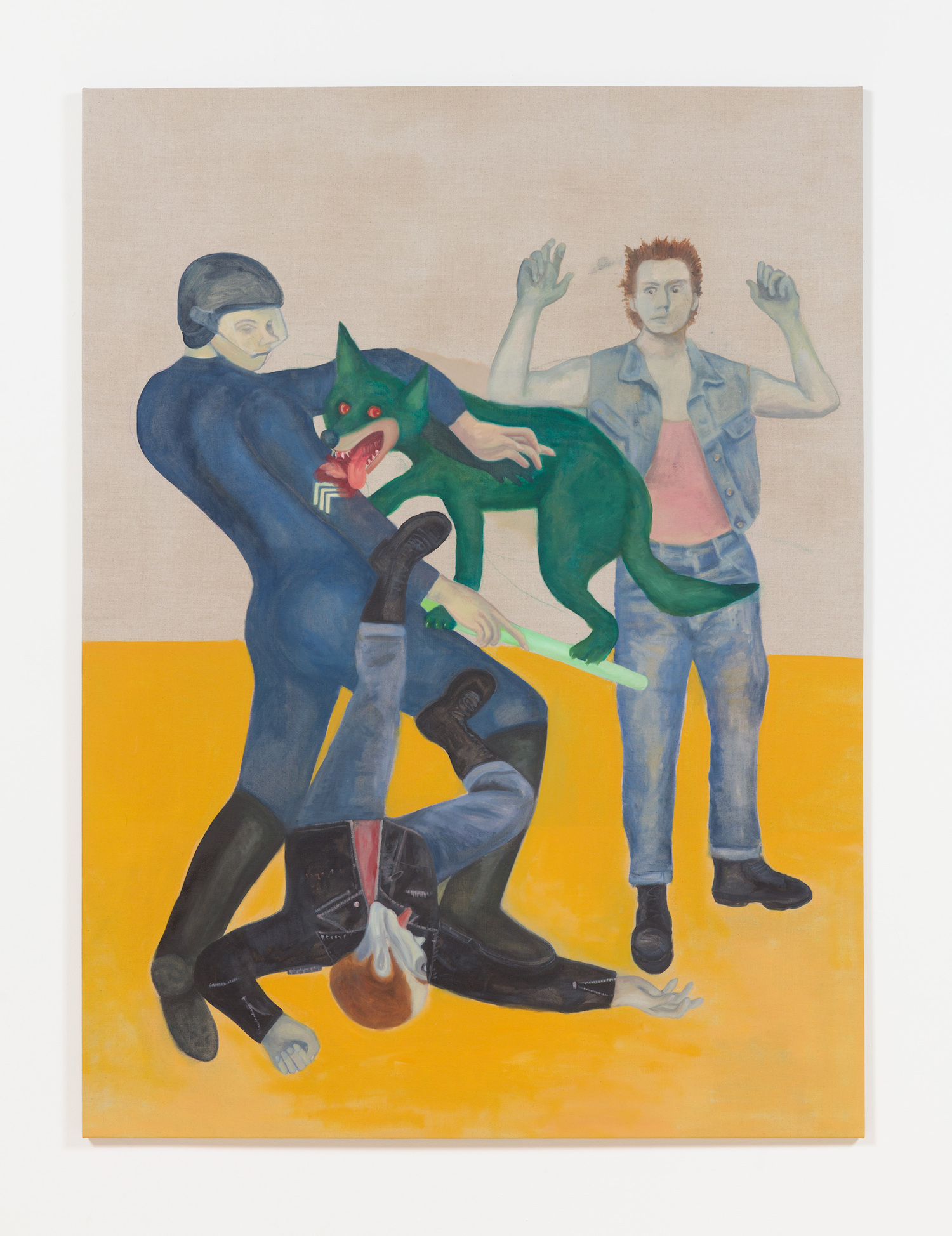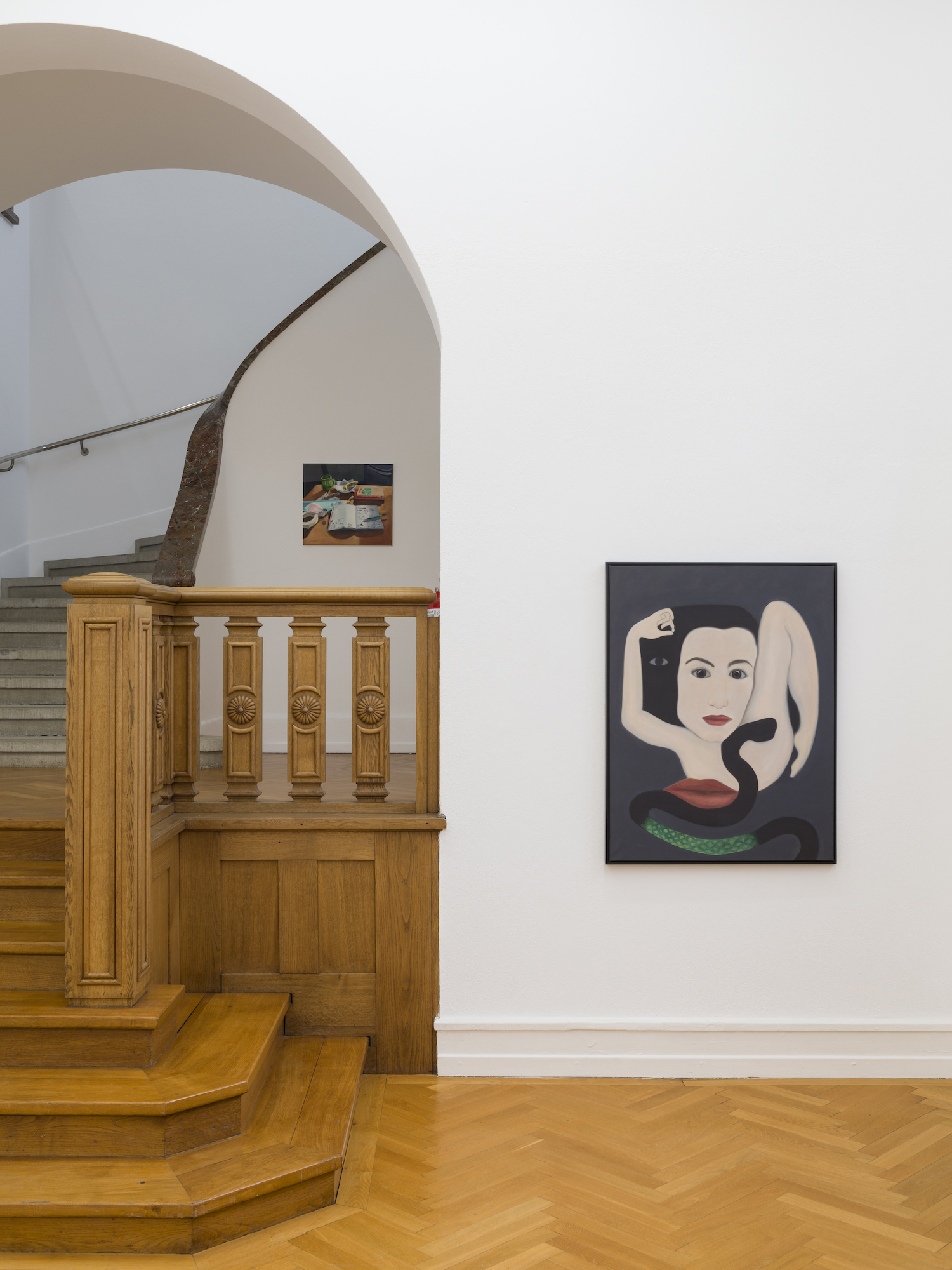 Jill Mulleady (b. 1980, Montevideo, Uruguay) is lives and works between Los Angeles and Paris. She works primarily in painting and she often intervenes in the spaces where she exhibits, staging the paintings with readymades, sculptures, and architectural installations, exploring themes of memory, transformation, and the power of history. In her work, references to historical painting are put into communication with images taken from both popular culture and personal life, creating an anachronic feeling of merged and frictional temporalities. Her practice shifts between close observations of everyday reality and highly elaborated imaginary worlds. These paintings can be seen as allegories for the contemporary experience of the image as an interface: not just a picture but a means of mobilizing attention, bodies and affects within an increasingly virtualized social space.