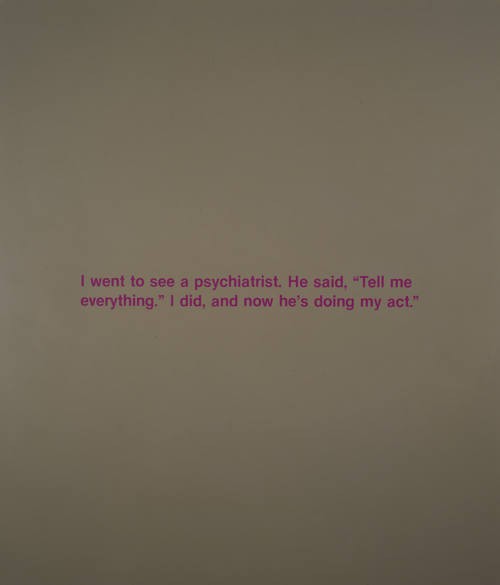 Richard Prince (b. 1949, Panama Canal Zone) lives and works in New York State. Prince’s work has been the subject of major solo exhibitions, including “SAME MAN,” Louisiana Museum of Modern Art, Humblebæk, Denmark (2022); “Portraits,” Museum of Contemporary Art Detroit, Michigan (2019); “Richard Prince - Works from the Astrup Fearnley Collection,” Astrup Fearnley Museet, Oslo (2018); “Cowboys: Selected Works from the Collection,” Espace Culturel Louis Vuitton, Beijing (2018); “Untitled (Cowboy),” Los Angeles County Museum of Art, California (2017); “It’s a Free Concert,” Kunsthaus Bregenz, Austria (2014); “Prince/Picasso,” Picasso Museum, Barcelona (2012); “American Prayer,” Bibliothèque nationale de France, Paris (2011); “American Prayer,” Bibliothèque nationale de France, Paris (2011); “The Early Works,” Neuberger Museum of Art, New York (2007); Solomon R. Guggenheim Museum, New York (2007, traveled to Walker Art Center, Minneapolis; and Serpentine Gallery, London, through 2008); “Canaries in the Coal Mine,” Astrup Fearnley Museum, Oslo (2006); “American Dream, Collecting Richard Prince for 27 Years,” Rubell Family Collection, Miami (2004); Museum für Gegenwartskunst, Basel, Switzerland (2001, traveled to Kunsthalle Zurich, Switzerland; and Kunstmuseum Wolfsburg, Germany); “Upstate,” MAK Center for Art and Architecture, Schindler House, Los Angeles (2000); “4x4,” MAK Center for Art and Architecture, Vienna (2000); Museum Haus Lange / Museum Haus Esters, Germany (1997); Haus der Kunst / Süddeutsche Zeitung, Munich (1996); “Fotos, Schilderijen, Objecten,” Museum Boymans–Van Beuningen, Rotterdam (1993); San Francisco Museum of Modern Art, California (1993); and Whitney Museum of American Art, New York (1992). Prince’s works are in the public collections of the Metropolitan Museum of Art, New York; Modern Art Museum of Fort Worth, Texas; Museum of Fine Arts Collection, Boston; Museum of Modern Art, New York; and the Victoria and Albert Museum, London.