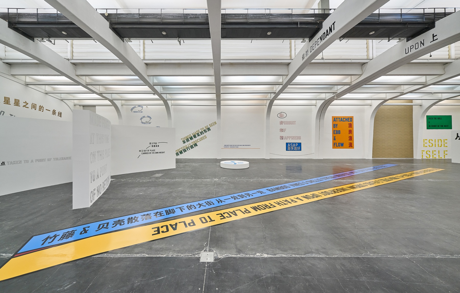 Lawrence Weiner was born in Manhattan in 1942 and raised in the South Bronx, and lived and worked between New York City and Amsterdam. Weiner has been the subject of a major retrospective survey at the Whitney Museum, New York; Museum of Contemporary Art, Los Angeles, and K21 Kunstsammlung Nordrhein-Westfalen, Düsseldorf, Germany (2007-2009). Other retrospectives have been shown at Museo Tamayo Arte Contemporaneo, Mexico City, Mexico (2004); Kunstmuseum Wolfsburg, Germany (2000); Walker Art Center, Minneapolis, MN, USA (1994); and Hirshhorn Museum and Sculpture Garden, Washington DC, USA (1990). Solo exhibitions include the Holstebro Kunstmuseum, Denmark (2021); Fundación Casa Wabi, Oaxaca, Mexico (2020); Museo Nivola, Orani, Italy (2019); Milwaukee Art Museum (2017); Kunsthaus Bregenz, Austria (2016); Blenheim Art Foundation, United Kingdom (2015); South London Gallery, United Kingdom (2014); Villa Panza, Italy, Museu d’Art Contemporani de Barcelona, Spain (2013); and the Jewish Museum, New York (2012). Weiner participated in Documenta 5, 6, 7, and 13 (1972, 1977, 1982, 2012); the 36th, 41st, 50th and 55th Venice Biennales, Italy (1972, 1984, 2003, 2013); and the 27th Biennale de Sao Paulo, Brazil (2006).