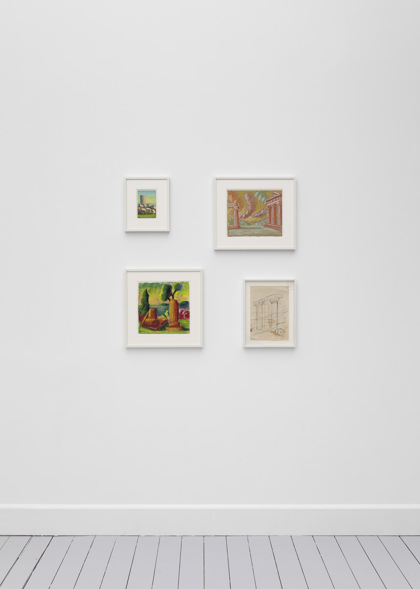 Gladstone is pleased to present Capricci, a presentation of works by Salvo (1947–2015). Throughout Salvo’s career, the artist pursued a spiritual connection with the world of antiquity and explored themes of temporality and materiality. Salvo’s practice evolved from provocative conceptual sculptures and political self-portraiture to ‘capricci’ paintings that were formative to his lifelong body of work. Salvo’s fascination by the marriage of architecture, archeological ruins, and landscapes into the mythological compositions of ‘capricci’ brought the past into conversation with the present. Foregrounding Salvo’s study of Greek and Roman ruins, columns, and landscapes, Capricci presents a selection of works spanning oil painting, pastel, ceramics, and works on paper, distilling remembered spaces and architectural motifs into a meditation on the passage of time.