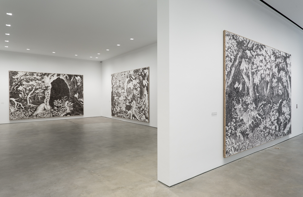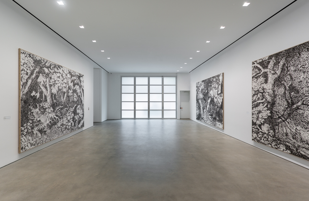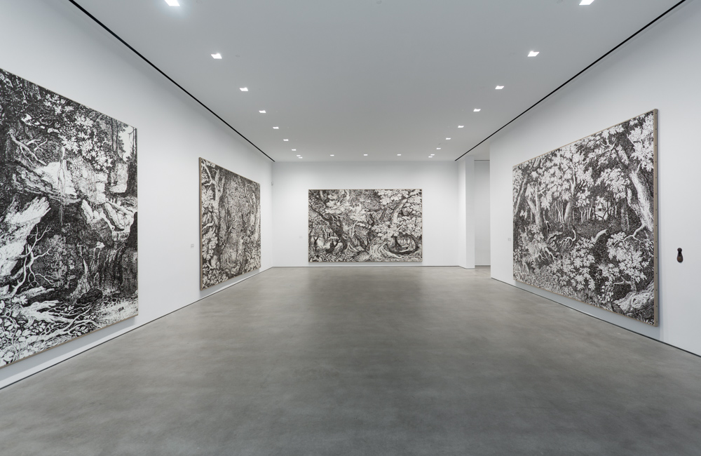 Gladstone is pleased to present an exhibition of three distinct yet interrelated bodies of work by Ugo Rondinone in both Chelsea locations. Developed throughout his practice, these large-scale landscape drawings, window, and sun sculptures speak directly to Rondinone’s continued exploration of German Romanticism and its key artistic figure, Caspar David Friedrich. Reanimating commonplace objects—such as tree branches or window frames—in his own Neo-Romantic signature, he creates a lyrical world of his own. This formal and generic diversity mines the fecund aesthetic and philosophical tensions central to his work: nature and humanity, exterior world and inner life, expansion and intimacy, organic and artificial. Rondinone stylizes these dichotomies into new physical and temporal sites of self-reflection and universal connection.