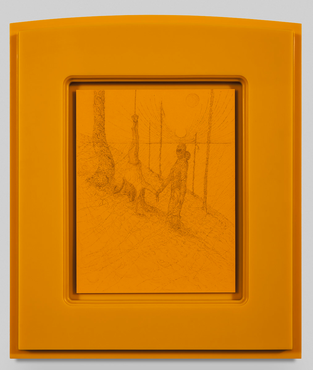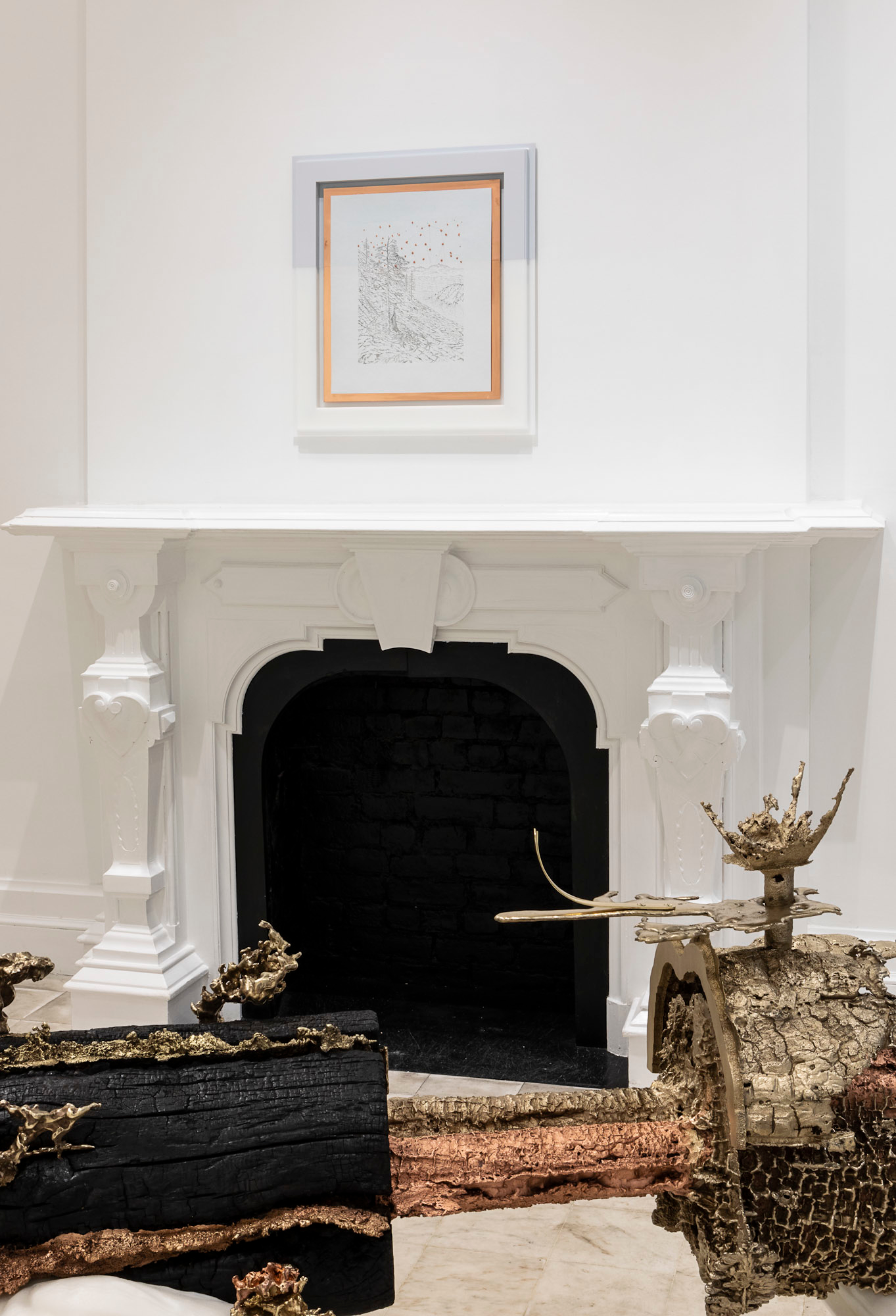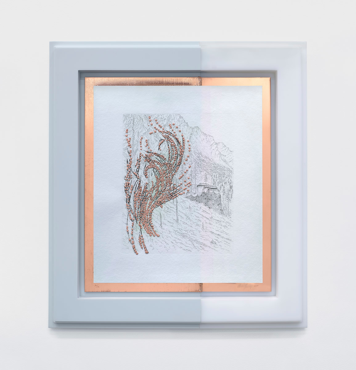 Gladstone Gallery is pleased to present Embrasure, an exhibition of new drawings, etchings, and sculpture by Matthew Barney. The works in Embrasure draw from the narratives, processes, and imagery introduced in Barney’s latest project Redoubt, while expanding on its allegorical and cosmological themes.