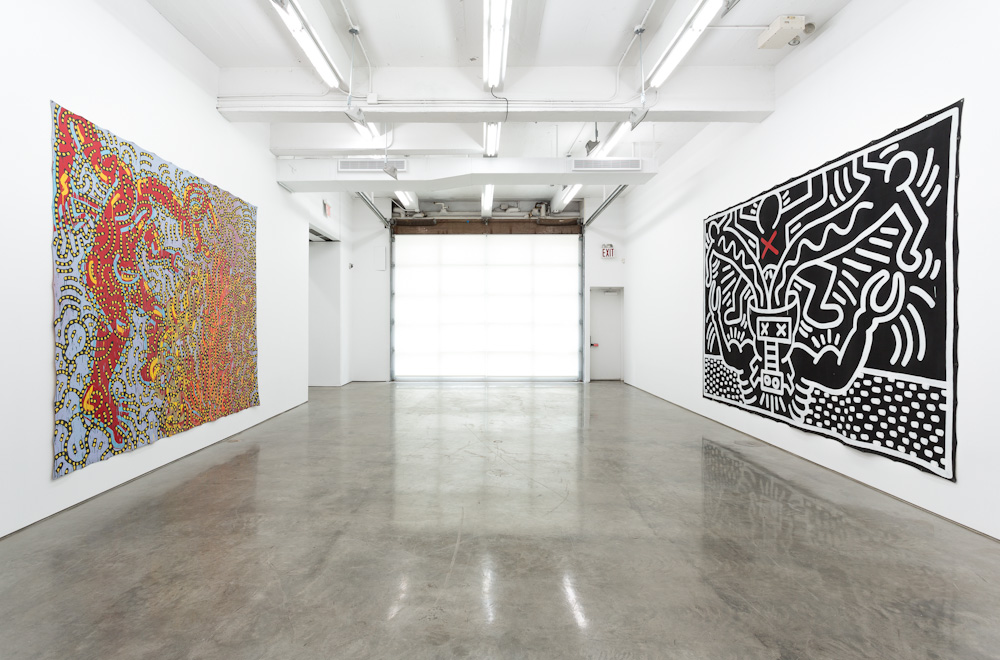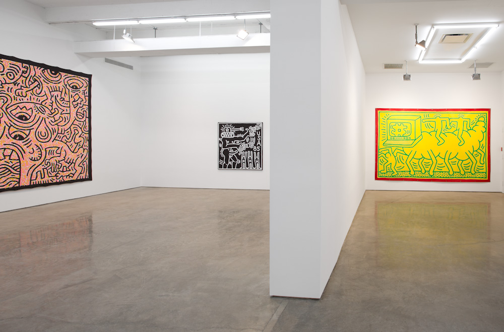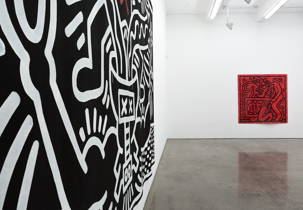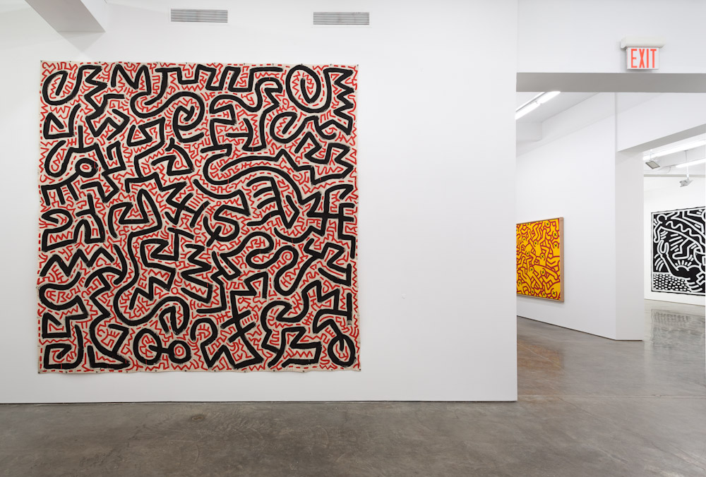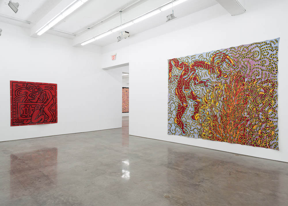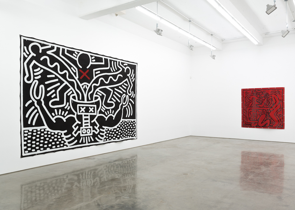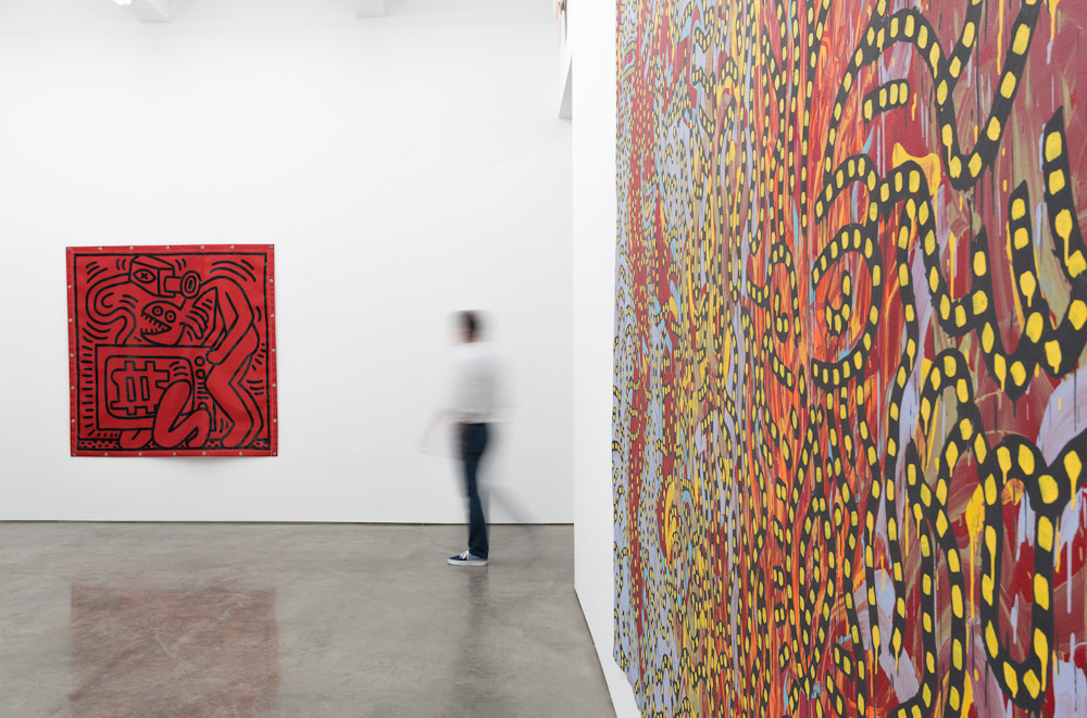 Gladstone Gallery is pleased to present an exhibition of paintings by Keith Haring. The show includes canvases and tarps painted in the 1980s, which feature the iconic imagery and motifs that Haring developed earlier in that decade. Having first gained recognition for his public work, much of which was done subversively in the New York City subway system, Haring continued throughout his career to develop a populist aesthetic. The works on view are characteristic of Haring’s artistic practice, featuring a bold, bright color palette, exuberant figures, and a thoughtful use of unconventional materials.