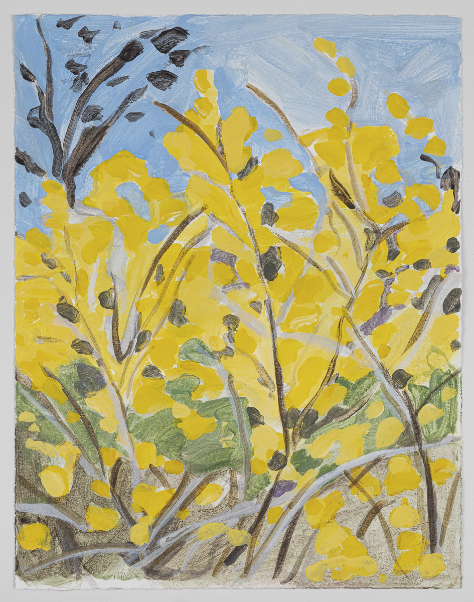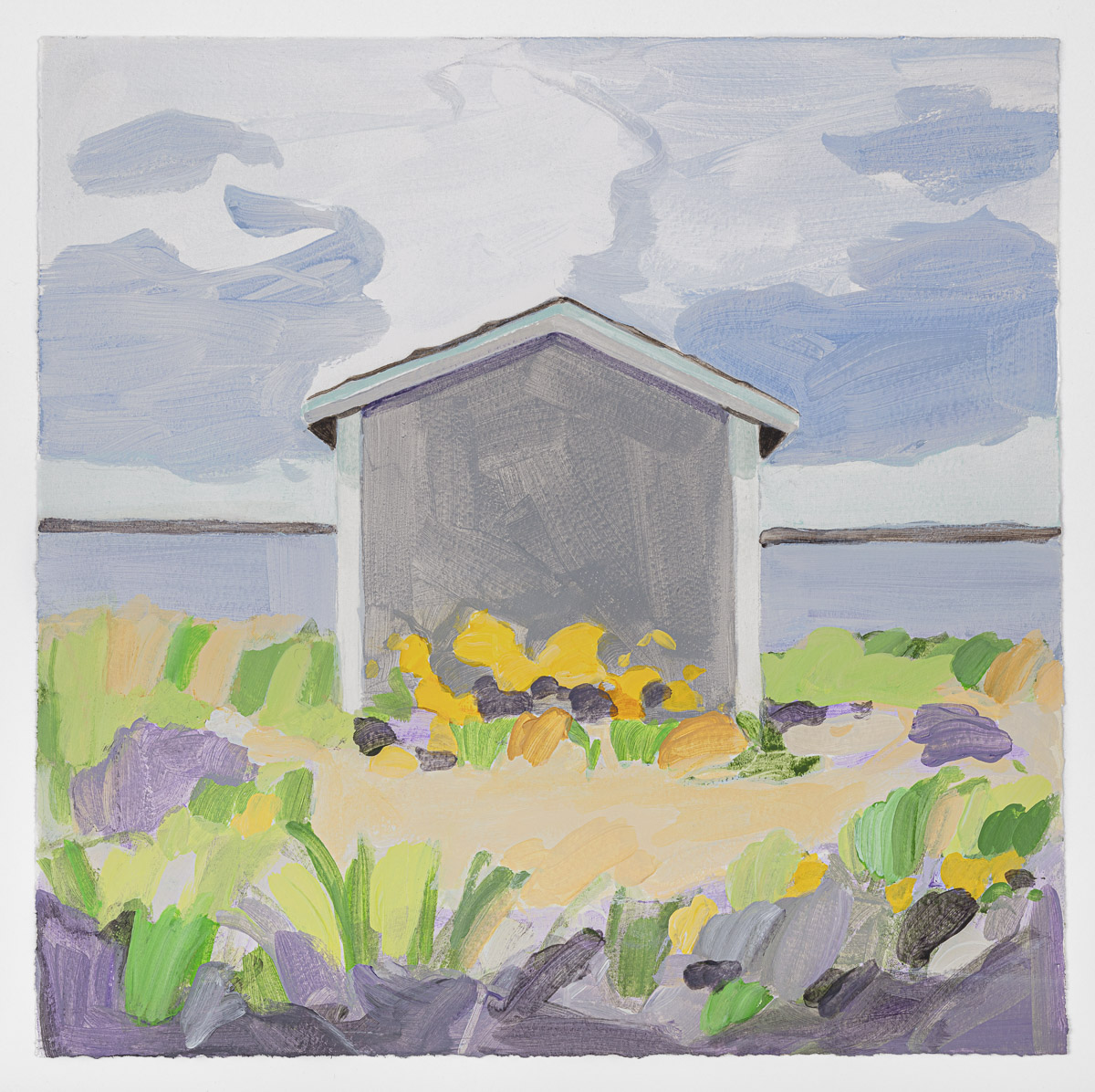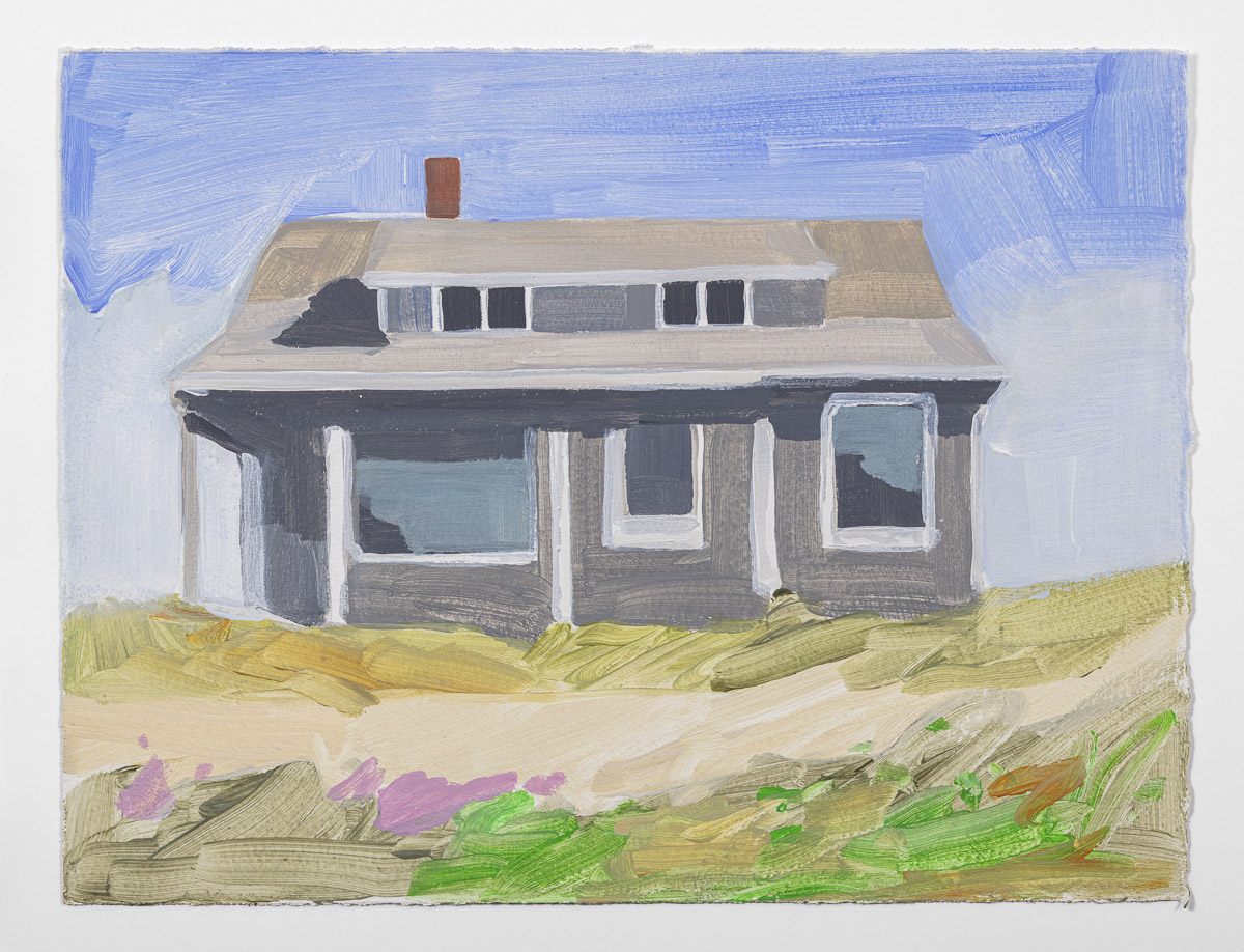 Gladstone Gallery is pleased to present an exhibition of recent work by artist Maureen Gallace. This exhibition will be the first devoted solely to her work on paper in which she uses both drawing and painting to evoke the vernacular milieu of the New England coast. Known for landscape and still life paintings, her meditative compositions belie a sophisticated rethinking of realism. With gestures equally immediate and thoughtful, Gallace reawakens the potential in the modernist idea of significant form which, as Clive Bell formulated, is a mode of simplified abstract representation where “we catch a sense of ultimate reality.” In her renderings of saltbox houses, beaches, and everyday flora, Gallace expands on this art historical premise to imbue her significant forms with personal significance—a recognizable sense of place shadowed with fugitive memory and the atmosphere of lived experience.
