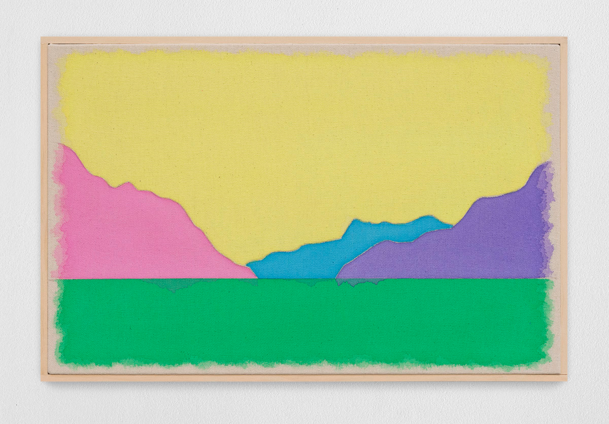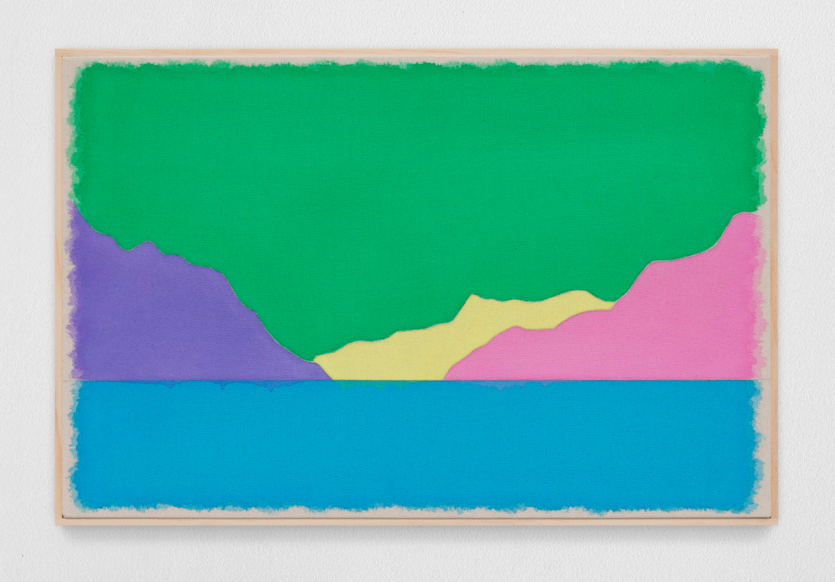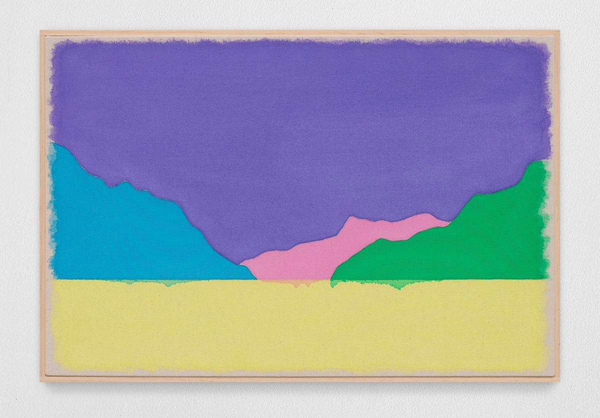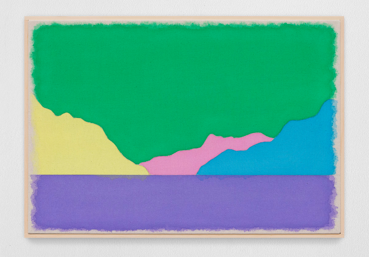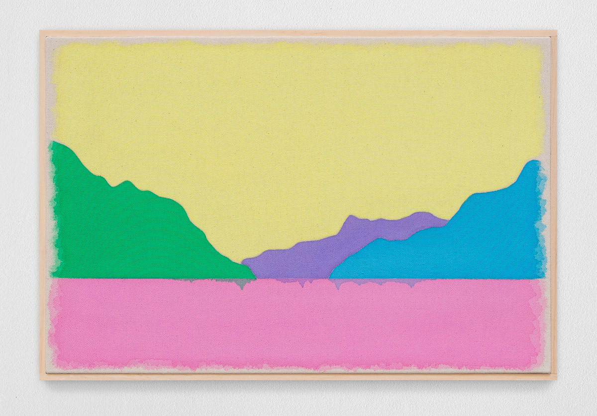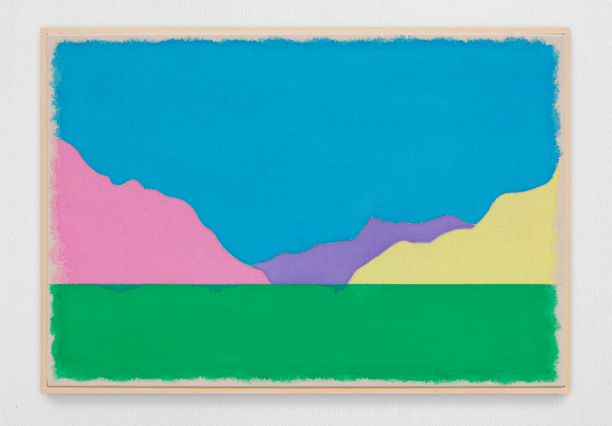 Gladstone is pleased to present in beauty bright, its first exhibition by Ugo Rondinone in Seoul. On view from August 29 to October 18, the show features thirteen new landscapes in various sizes. Each work is a watercolor on canvas in its own arrangement of the same five pastel shades—pink, blue, yellow, purple, and green. Otherwise, the compositions are identical, using only four lines to depict a mountain lake.