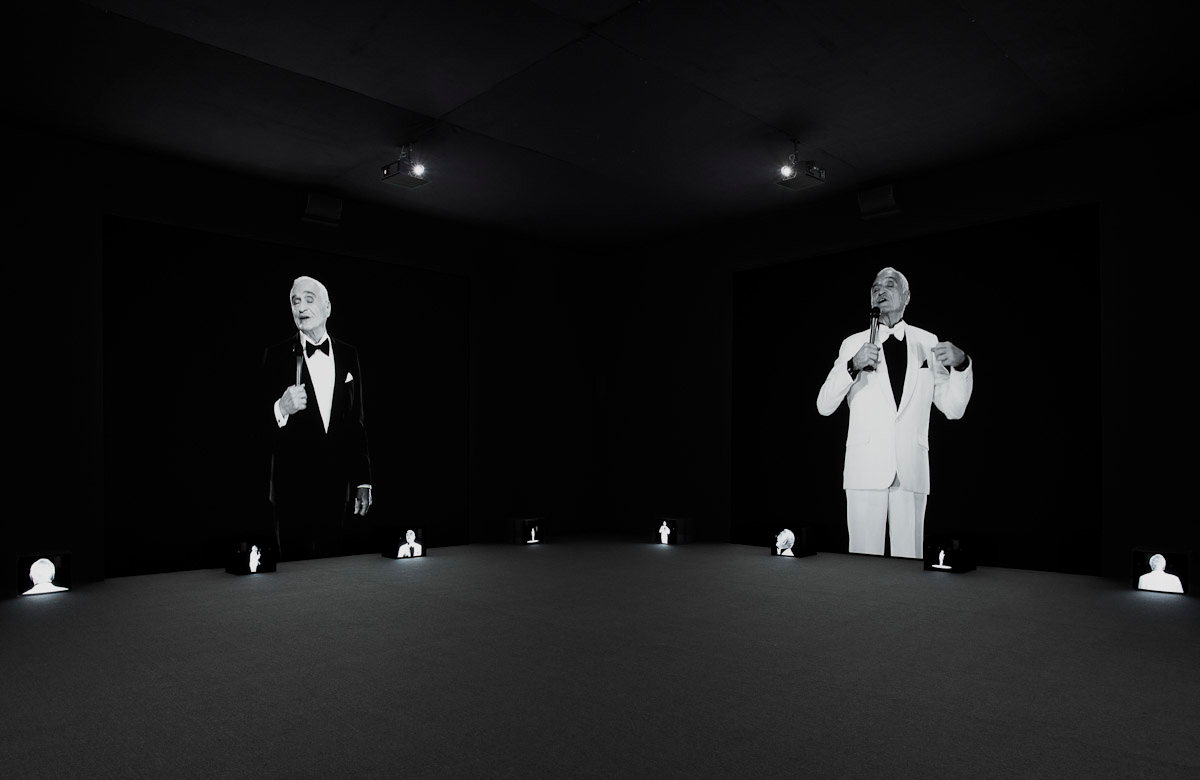 Gladstone Gallery is pleased to present Ugo Rondinone’s thanx 4 nothing, a mutli-channel video installation that pays tribute to the artist’s late husband, John Giorno. Rondinone reconstructs the gallery into a black box theater, creating an immersive environment through the use of black-and-white film, minimalist score, and the rhythmic intonations of Giorno’s own voice. This exhibition is a prismatic paean to the poet, raconteur, muse, cultural icon, and New York fixture.