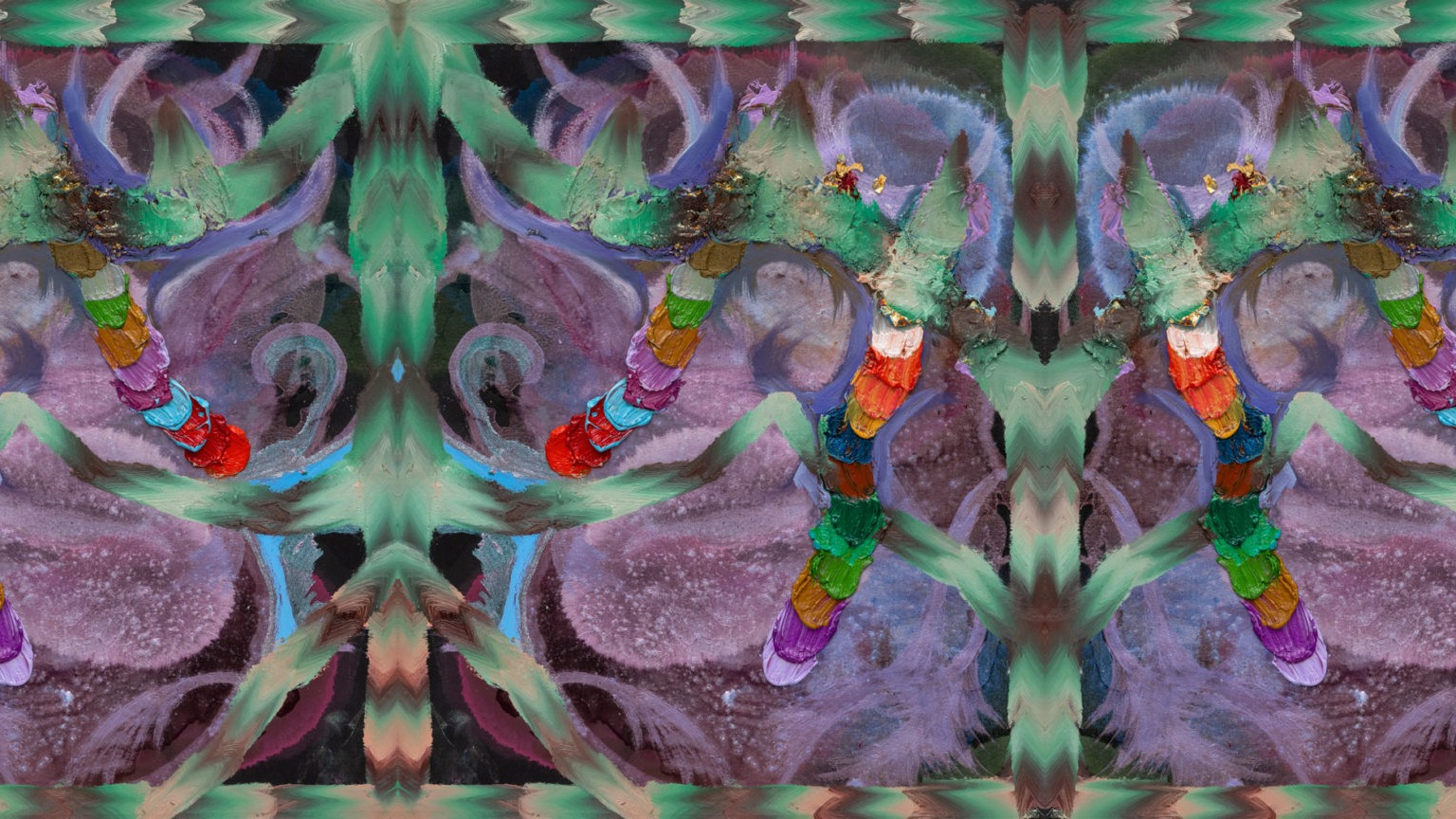 Her art is collective and singular, simultaneously many voices and one. It is an art of colour and form that both shapes and is shaped by the psyche. Psychedelic yet formal, mirrored yet unrestrained, beautiful and unsettling — it dances like a kite in the wind: diving, emerging, spinning.