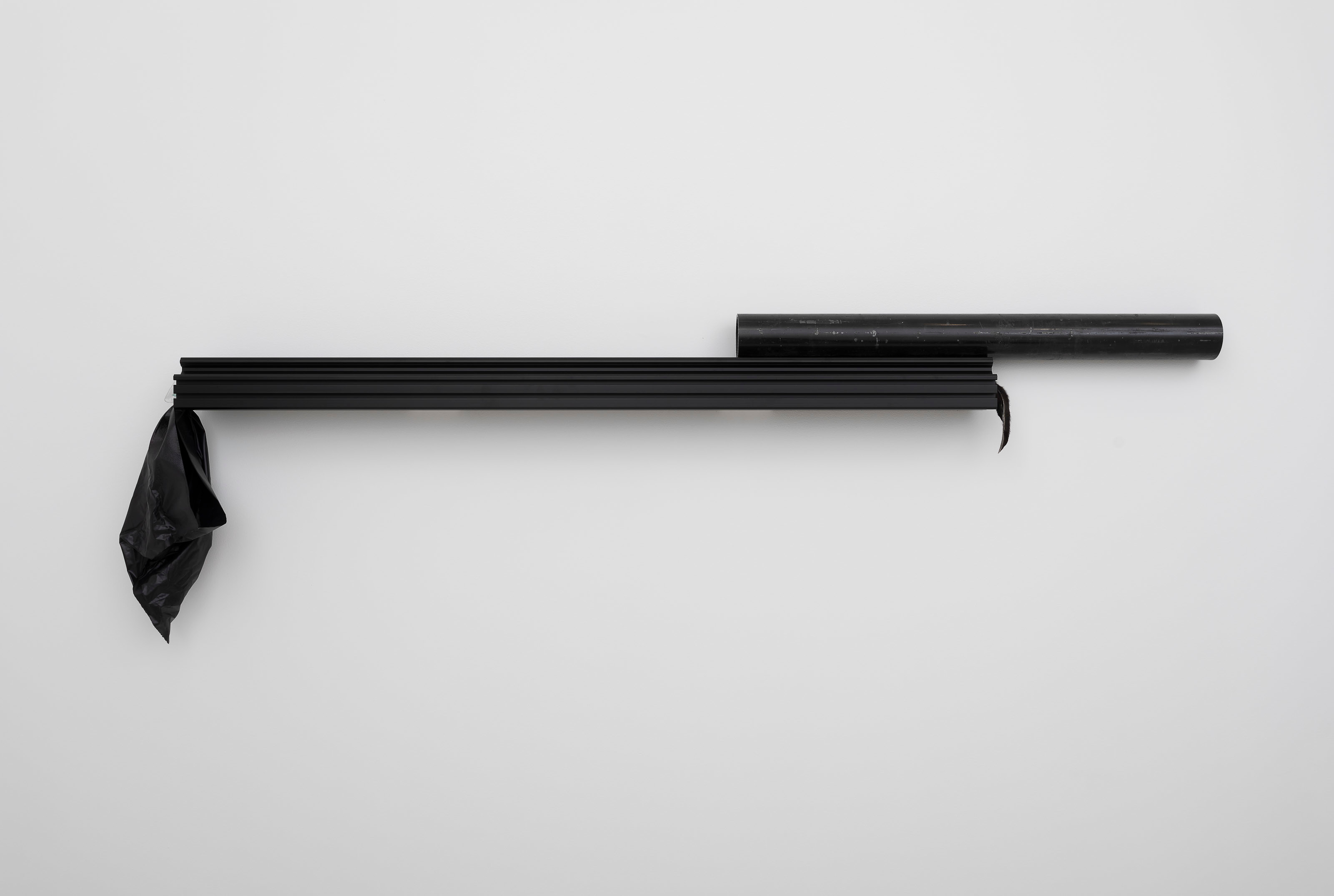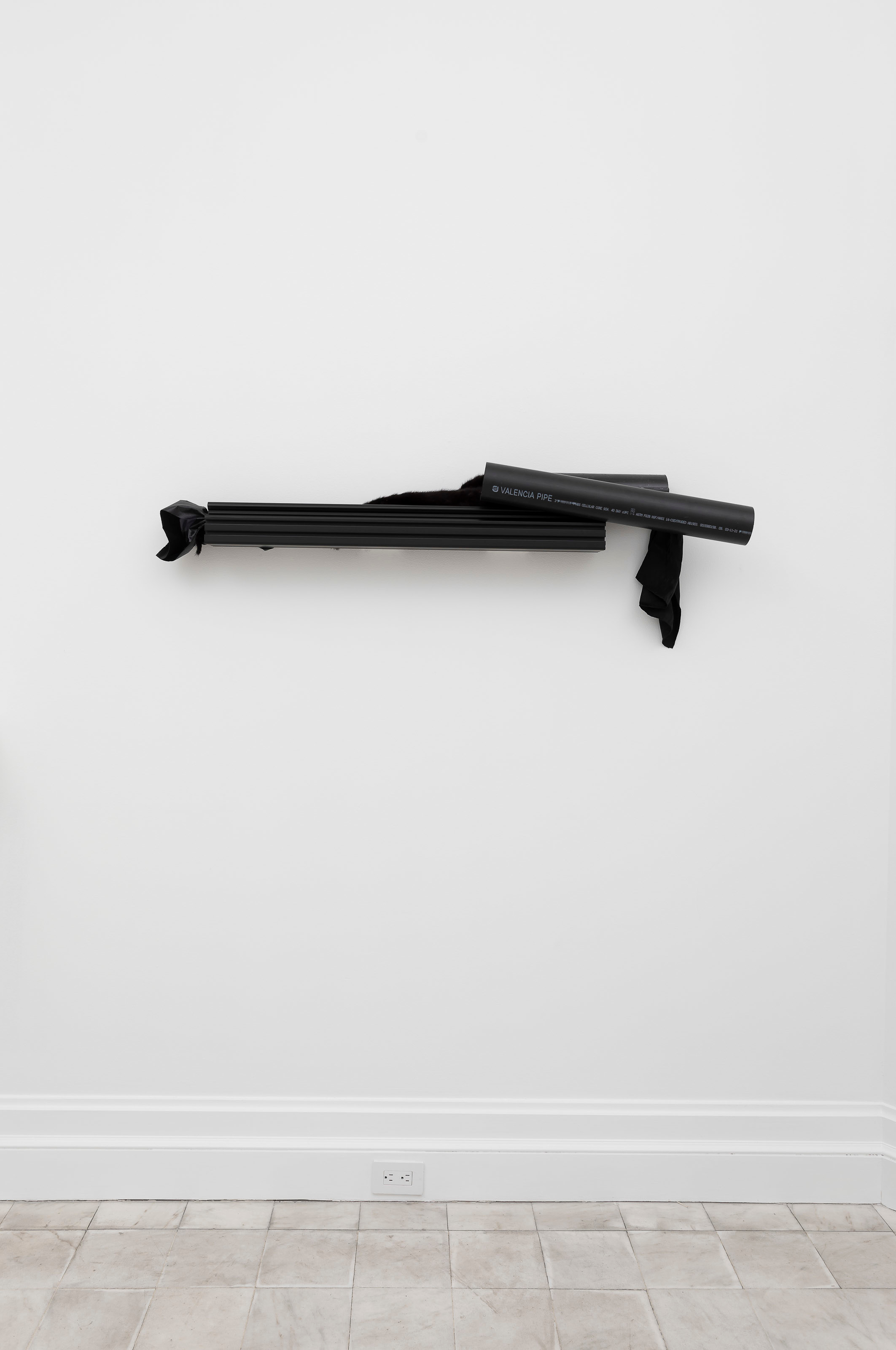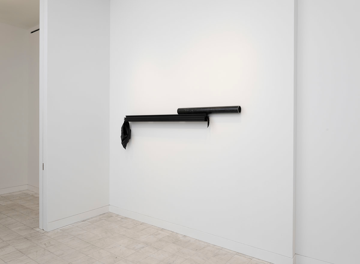 The host of unlikely marriages, transposed identities, and disparate doppelgangers that populate Arthur Jafa’s oeuvre come to full clarity in his new body of sculptures. Composed of industrial materials such as rubber tubing, aluminum beams, and steel pipes that are embellished with lengths of fur, chains, feathers and languidly draped bags, these objects reckon with the instrumentalization of the black body while shielding it with sartorial excess. Alluding to what Jafa calls “glamouring,” these sculptures simultaneously reference the burdensome machinations of double consciousness while also contending with the duplicity synonymous with glamour itself.