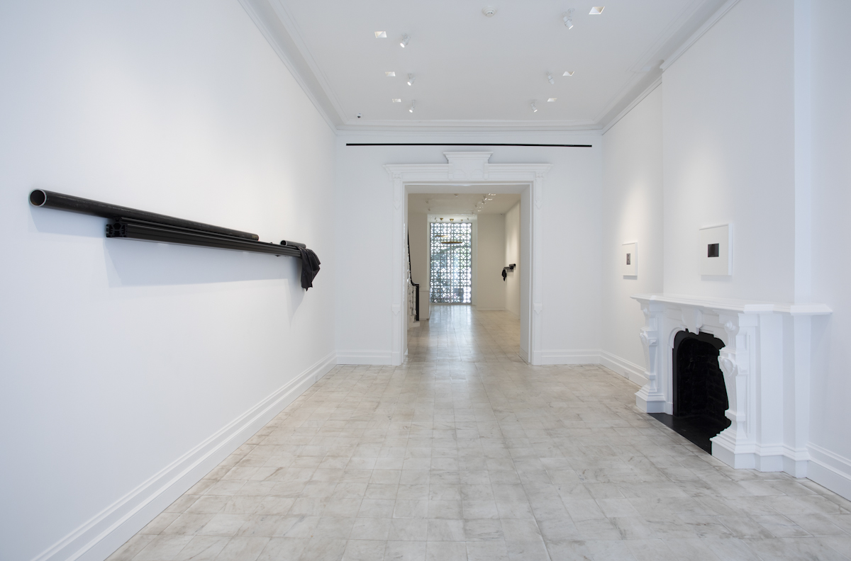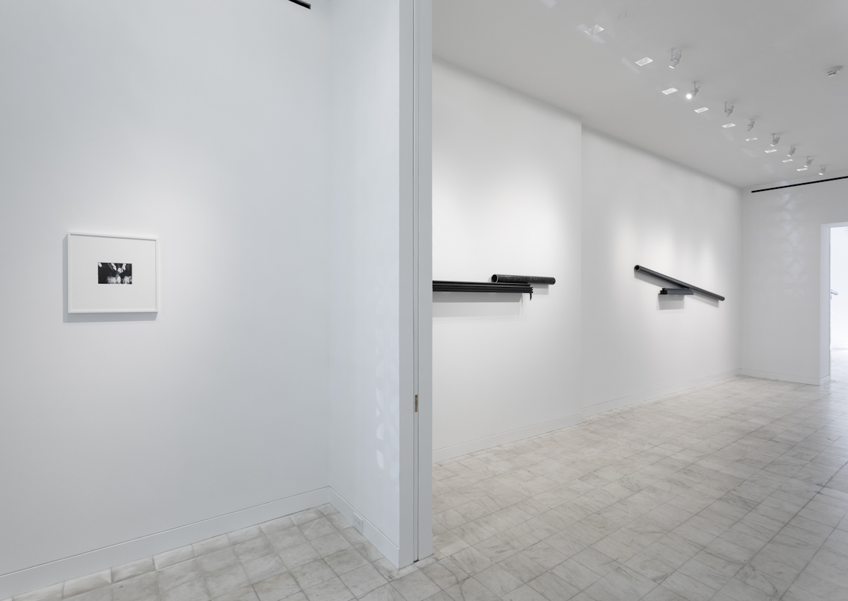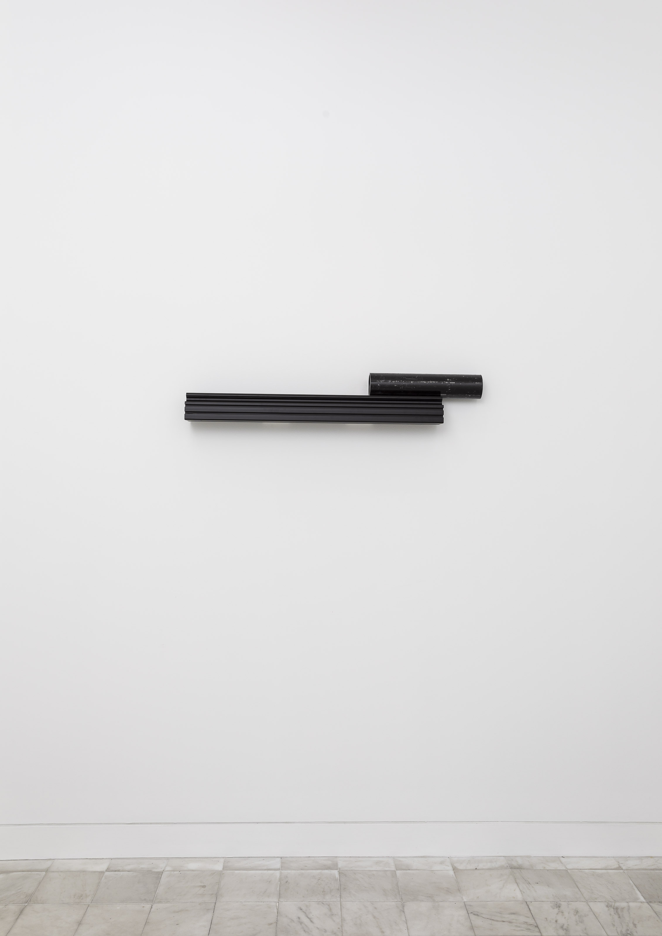 The host of unlikely marriages, transposed identities, and disparate doppelgangers that populate Arthur Jafa’s oeuvre come to full clarity in his new body of sculptures. Composed of industrial materials such as rubber tubing, aluminum beams, and steel pipes that are embellished with lengths of fur, chains, feathers and languidly draped bags, these objects reckon with the instrumentalization of the black body while shielding it with sartorial excess. Alluding to what Jafa calls “glamouring,” these sculptures simultaneously reference the burdensome machinations of double consciousness while also contending with the duplicity synonymous with glamour itself.