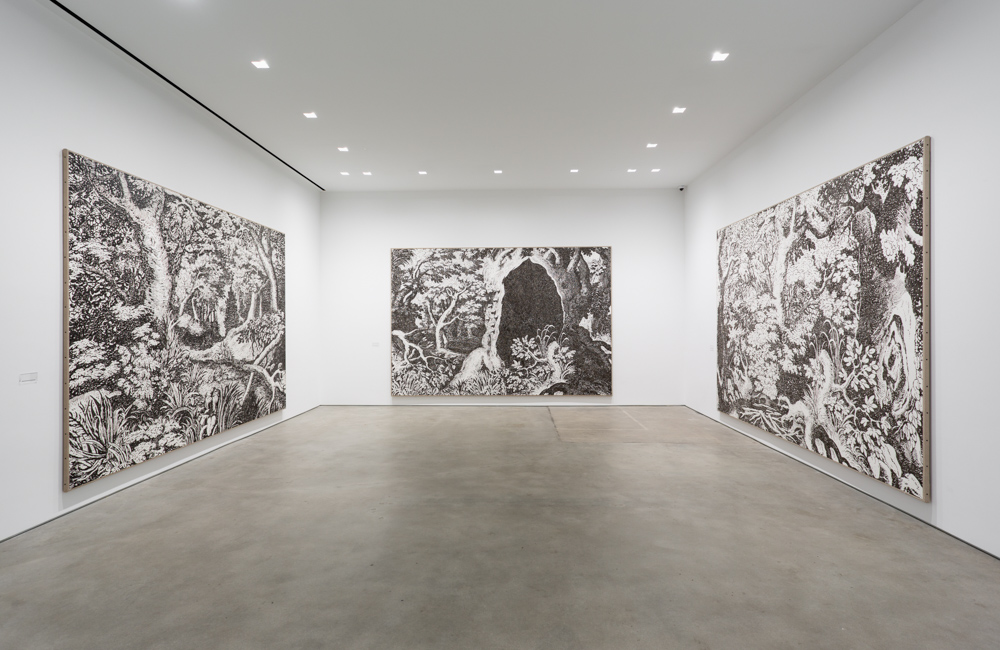 Gladstone is pleased to present an exhibition of three distinct yet interrelated bodies of work by Ugo Rondinone in both Chelsea locations. Developed throughout his practice, these large-scale landscape drawings, window, and sun sculptures speak directly to Rondinone’s continued exploration of German Romanticism and its key artistic figure, Caspar David Friedrich. Reanimating commonplace objects—such as tree branches or window frames—in his own Neo-Romantic signature, he creates a lyrical world of his own. This formal and generic diversity mines the fecund aesthetic and philosophical tensions central to his work: nature and humanity, exterior world and inner life, expansion and intimacy, organic and artificial. Rondinone stylizes these dichotomies into new physical and temporal sites of self-reflection and universal connection.