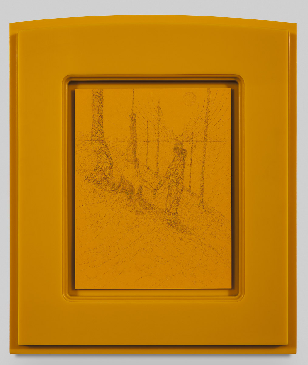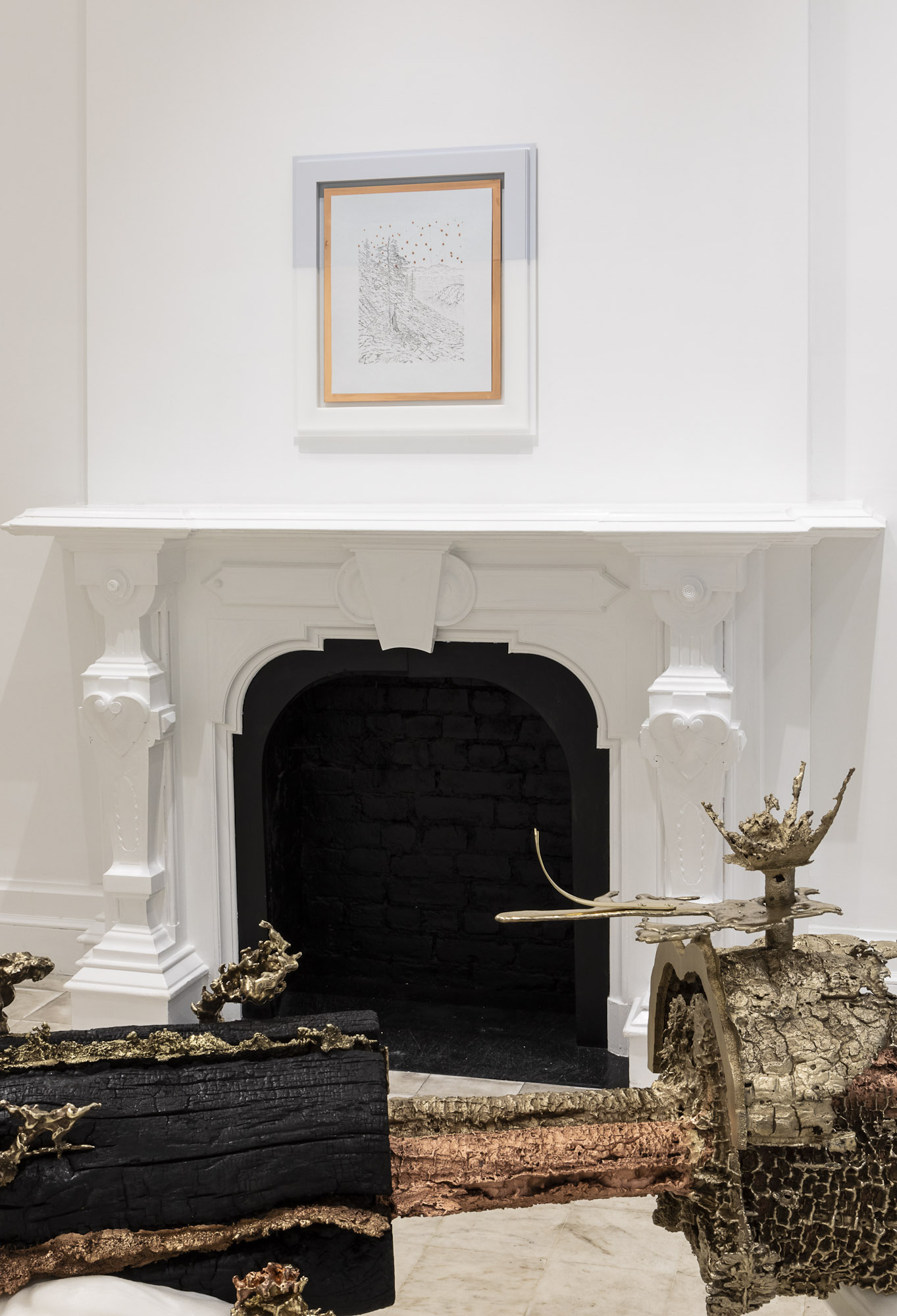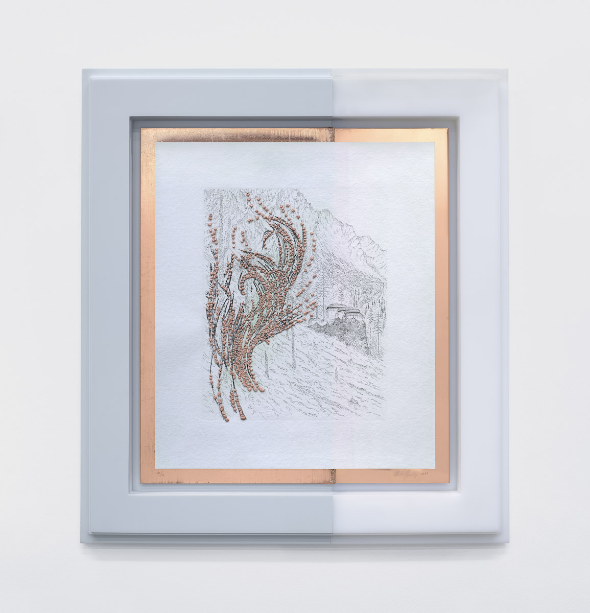 Gladstone Gallery is pleased to present Embrasure, an exhibition of new drawings, etchings, and sculpture by Matthew Barney. The works in Embrasure draw from the narratives, processes, and imagery introduced in Barney’s latest project Redoubt, while expanding on its allegorical and cosmological themes.