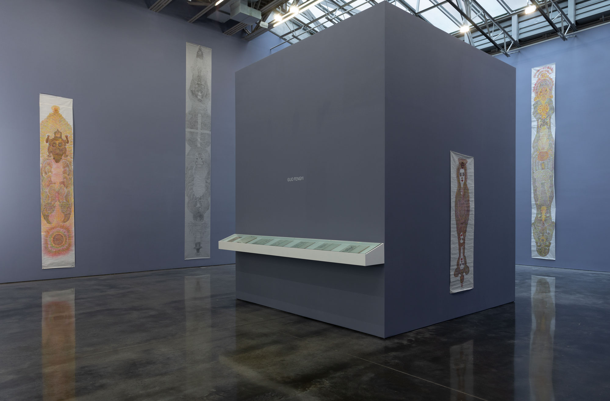 Gladstone Gallery is pleased to present an exhibition of historic works by Guo Fengyi, the artist’s first exhibition with the gallery in New York. The show focuses on a selection of Guo’s hyperdetailed and conceptually complex scrolls that range in scale from 12 feet to nearly 30 feet in height. Created by employing a meditation system associated with tai chi, these works present an in-depth survey of the artist’s practice which began during the latter portion of her life. In addition to the drawings, the gallery will exhibit one of Guo’s notebooks documenting her qigong regimen, allowing viewers a unique look at the process that afforded the artist’s unique and therapeutic approach to artmaking. Concurrent to this exhibition, The Drawing Center is hosting “Guo Fengyi: To See from a Distance,” the artist’s first solo institutional exhibition in New York.