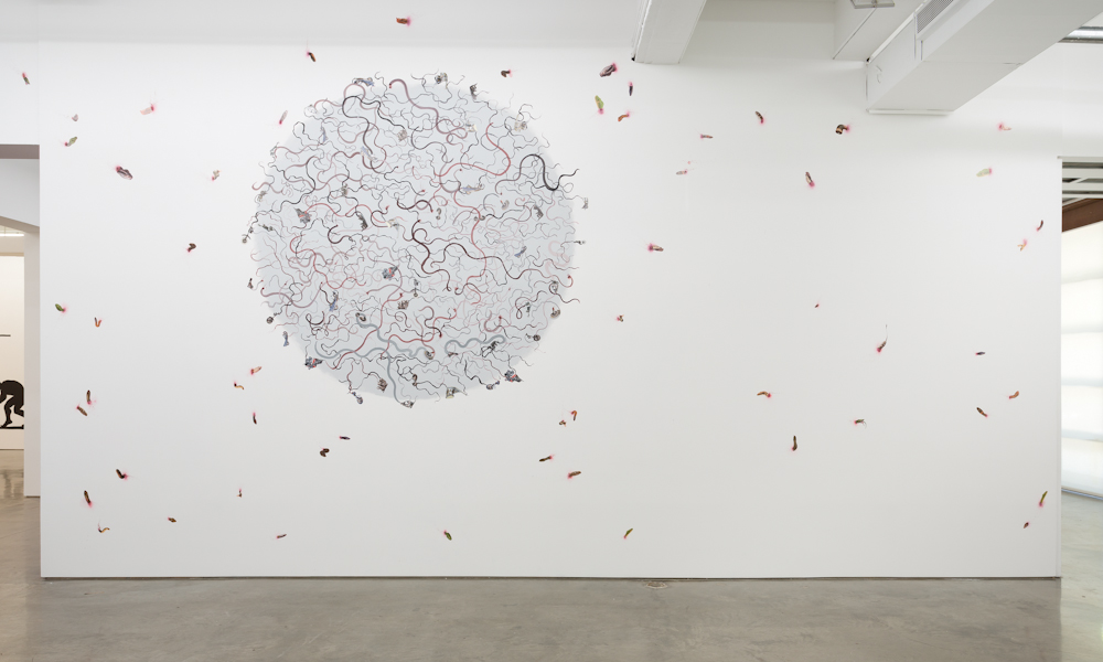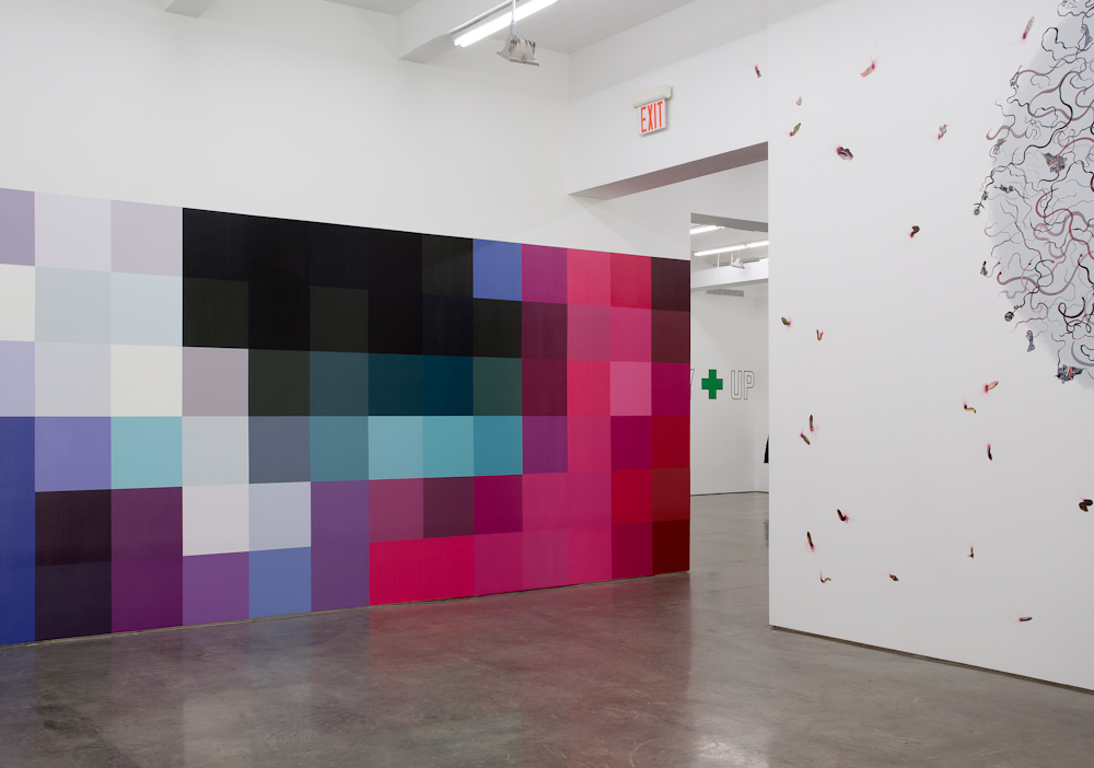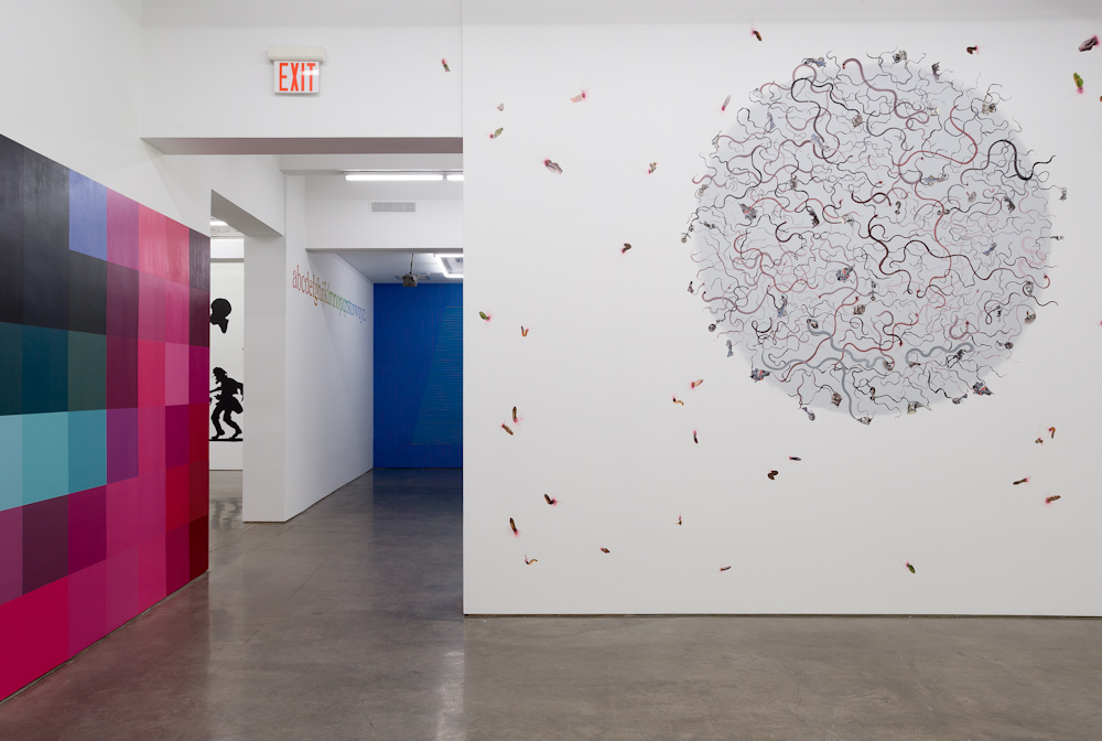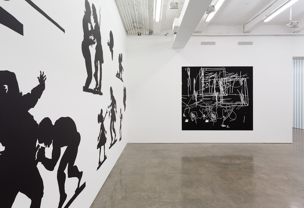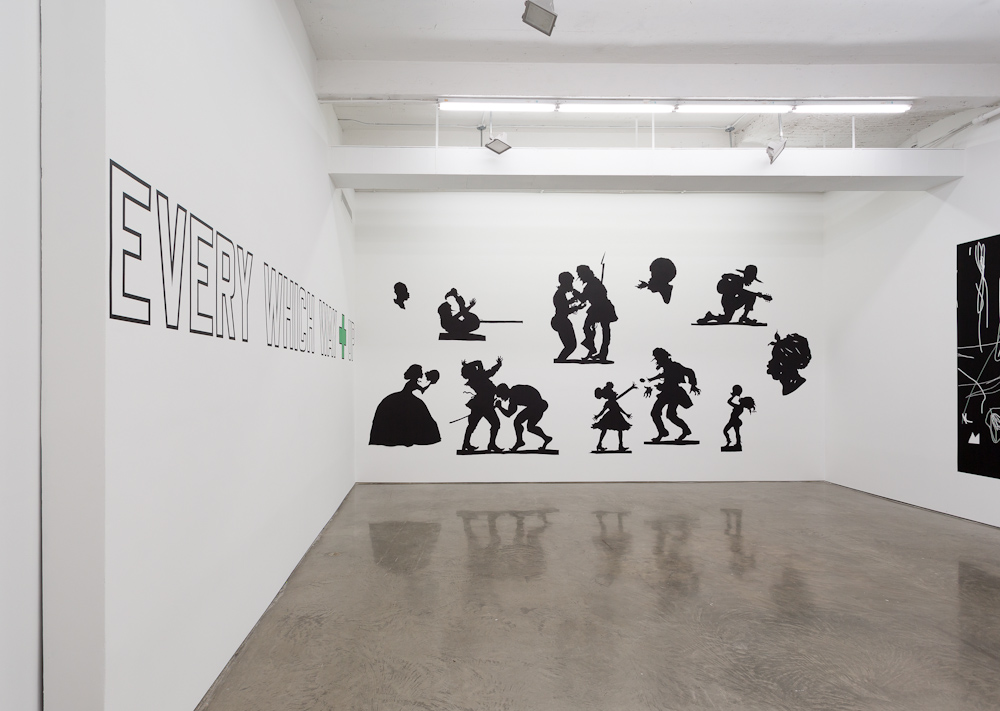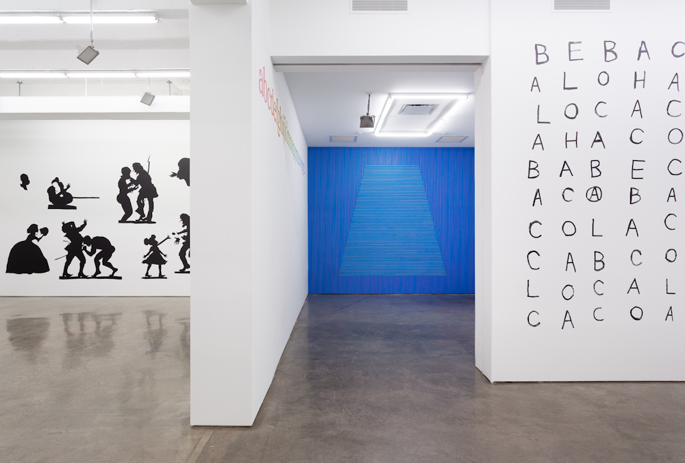Gladstone is pleased to announce Hello Walls, a group exhibition of artworks executed directly on the walls of both New York gallery locations. Works made in situ are part of a tradition rich in associations, and Hello Walls traces how that tradition has developed since the conceptual improvisations of the 1960s. The exhibition features works by Ricci Albenda, Mel Bochner, Angela Bulloch, Daniel Buren, Neil Campbell, Michael Craig-Martin, Jeff Elrod, Douglas Gordon, Arturo Herrera, Karl Holmqvist, Sol LeWitt, Wangechi Mutu, Raymond Pettibon, Ugo Rondinone, Kara Walker, and Lawrence Weiner.
