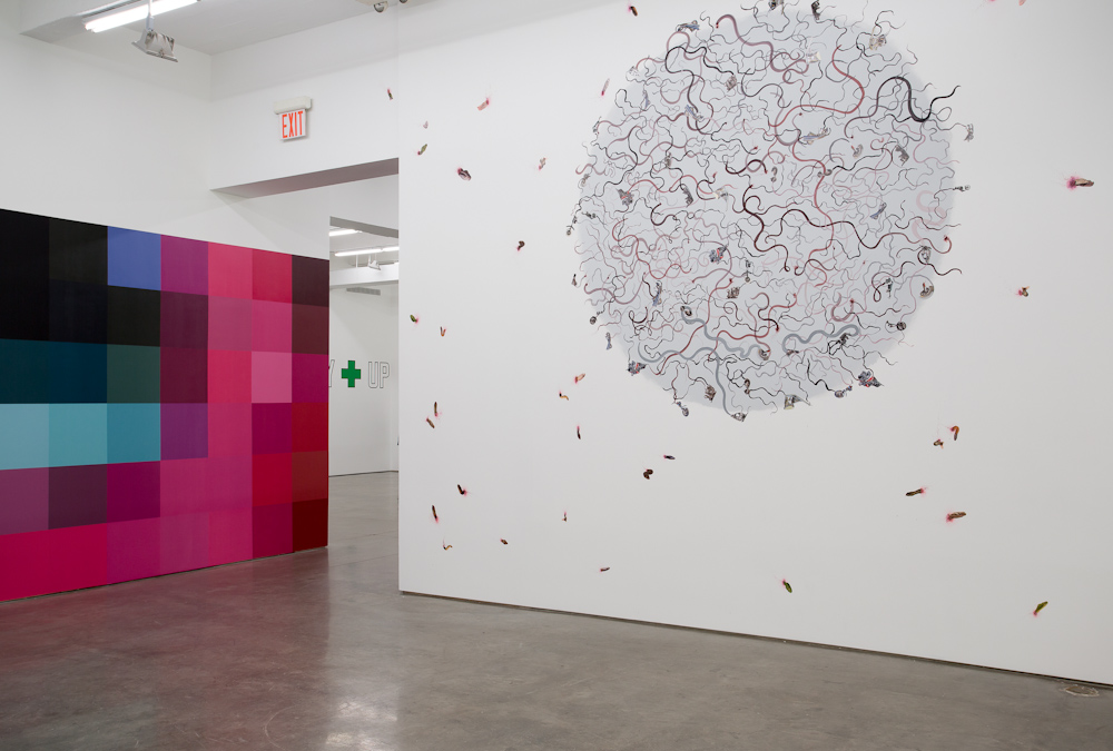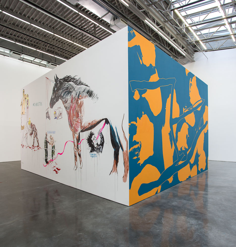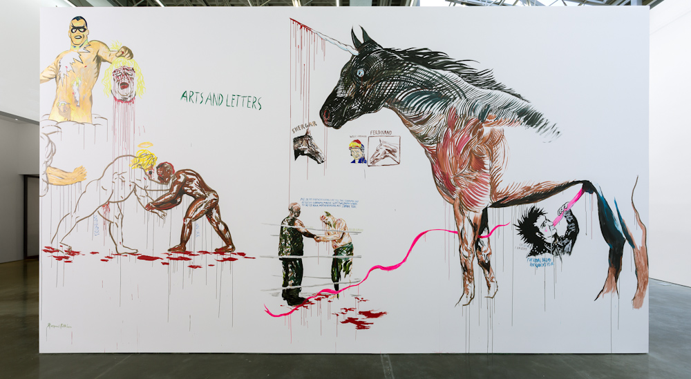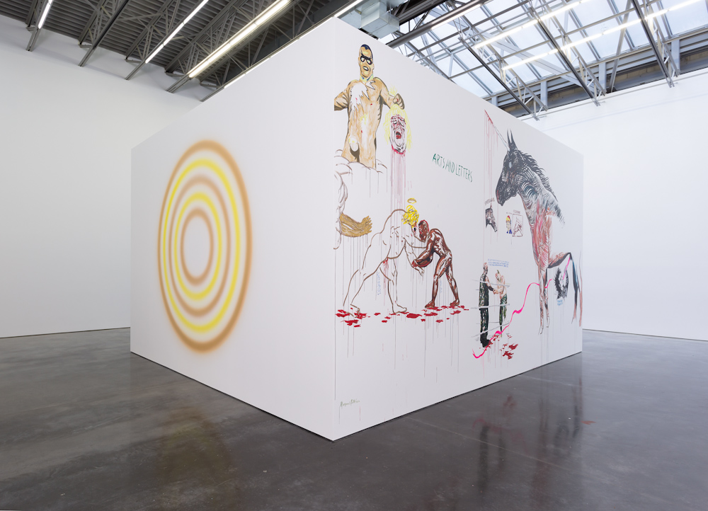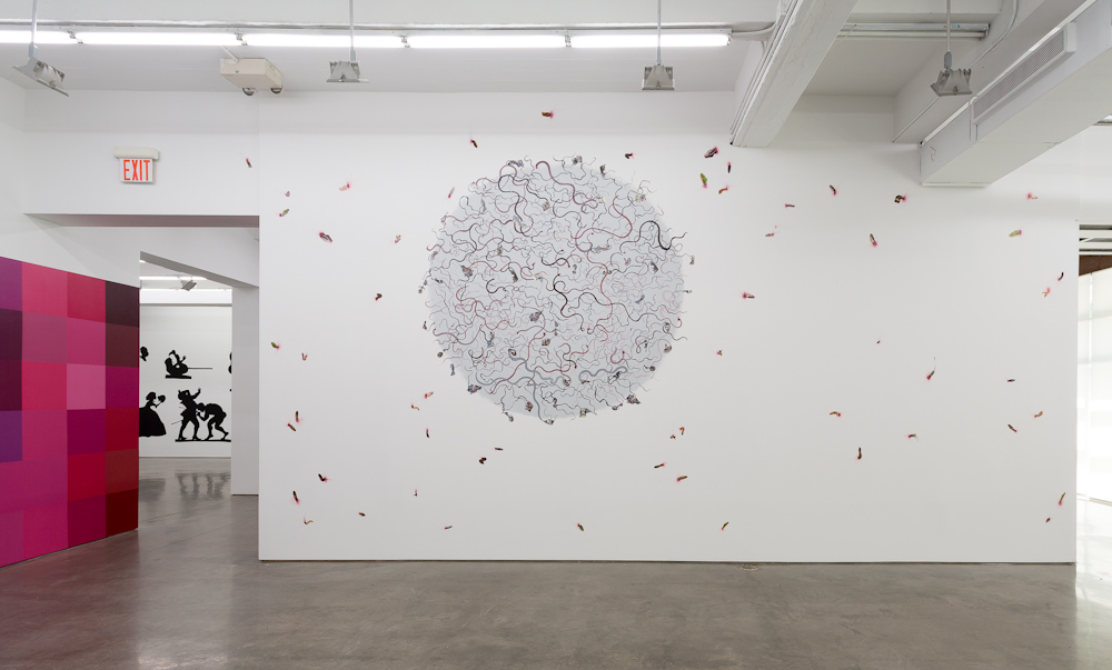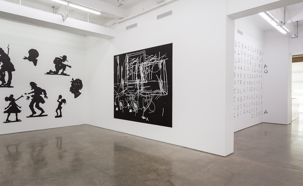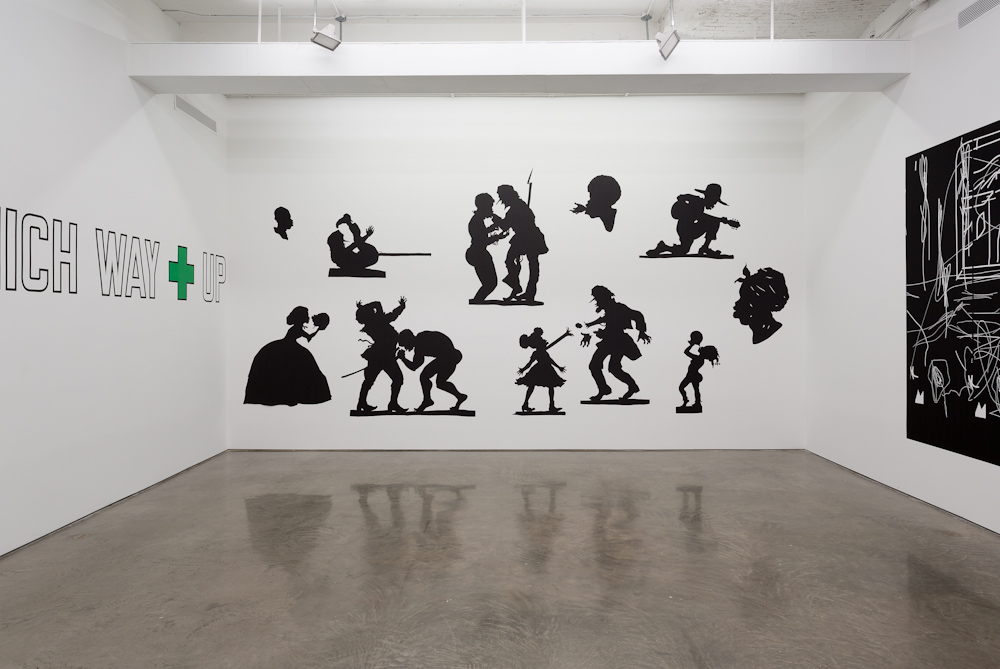 Gladstone is pleased to announce Hello Walls, a group exhibition of artworks executed directly on the walls of both New York gallery locations. Works made in situ are part of a tradition rich in associations, and Hello Walls traces how that tradition has developed since the conceptual improvisations of the 1960s. The exhibition features works by Ricci Albenda, Mel Bochner, Angela Bulloch, Daniel Buren, Neil Campbell, Michael Craig-Martin, Jeff Elrod, Douglas Gordon, Arturo Herrera, Karl Holmqvist, Sol LeWitt, Wangechi Mutu, Raymond Pettibon, Ugo Rondinone, Kara Walker, and Lawrence Weiner.