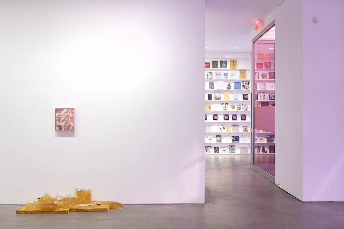 An image that is not just an image, but closer to a thing that it is also not—flesh—is visible some-where in every room. Like the red eye of a camera, it follows your movements and tracks your status in relation to an open wound. It shares its title, Boyfriend.JPEG, with all the other works in the exhibition because they too describe something that they are not: not a boyfriend but a jpeg; not a presence but its format, that is to say, its absence. Are you following? This is obviously about love.