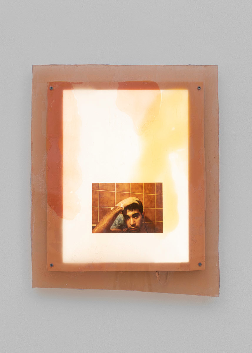 "The hustler is the artist as a young man, gazing into the camera, a smug, somewhat lazy look in his eyes. He is about to dye his hair – it won’t work. We are witnessing a moment of transition, the blurring of a line between a life and its outcome. The hustler is his own canvas, the painter as well as his pigments. To be an artist is to turn the collateral of survival into a living. The artist is a hustler and the hustler works alone. He stains and cleans up after himself as best he can. He wears a plastic glove and he looks at us, lazily, provocatively. His picture appears several times in the exhibition. Shahryar Nashat often works with this type of repetition, as if to see what matter accumulates, whose face emerges – this time his own." — Kristian Vistrup Madsen