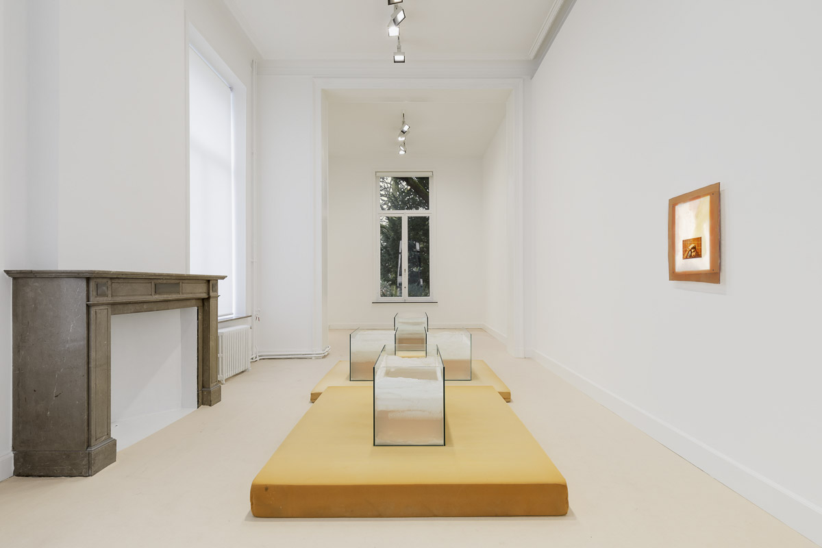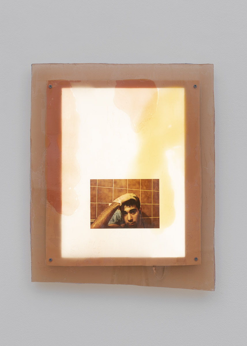 "The hustler is the artist as a young man, gazing into the camera, a smug, somewhat lazy look in his eyes. He is about to dye his hair – it won’t work. We are witnessing a moment of transition, the blurring of a line between a life and its outcome. The hustler is his own canvas, the painter as well as his pigments. To be an artist is to turn the collateral of survival into a living. The artist is a hustler and the hustler works alone. He stains and cleans up after himself as best he can. He wears a plastic glove and he looks at us, lazily, provocatively. His picture appears several times in the exhibition. Shahryar Nashat often works with this type of repetition, as if to see what matter accumulates, whose face emerges – this time his own." — Kristian Vistrup Madsen