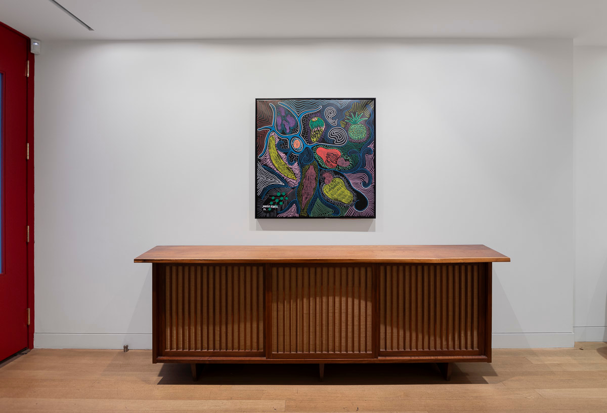 Gladstone Gallery presents the first exhibition in the United States dedicated to the work of activist, artist, and curator Jaider Esbell (b. 1979, Normandia—d. 2021, São Sebastião, Brazil). Spanning works from his final years between 2018 and 2021, the exhibition brings together paintings on canvas and drawings. Opening January 29 at Gladstone’s 64th Street location in New York, the exhibition is on view through March 1.