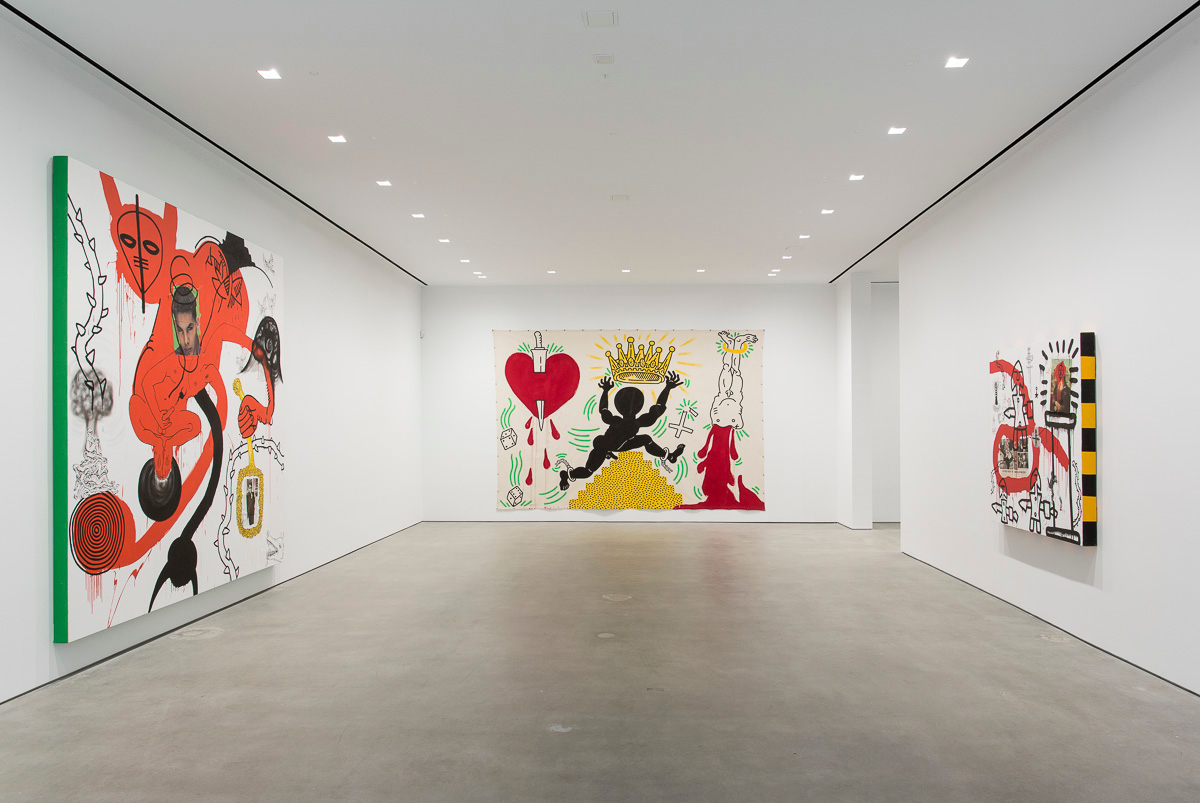 Gladstone is pleased to present an exhibition of paintings and works on paper by Keith Haring, all created between 1987 and 1989. These exquisite and surprising compositions, some of which are being exhibited for the first time, capture Haring’s invented version of reality that defined his artistic career. Astutely employing popular culture, sexual imagery, and religious iconography, the collages and large-scale paintings on view offer a deeply personal and critically important narrative, while simultaneously providing rare examples of works created during the last years of Haring’s life.