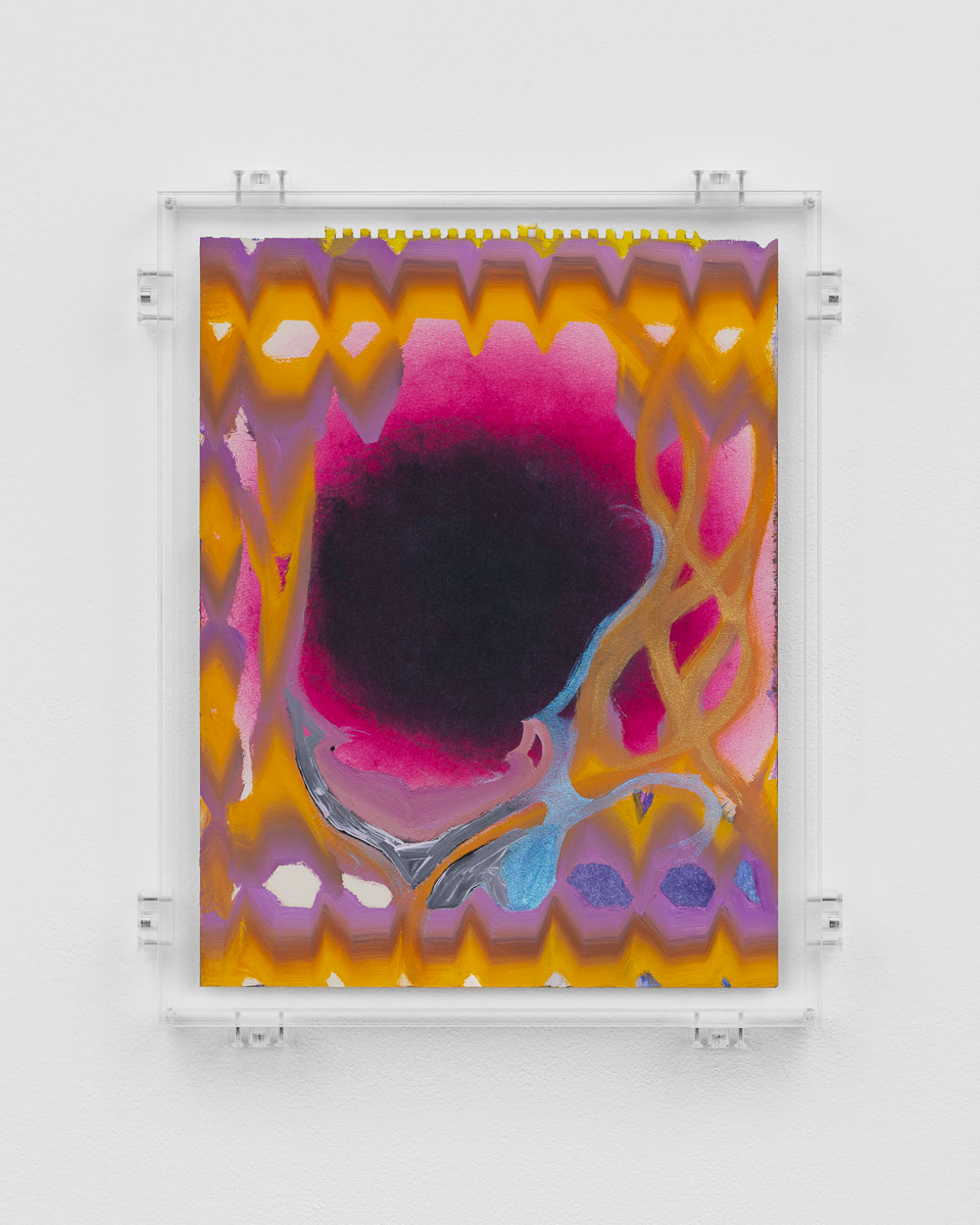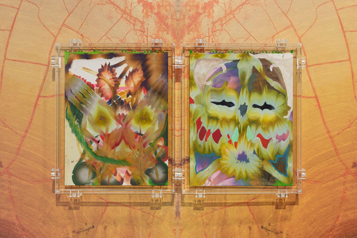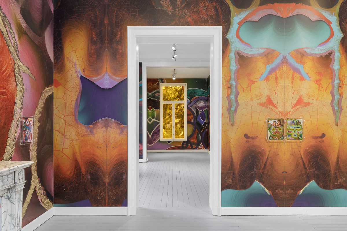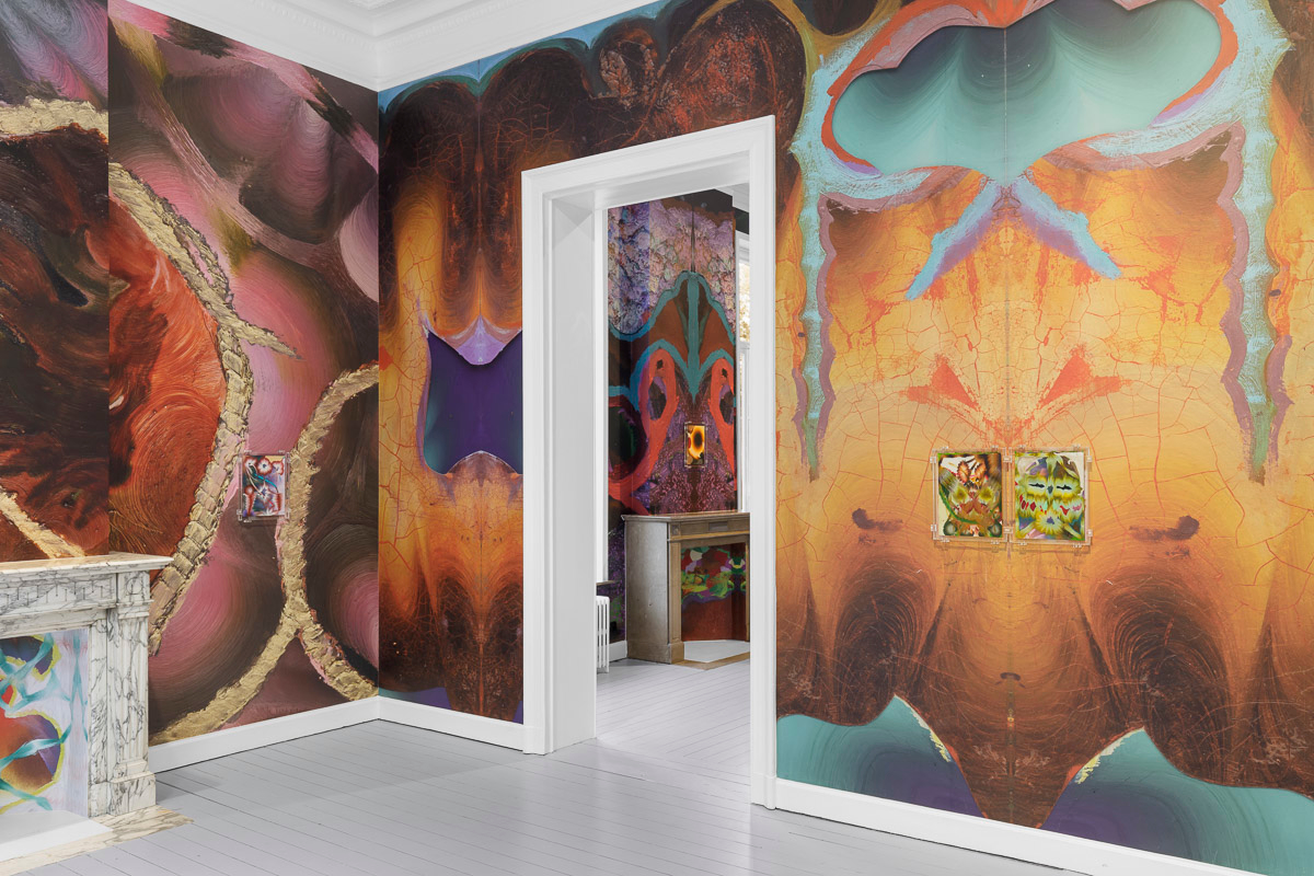 Kerstin Brätsch presents MƎTA, an exhibition of new paintings and wallpapers for her inaugural exhibition at Gladstone in Brussels. Expanding upon her Psychics and Para Psychics project from 2022, Brätsch’s abstract compositions employ her painterly practice to probe the body’s psychological, psychical, and social expressions. Appearing to be in a constant state of flux, the works possess their own internal metabolism, transcending a material existence to delve into infinite possibilities of interpretation.