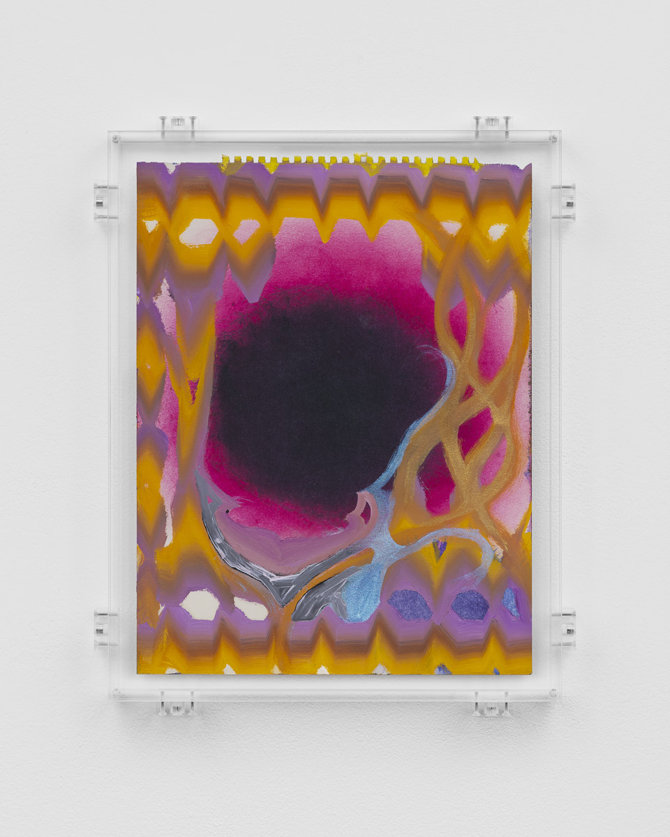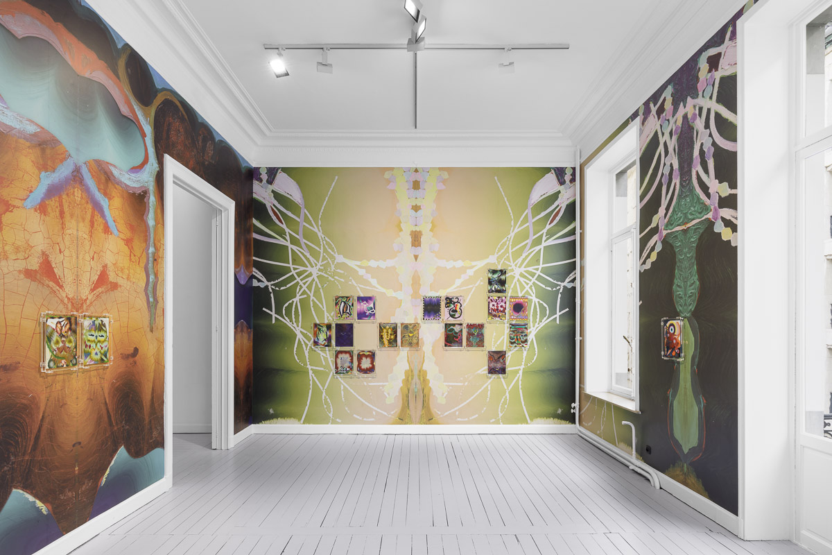 Kerstin Brätsch presents MƎTA, an exhibition of new paintings and wallpapers for her inaugural exhibition at Gladstone in Brussels. Expanding upon her Psychics and Para Psychics project from 2022, Brätsch’s abstract compositions employ her painterly practice to probe the body’s psychological, psychical, and social expressions. Appearing to be in a constant state of flux, the works possess their own internal metabolism, transcending a material existence to delve into infinite possibilities of interpretation.