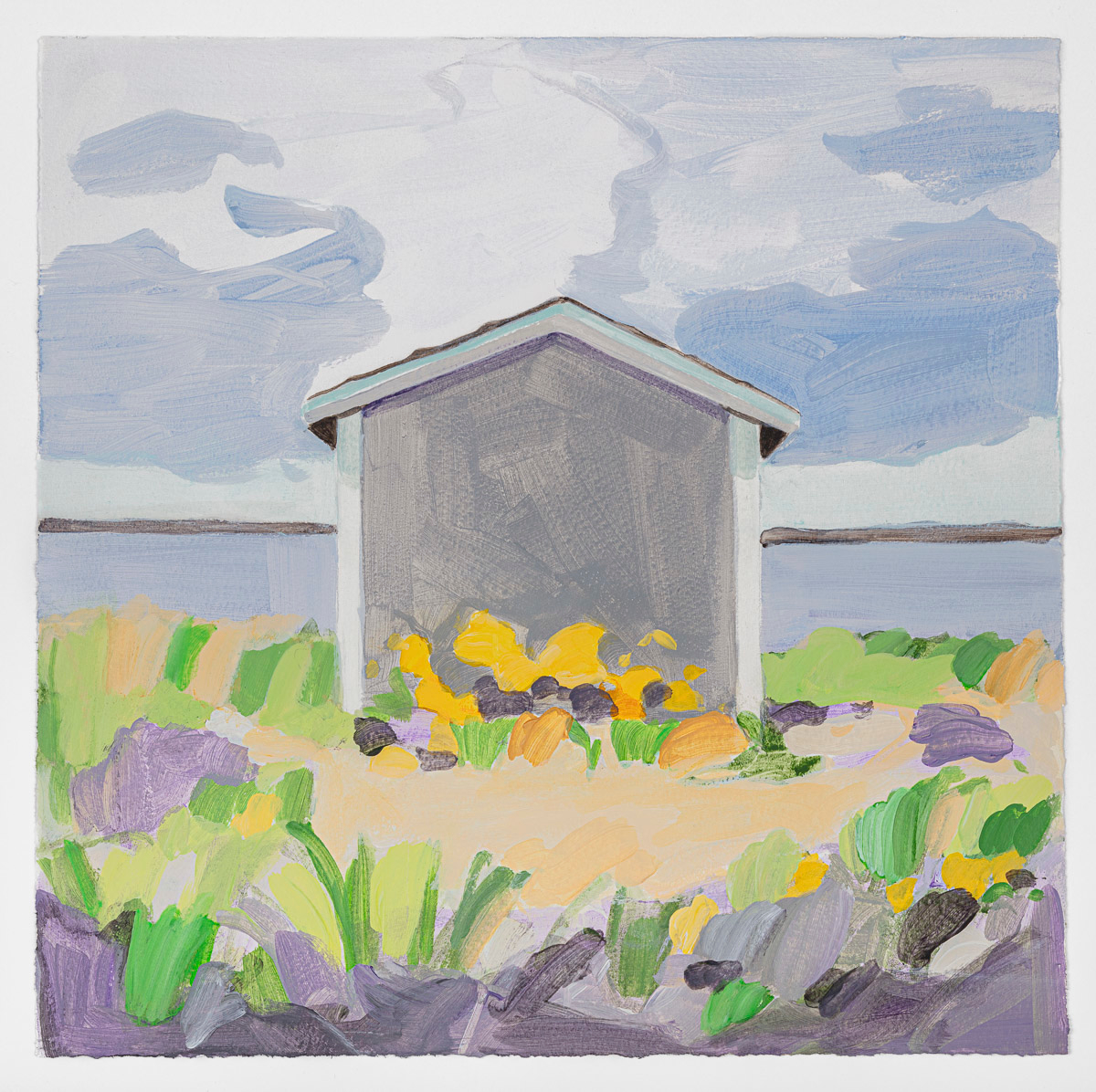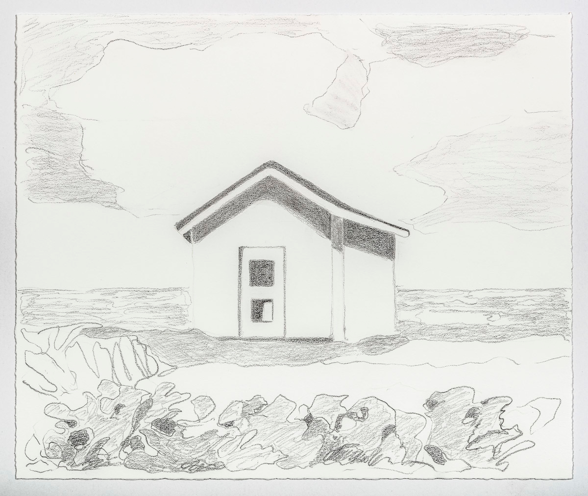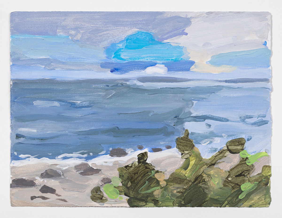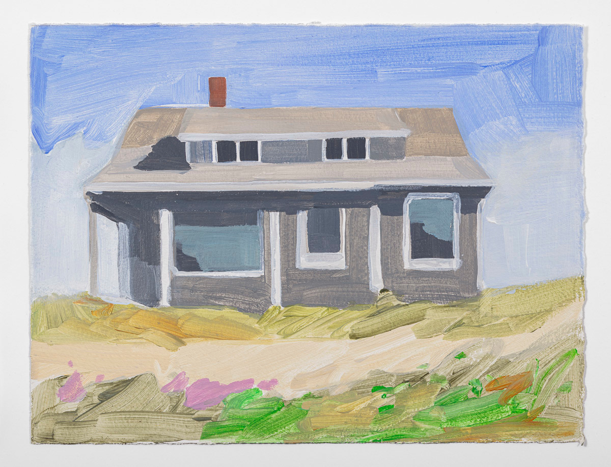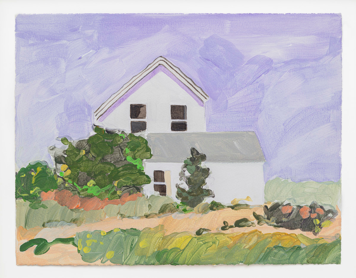 Gladstone Gallery is pleased to present an exhibition of recent work by artist Maureen Gallace. This exhibition will be the first devoted solely to her work on paper in which she uses both drawing and painting to evoke the vernacular milieu of the New England coast. Known for landscape and still life paintings, her meditative compositions belie a sophisticated rethinking of realism. With gestures equally immediate and thoughtful, Gallace reawakens the potential in the modernist idea of significant form which, as Clive Bell formulated, is a mode of simplified abstract representation where “we catch a sense of ultimate reality.” In her renderings of saltbox houses, beaches, and everyday flora, Gallace expands on this art historical premise to imbue her significant forms with personal significance—a recognizable sense of place shadowed with fugitive memory and the atmosphere of lived experience.