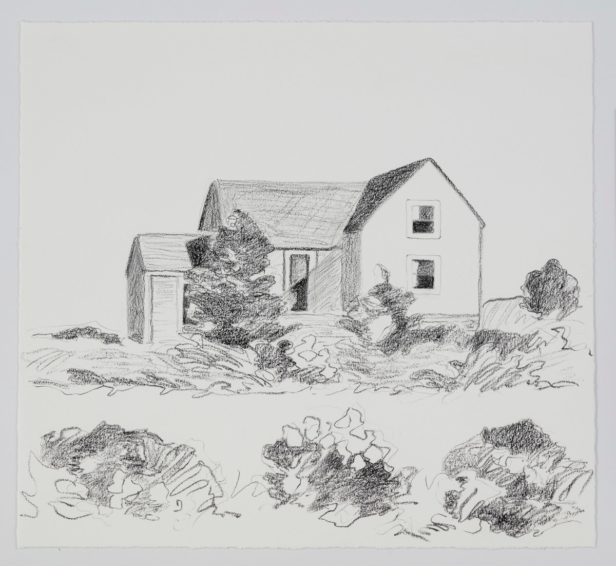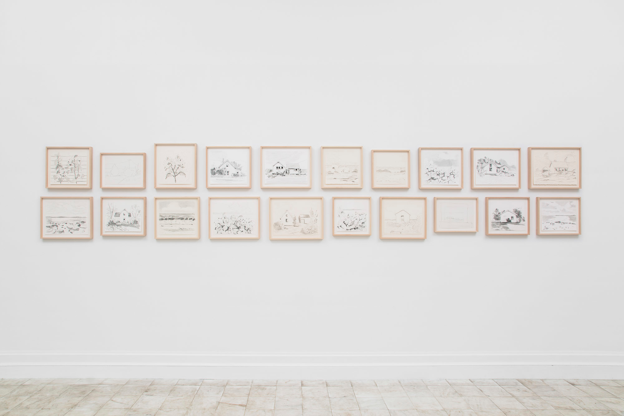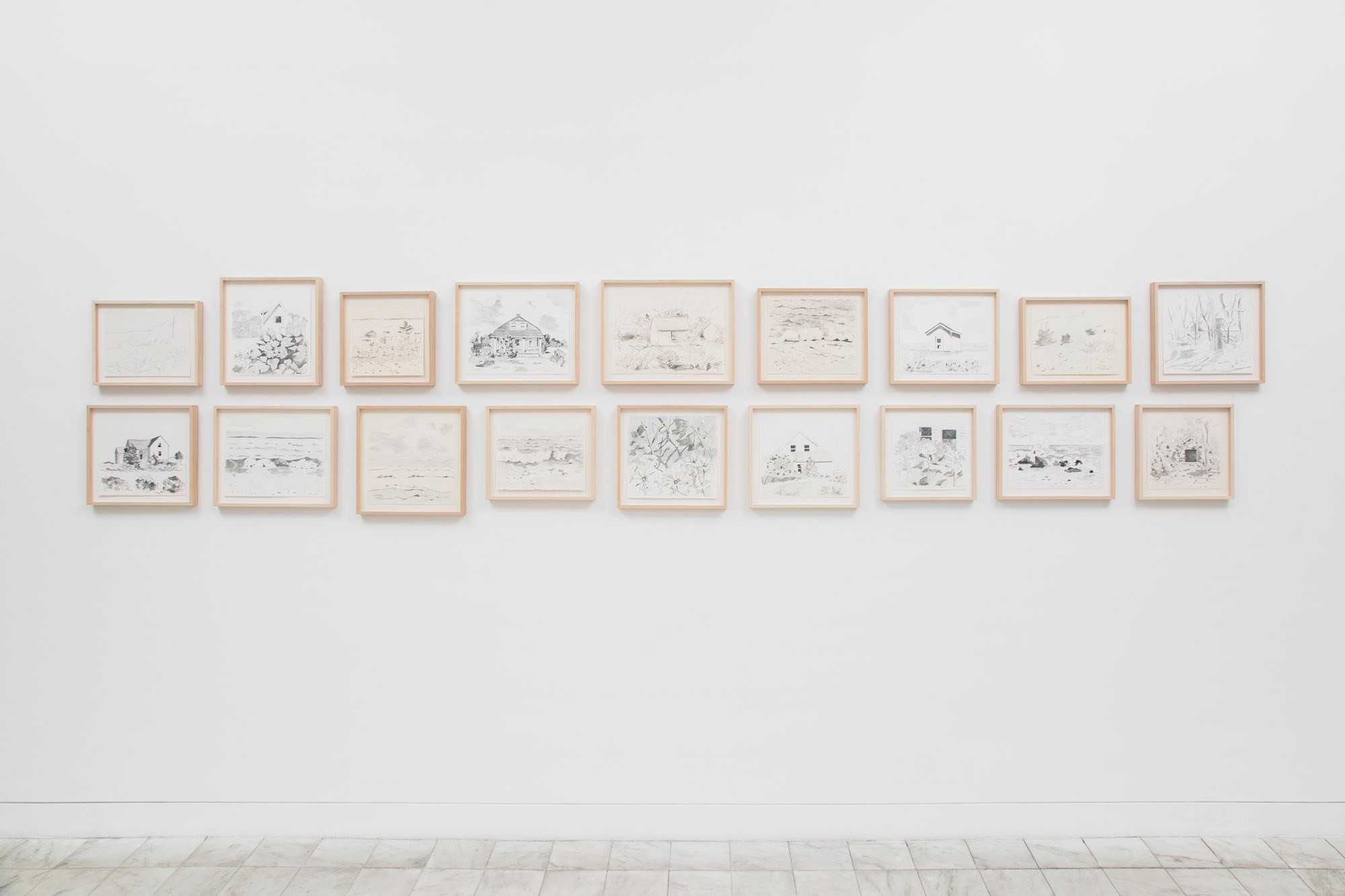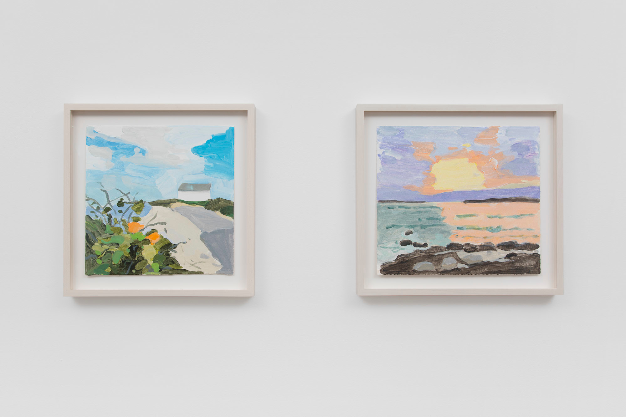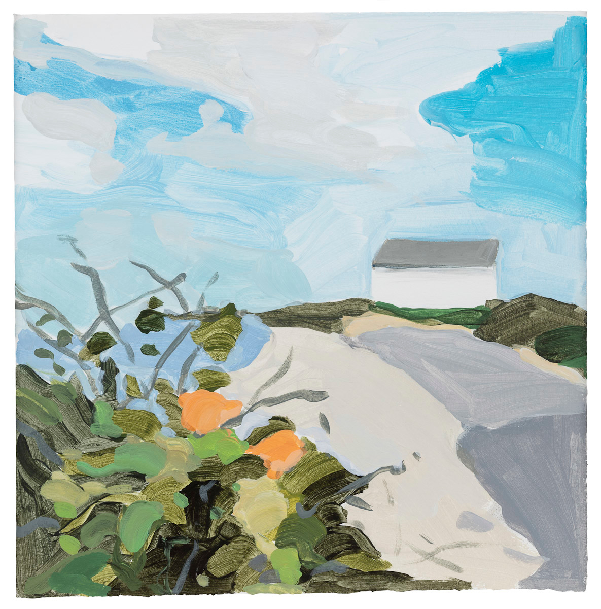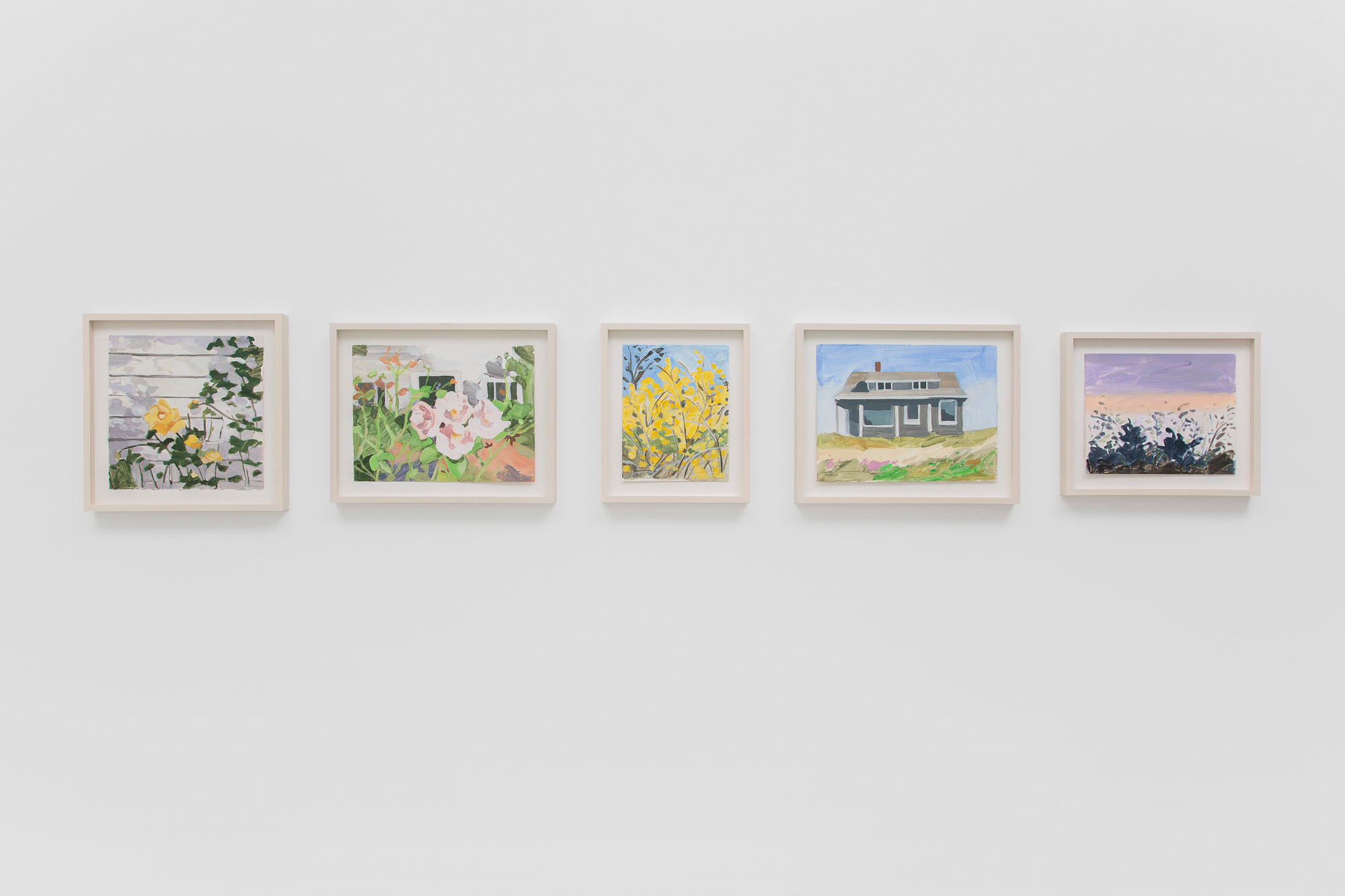 Gladstone Gallery is pleased to present an exhibition of recent work by artist Maureen Gallace. This exhibition will be the first devoted solely to her work on paper in which she uses both drawing and painting to evoke the vernacular milieu of the New England coast. Known for landscape and still life paintings, her meditative compositions belie a sophisticated rethinking of realism. With gestures equally immediate and thoughtful, Gallace reawakens the potential in the modernist idea of significant form which, as Clive Bell formulated, is a mode of simplified abstract representation where “we catch a sense of ultimate reality.” In her renderings of saltbox houses, beaches, and everyday flora, Gallace expands on this art historical premise to imbue her significant forms with personal significance—a recognizable sense of place shadowed with fugitive memory and the atmosphere of lived experience.