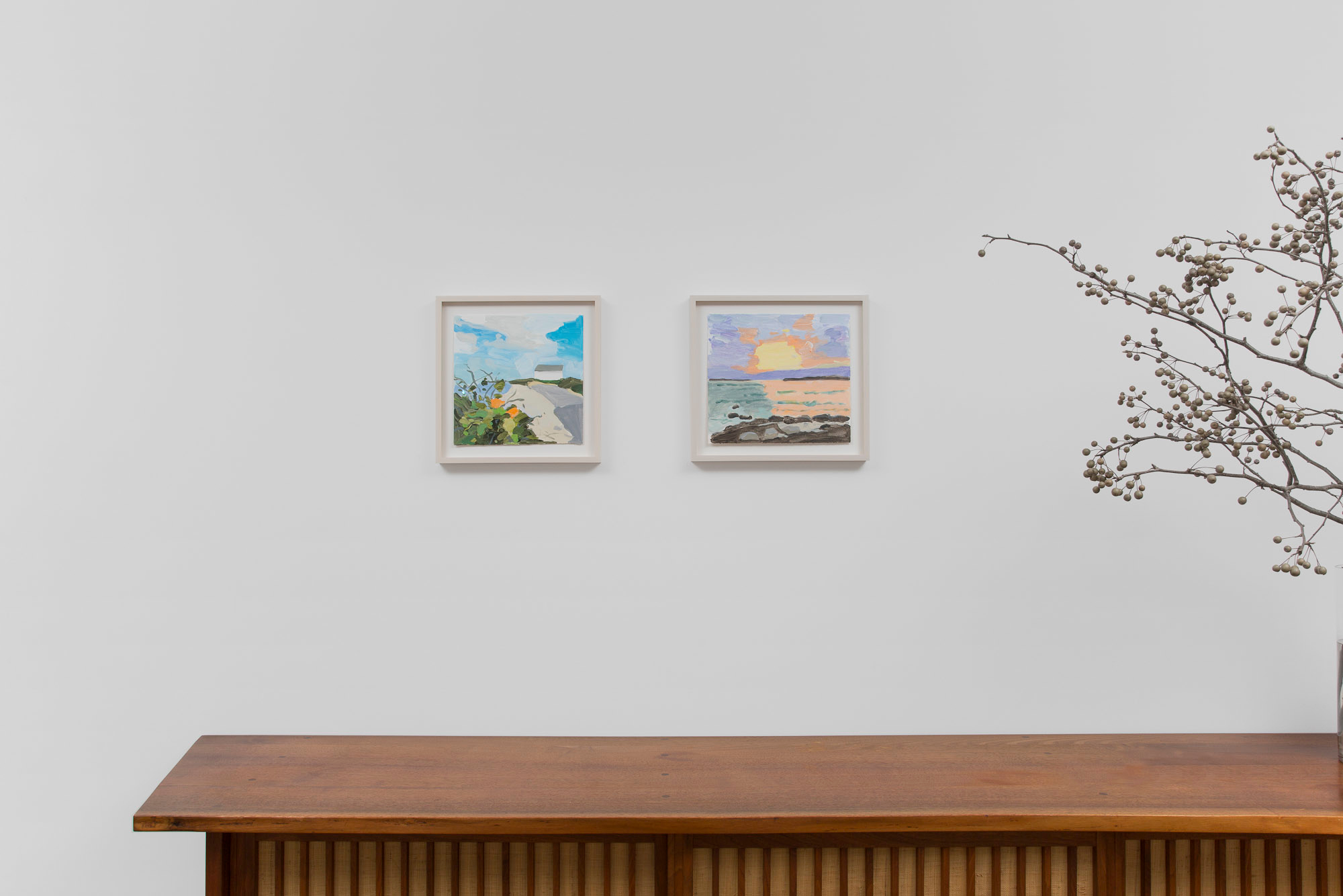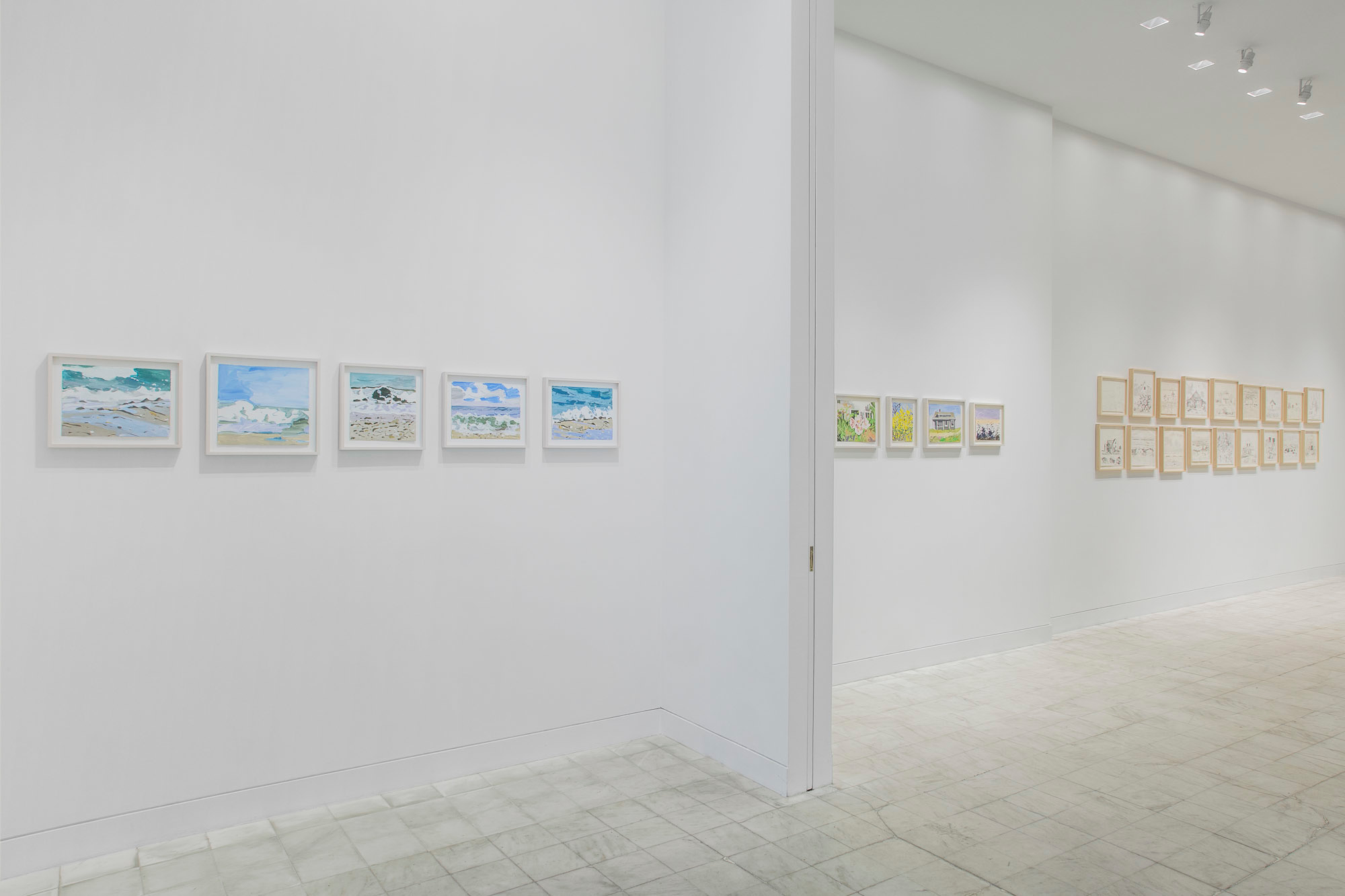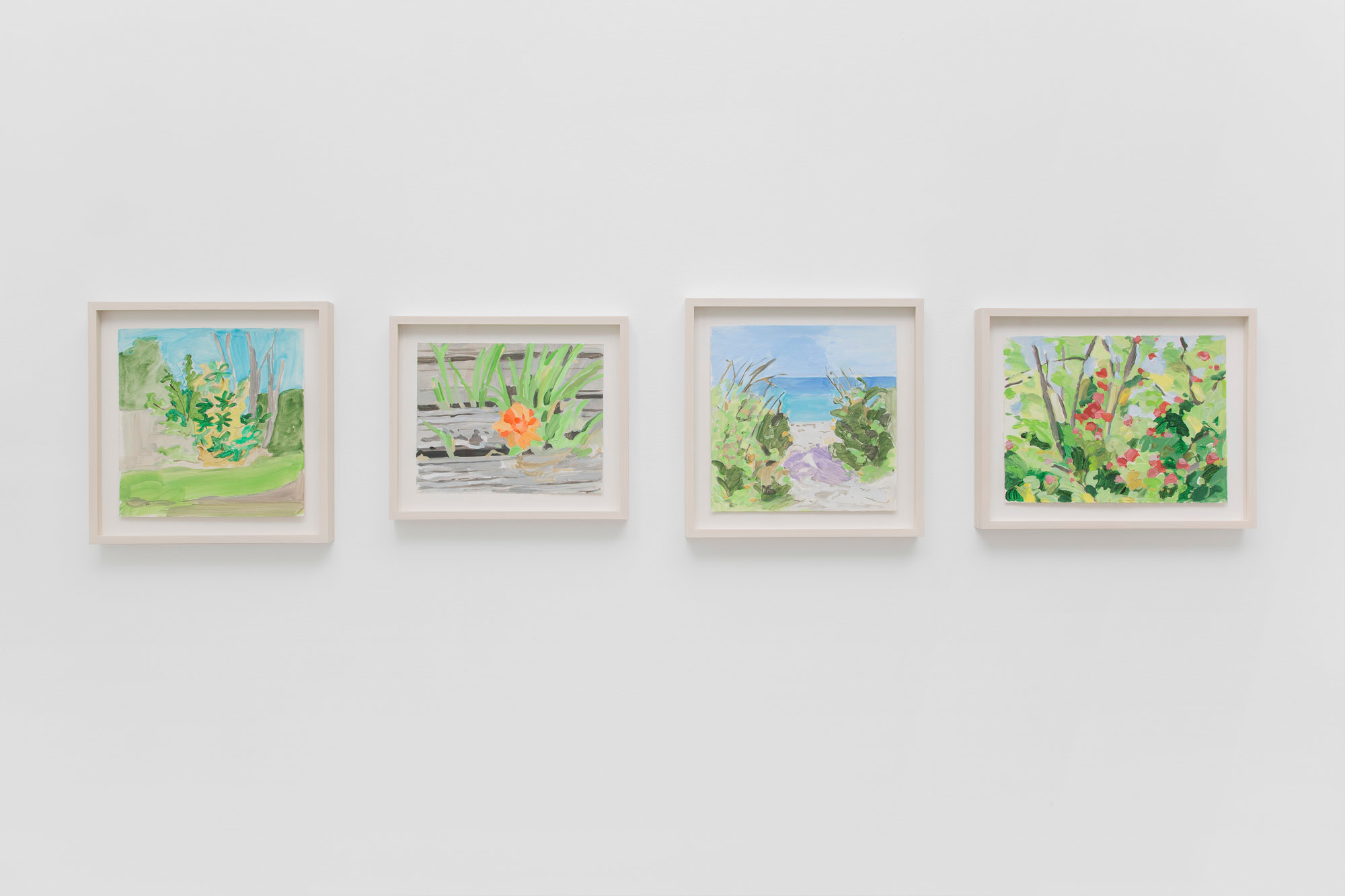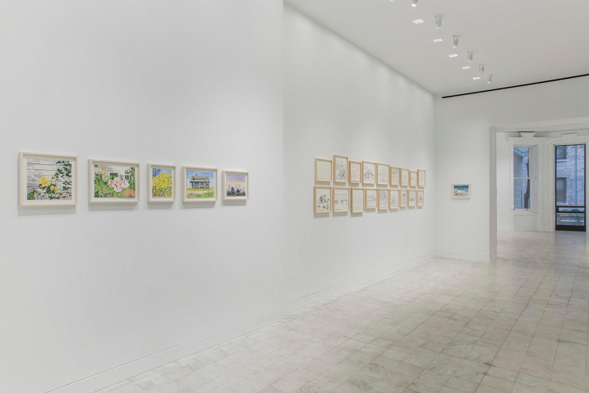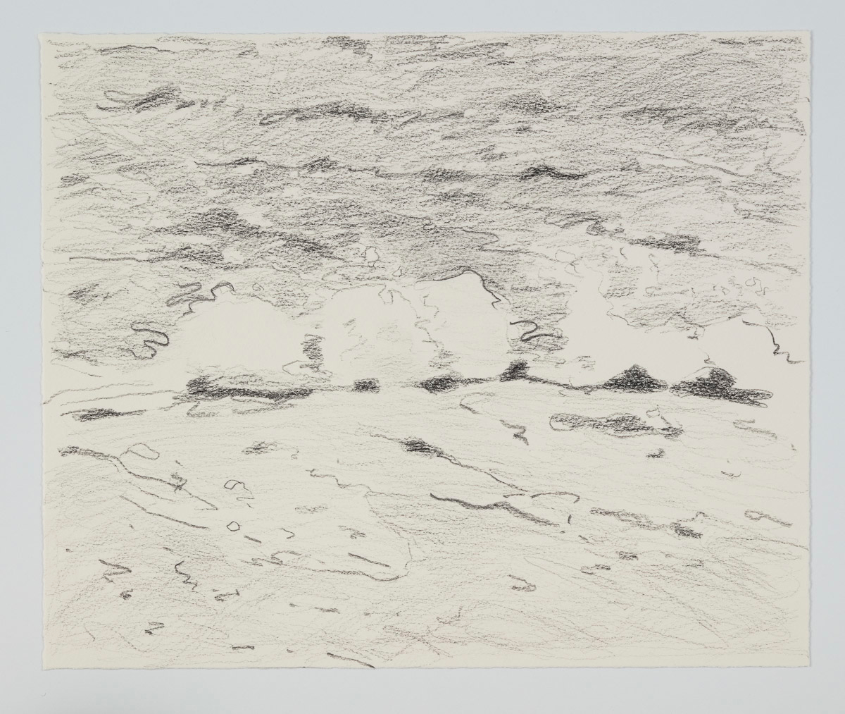 Gladstone Gallery is pleased to present an exhibition of recent work by artist Maureen Gallace. This exhibition will be the first devoted solely to her work on paper in which she uses both drawing and painting to evoke the vernacular milieu of the New England coast. Known for landscape and still life paintings, her meditative compositions belie a sophisticated rethinking of realism. With gestures equally immediate and thoughtful, Gallace reawakens the potential in the modernist idea of significant form which, as Clive Bell formulated, is a mode of simplified abstract representation where “we catch a sense of ultimate reality.” In her renderings of saltbox houses, beaches, and everyday flora, Gallace expands on this art historical premise to imbue her significant forms with personal significance—a recognizable sense of place shadowed with fugitive memory and the atmosphere of lived experience.