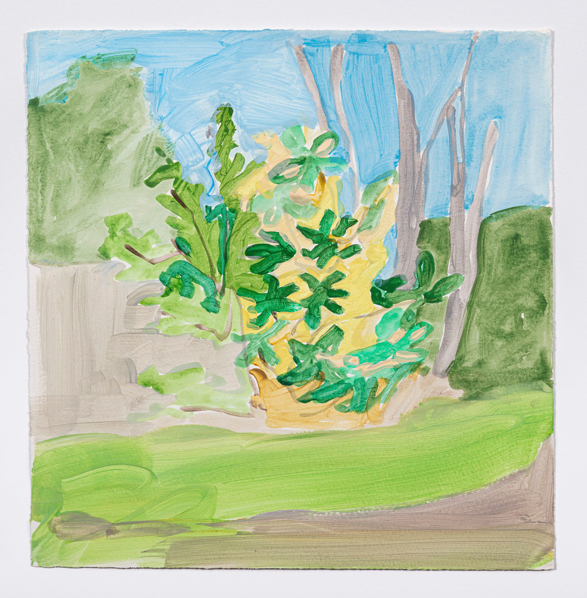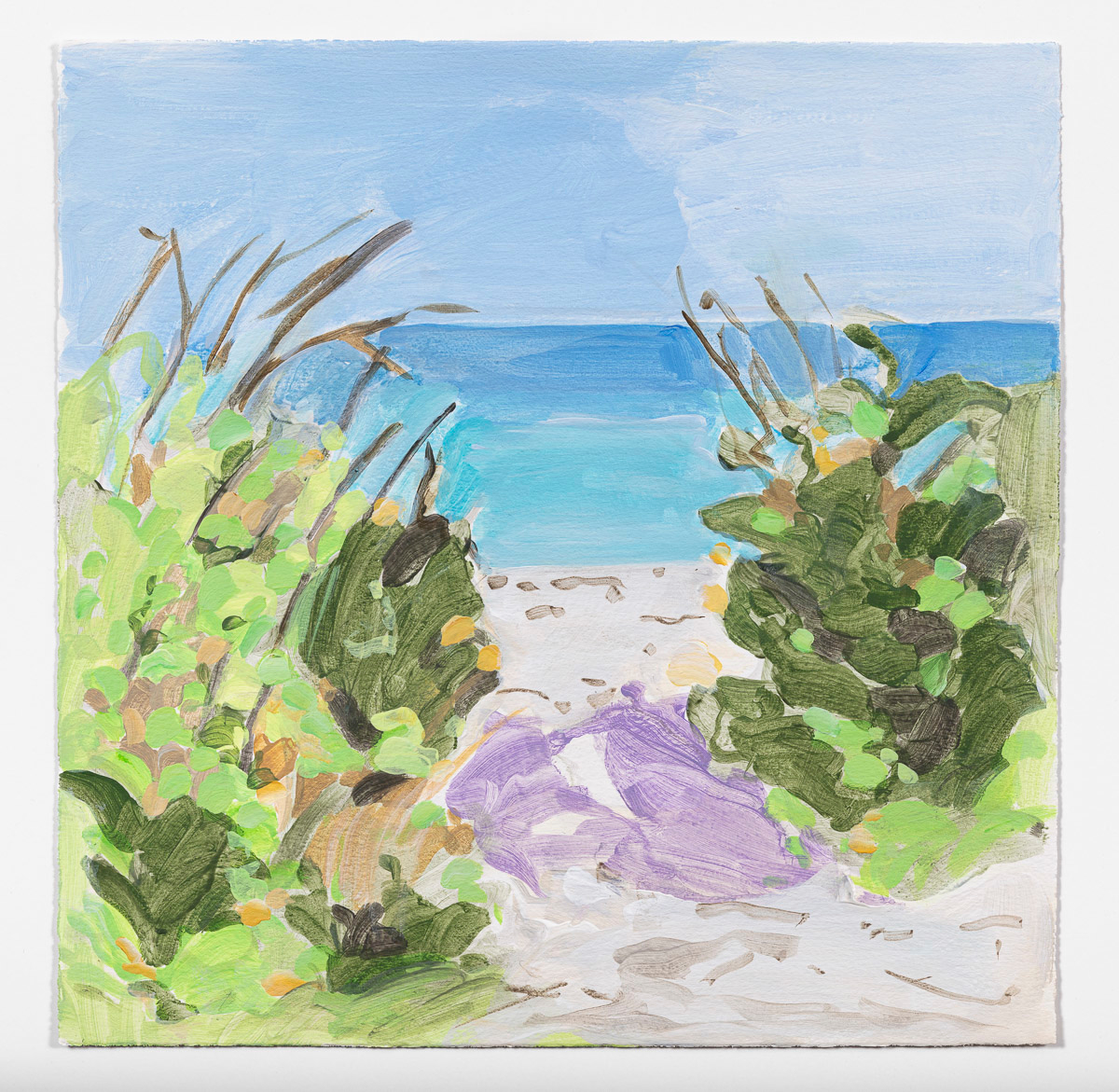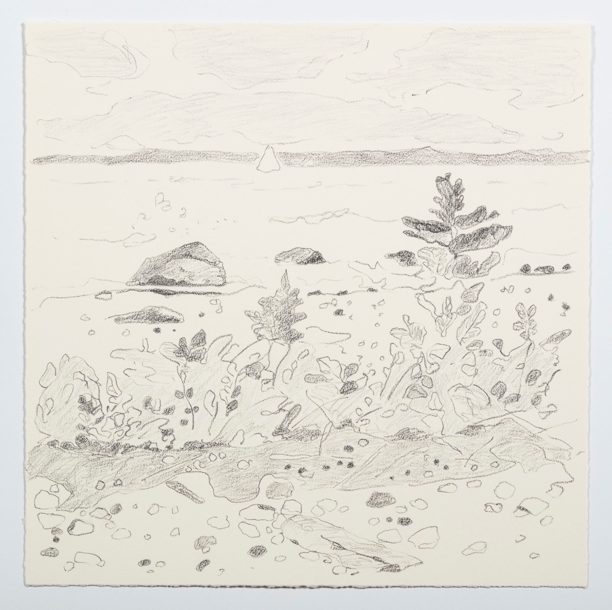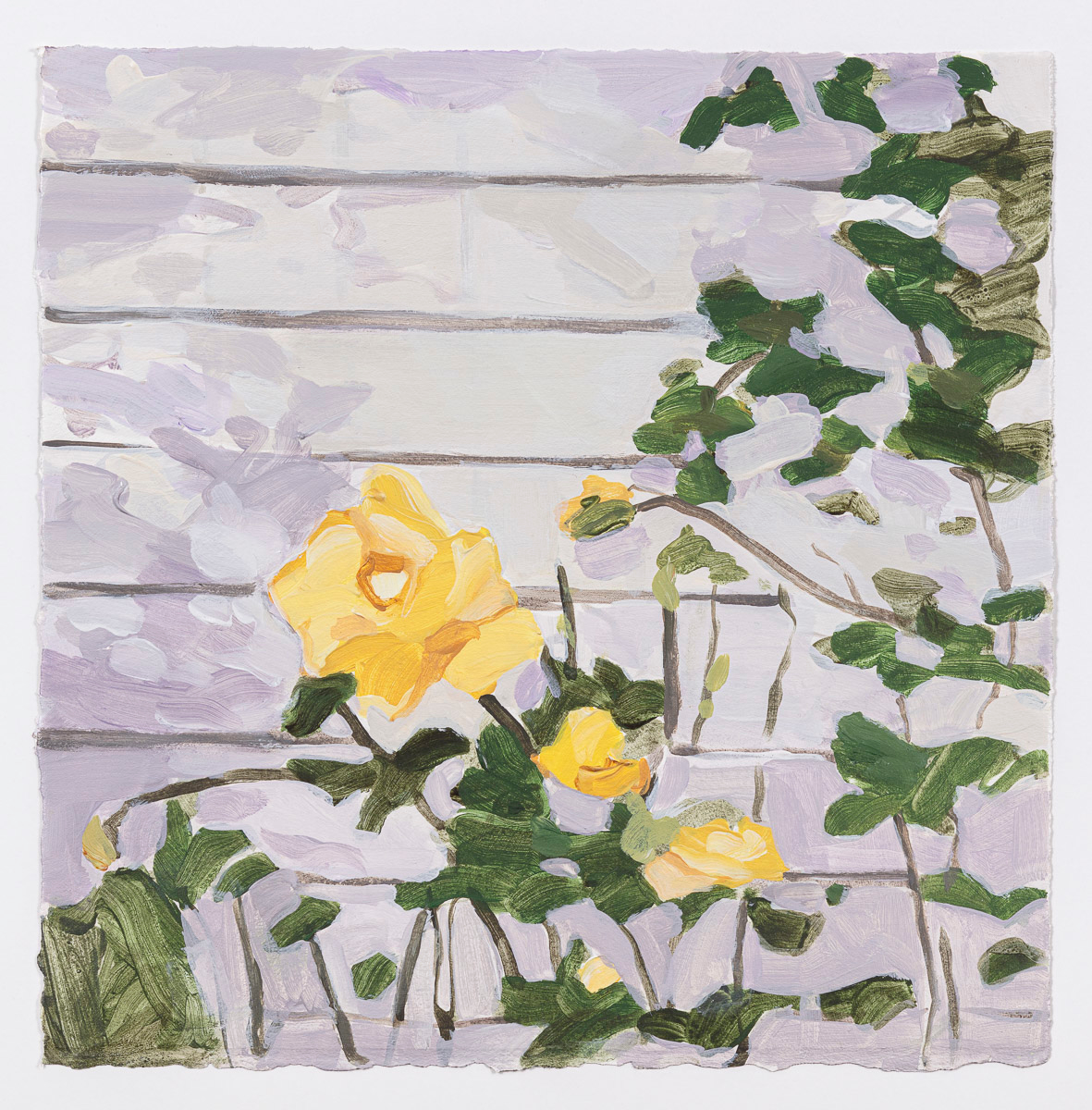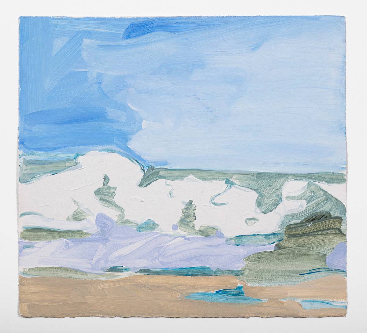 Gladstone Gallery is pleased to present an exhibition of recent work by artist Maureen Gallace. This exhibition will be the first devoted solely to her work on paper in which she uses both drawing and painting to evoke the vernacular milieu of the New England coast. Known for landscape and still life paintings, her meditative compositions belie a sophisticated rethinking of realism. With gestures equally immediate and thoughtful, Gallace reawakens the potential in the modernist idea of significant form which, as Clive Bell formulated, is a mode of simplified abstract representation where “we catch a sense of ultimate reality.” In her renderings of saltbox houses, beaches, and everyday flora, Gallace expands on this art historical premise to imbue her significant forms with personal significance—a recognizable sense of place shadowed with fugitive memory and the atmosphere of lived experience.