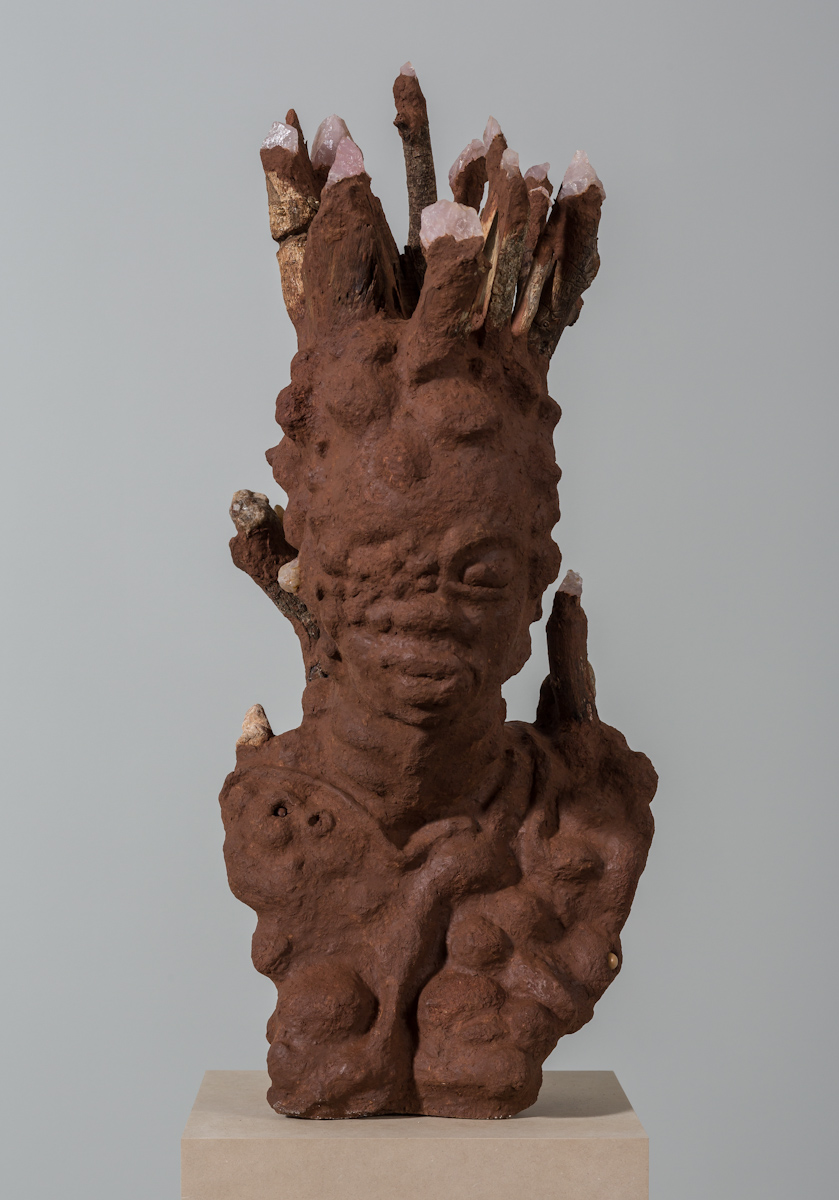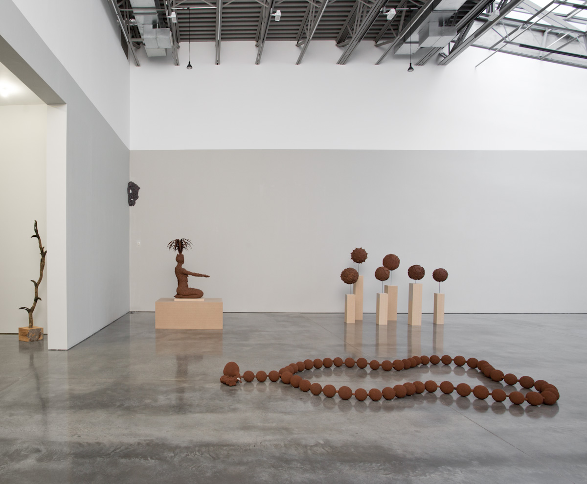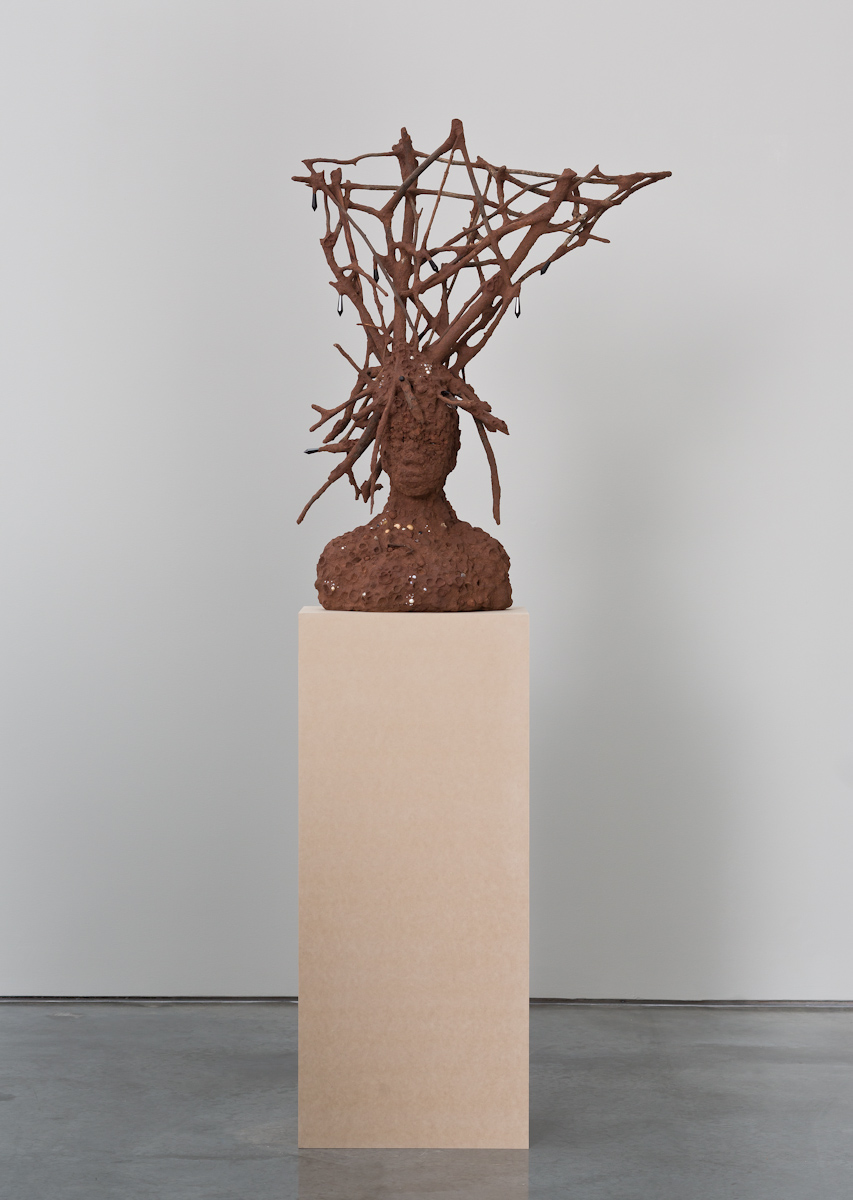 Gladstone is pleased to present an exhibition of new work by Wangechi Mutu. The title for this exhibition comes from the Gikuyu words for mud and trees, the prima materia for this body of work. Expanding her sculptural practice, this installation proposes an alternative to the systemic modes of representation in both Western and Eastern traditions by reimagining and recontextualizing the relations between the body, the natural world, and social forces. Well known for collages of hybrid forms drawn from folklore, popular culture, and art history, this new work marks an evolution in Mutu’s critique of the construction of self-image. The complex texture and form that these figures offer prompt inquiry into the relationship between human existence and environment, producing interactions both intimate and challenging.