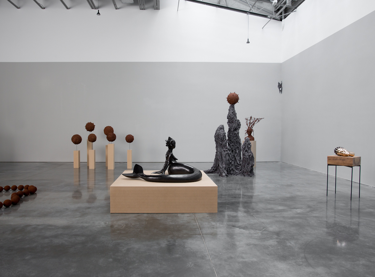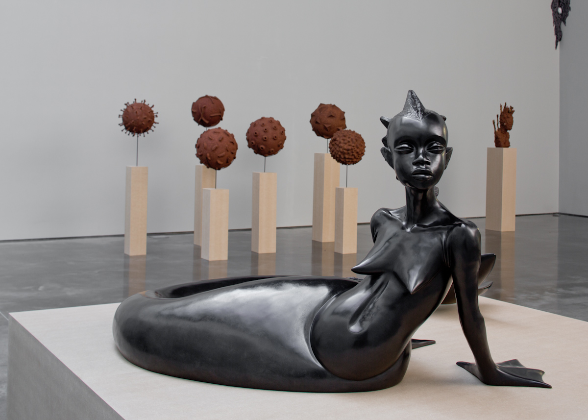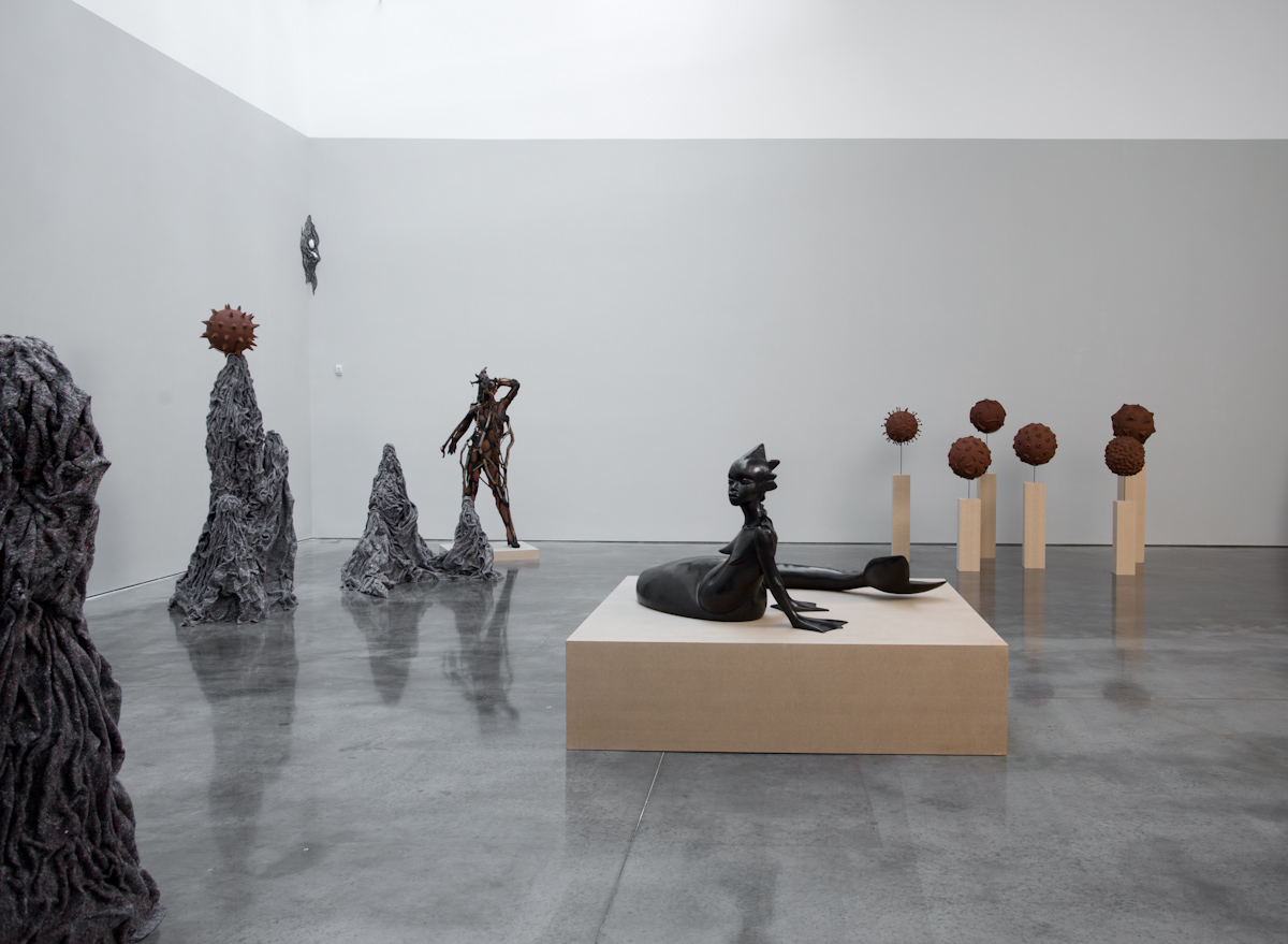 Gladstone is pleased to present an exhibition of new work by Wangechi Mutu. The title for this exhibition comes from the Gikuyu words for mud and trees, the prima materia for this body of work. Expanding her sculptural practice, this installation proposes an alternative to the systemic modes of representation in both Western and Eastern traditions by reimagining and recontextualizing the relations between the body, the natural world, and social forces. Well known for collages of hybrid forms drawn from folklore, popular culture, and art history, this new work marks an evolution in Mutu’s critique of the construction of self-image. The complex texture and form that these figures offer prompt inquiry into the relationship between human existence and environment, producing interactions both intimate and challenging.