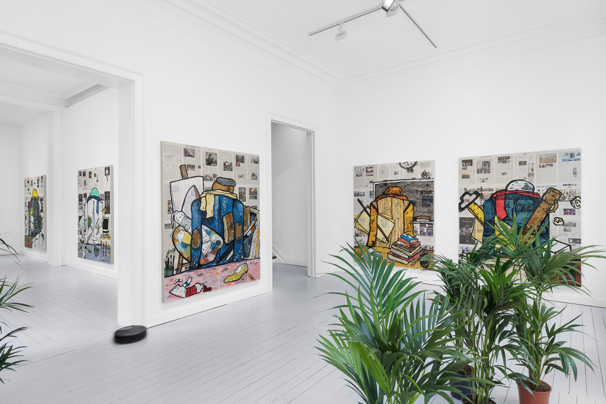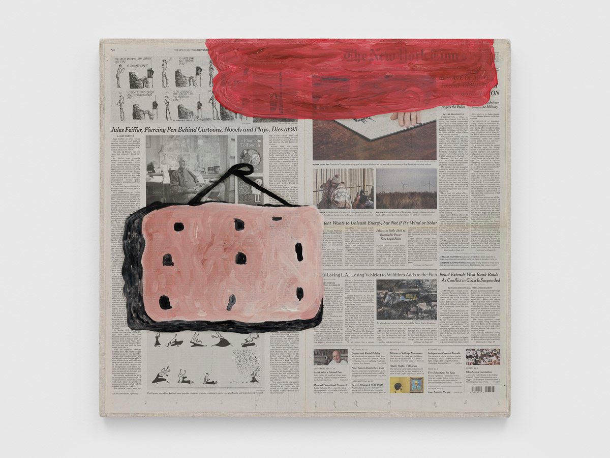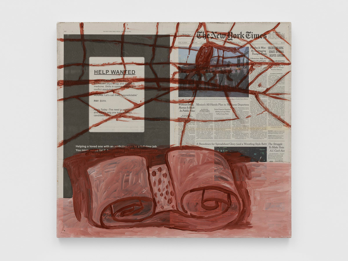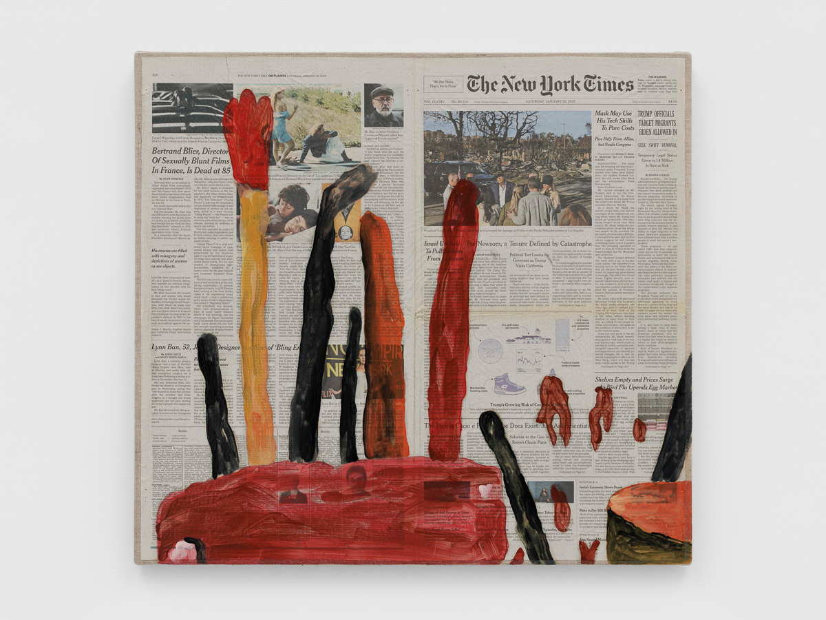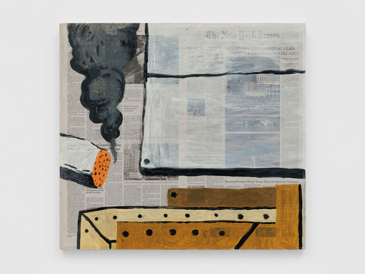 For his third solo exhibition at Gladstone Gallery, (the intellects take leave), Rirkrit Tiravanija presents seven new paintings on newspapers that reflect on global crises and American political upheaval. Inspired by the practice of the late Canadian-American artist Philip Guston, the new works build upon Tiravanija’s ongoing, multidisciplinary exploration of civil unrest and social issues.