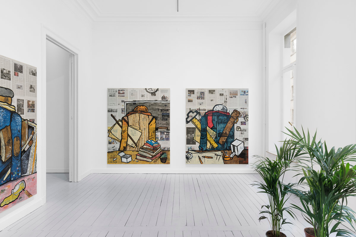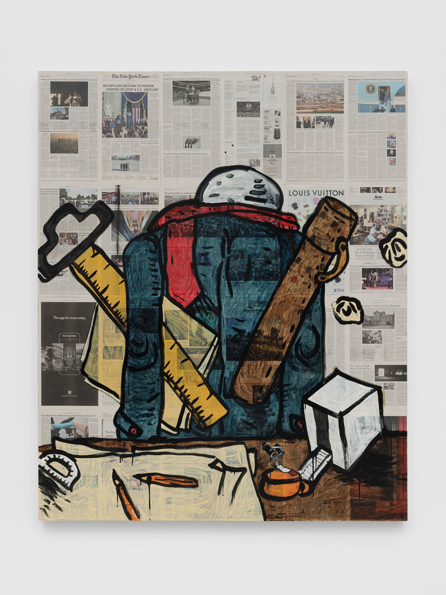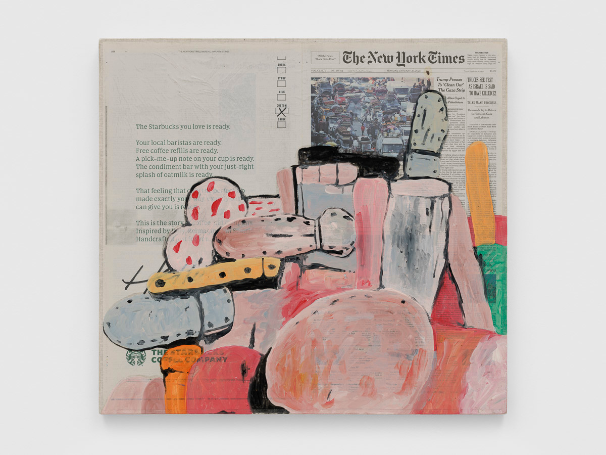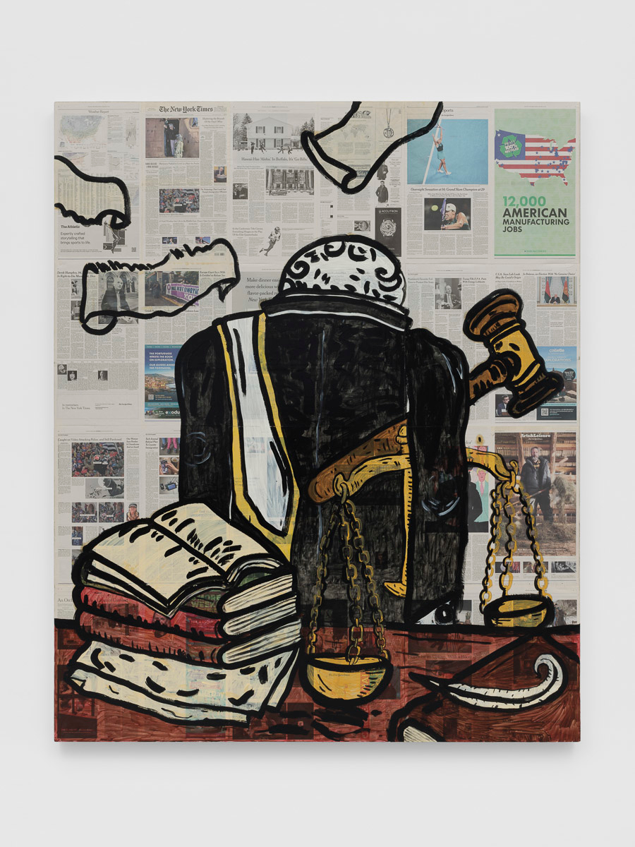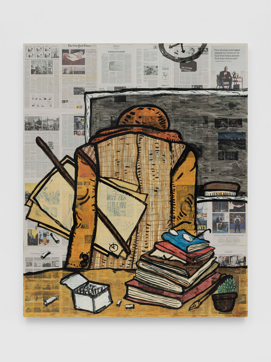 For his third solo exhibition at Gladstone Gallery, (the intellects take leave), Rirkrit Tiravanija presents seven new paintings on newspapers that reflect on global crises and American political upheaval. Inspired by the practice of the late Canadian-American artist Philip Guston, the new works build upon Tiravanija’s ongoing, multidisciplinary exploration of civil unrest and social issues.