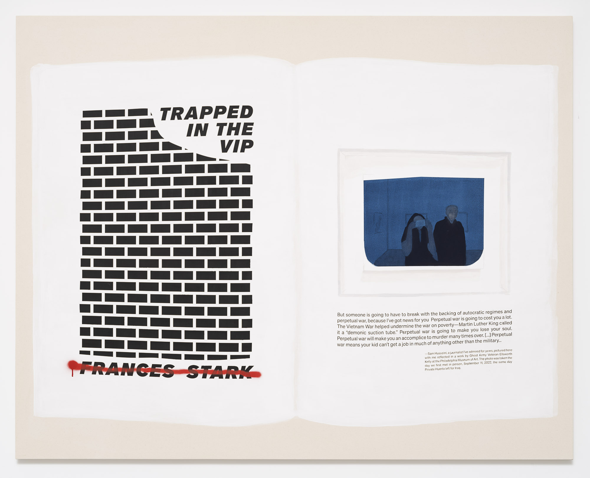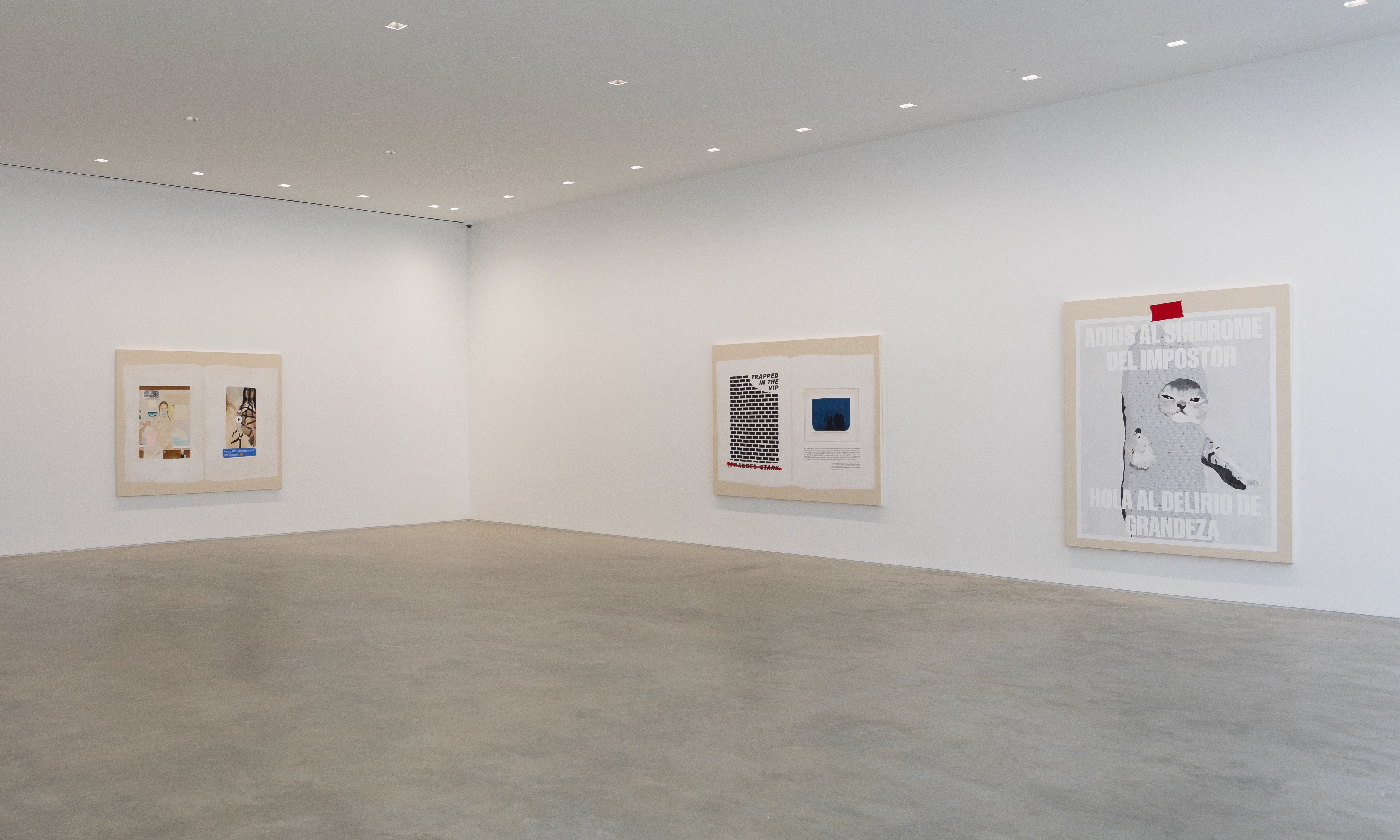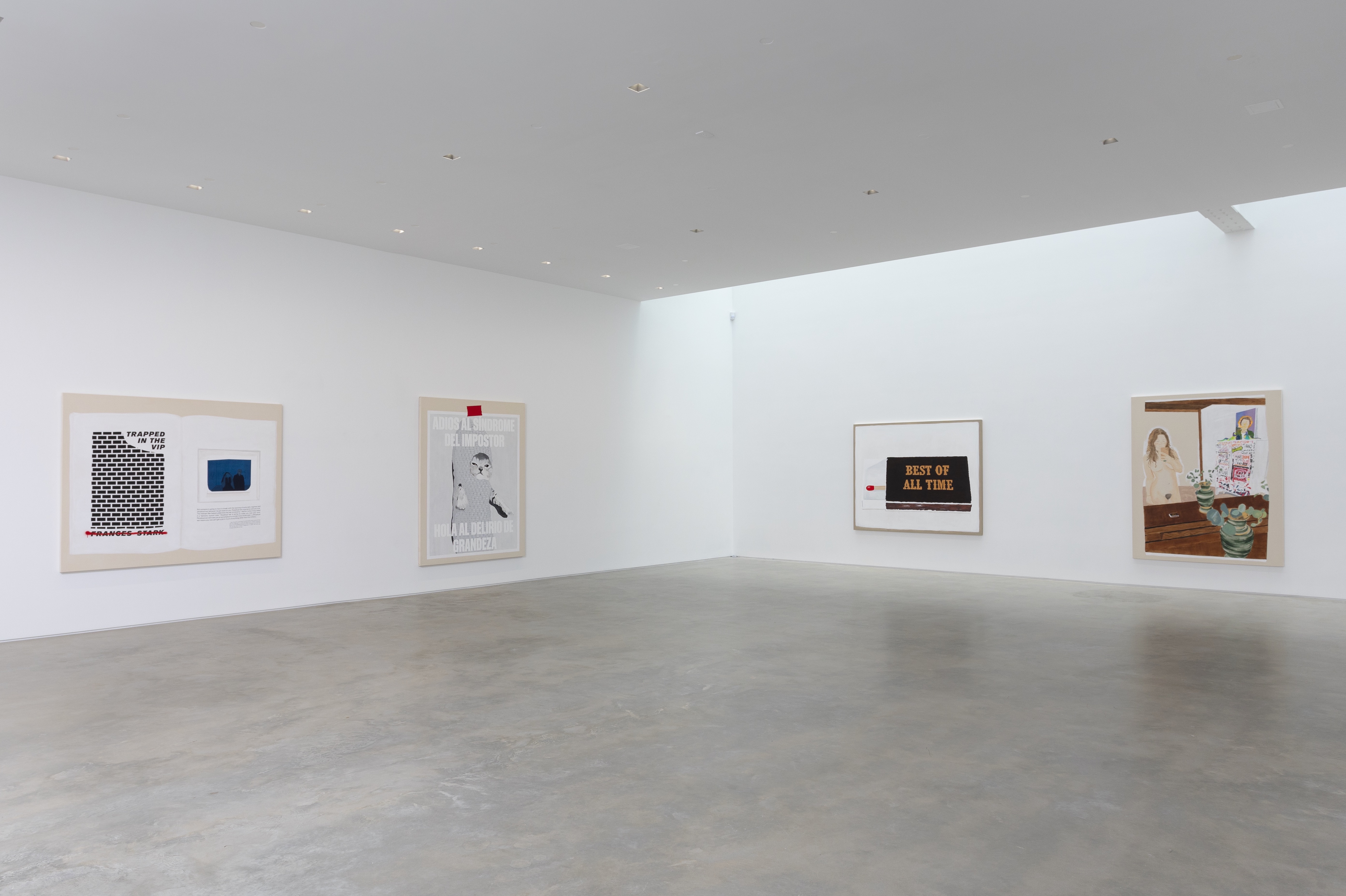 Gladstone is pleased to present Serve the Dominant Ideology or Stop Being a Pussy, the gallery’s first exhibition with artist and writer, Frances Stark. A key figure in the Los Angeles art community for more than three decades, Stark’s interdisciplinary practice incorporates painting, video, collage, performance, drawing, and text to explore how, like literature, personal interactions can become surrogate spaces for broader cultural experiences. At the center of Stark’s often-confessional practice are a series of propositions regarding reflection, repetition, and emotional reconstitution; merging the visual with the textual and fantasy with biography, the artist highlights the neglected sites of overlap that connect art with life.