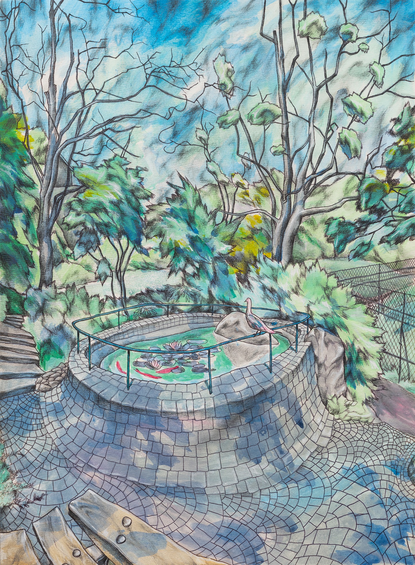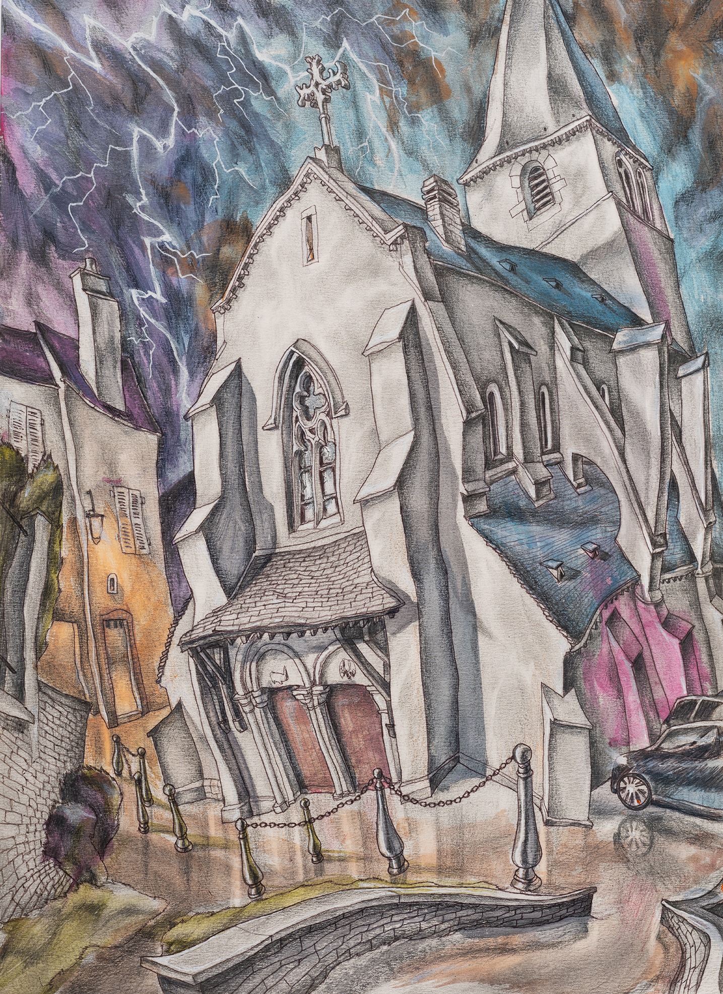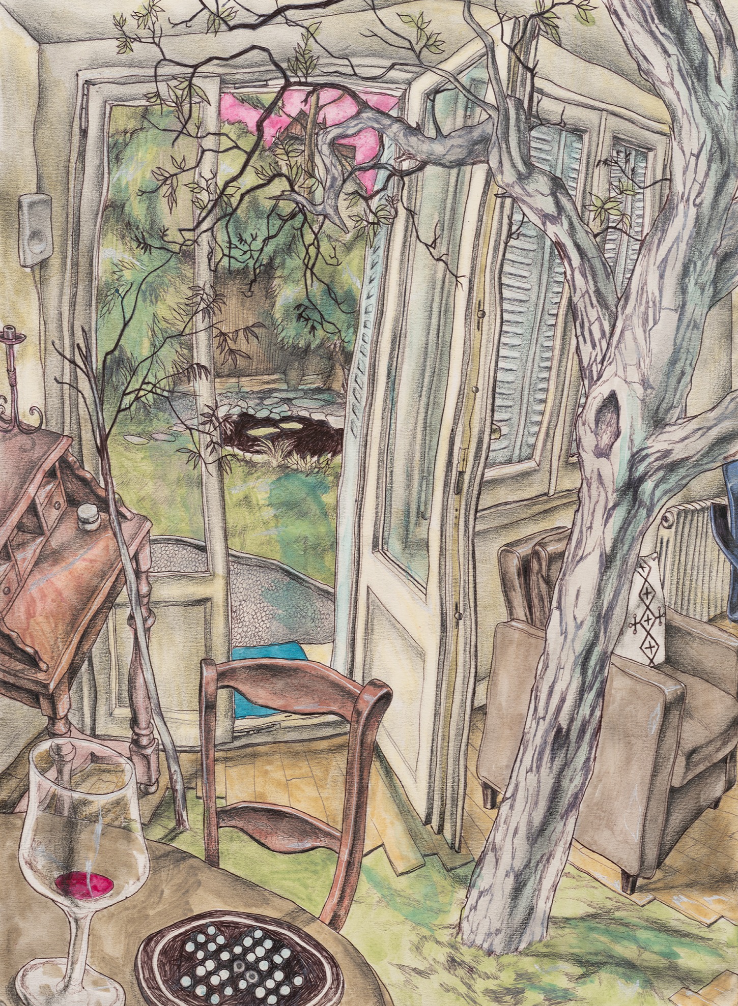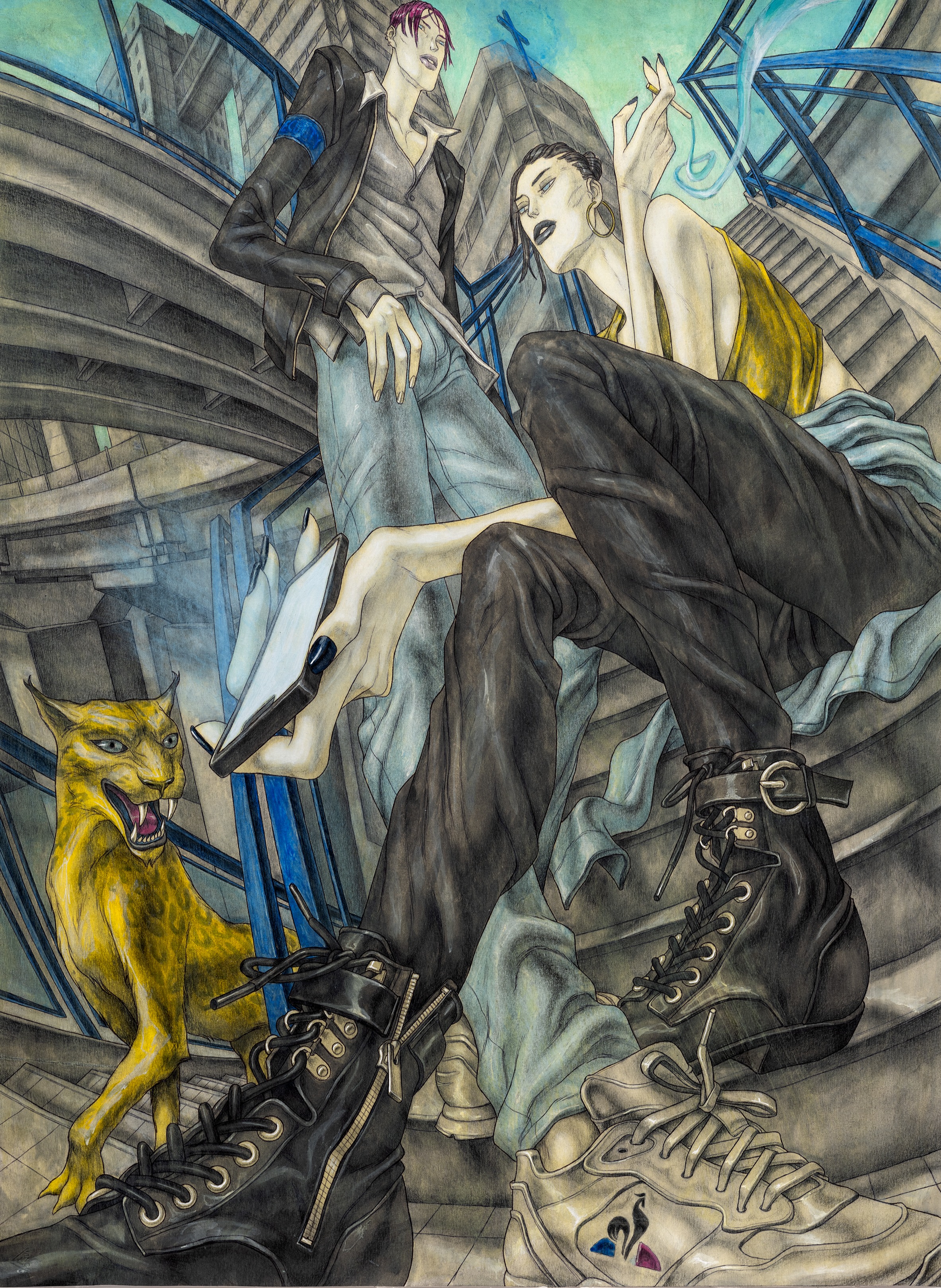 David Rappeneau is a French artist. Those are the only facts he will confirm: his name, citizenry, and occupation. In a time of ever-expanding transparency and dissolving privacy standards, his refusal to participate in interviews, appear at his openings, or participate in person with the art world stands apart from accepted practices of self-promotion. Often referred to as an enigma himself, Rappeneau’s work mirrors this aura of laconic mystique, creating a stark contrast between heavily and carefully worked drawings and an artist impossible to see. His drawings, devoid of explicit language, employ ballpoint pens, fluorescent markers, and acrylic paint to craft distorted yet deeply saturated depictions of enigmatic individuals and cryptic landscapes. His subjects can be grungy youth, absorbed in mundane yet mesmerizing activities, video games, fleeting encounters, conspicuous consumption, or any other quickly achievable means of escape. Rappeneau’s depictions recall surrealism with a documentarian lens, revealing youth culture with the stylized allure reminiscent of graphic novels and anime, with art historical references as far reaching as Mannerism, Albrecht Dürer, and Egon Schiele. Experimenting with perspective and figuration, Rappeneau captures the complexities of youth within an eerie and seductive world. Rappeneau’s provocative artworks offer a glimpse into a dystopian realm where mutated bodies, narcotics, and melancholic longing converge within the embodied celestial creations. David Rappeneau has exhibited with Gladstone Gallery, Brussels; Queer Thoughts; FRAC Corsica; Super Dakota; Galerie Derouillon; Peres Projects; Edward Ressle; Centre d’Art Contemporain La Synagogue de Delme; Galerie Crevecoeur.