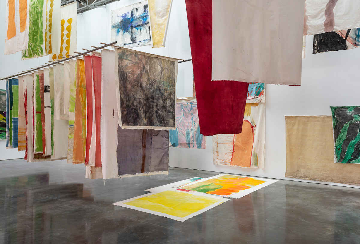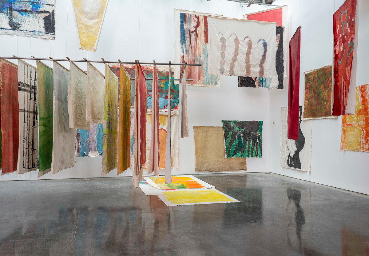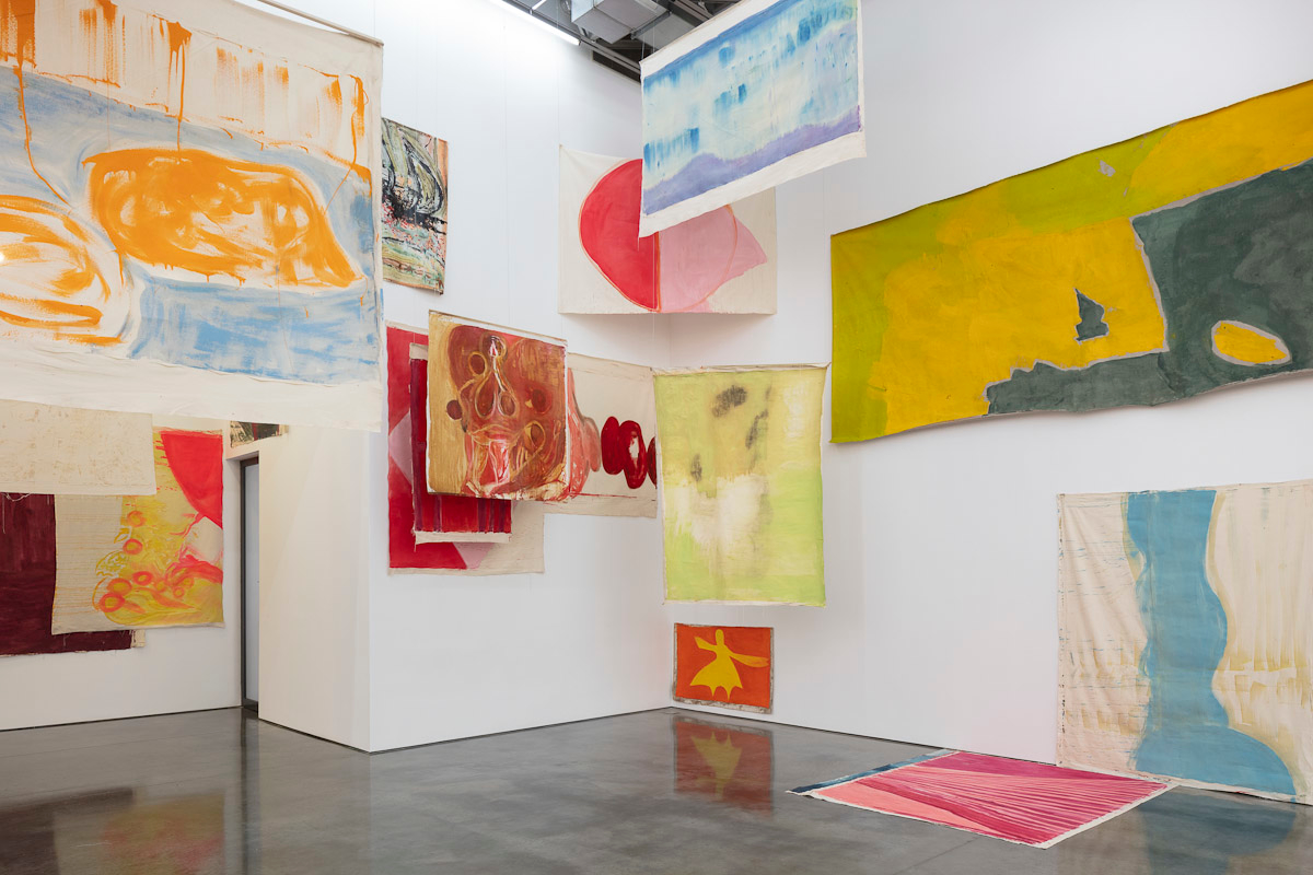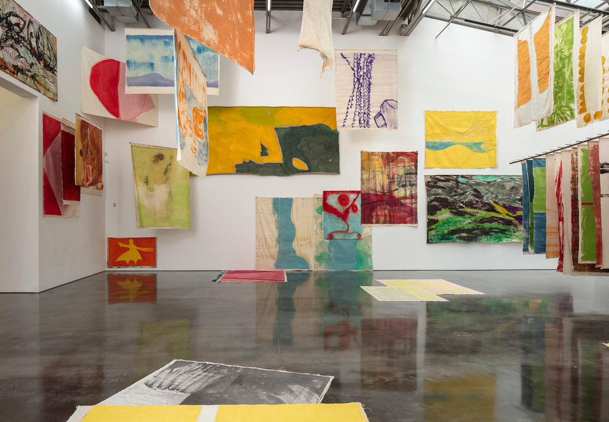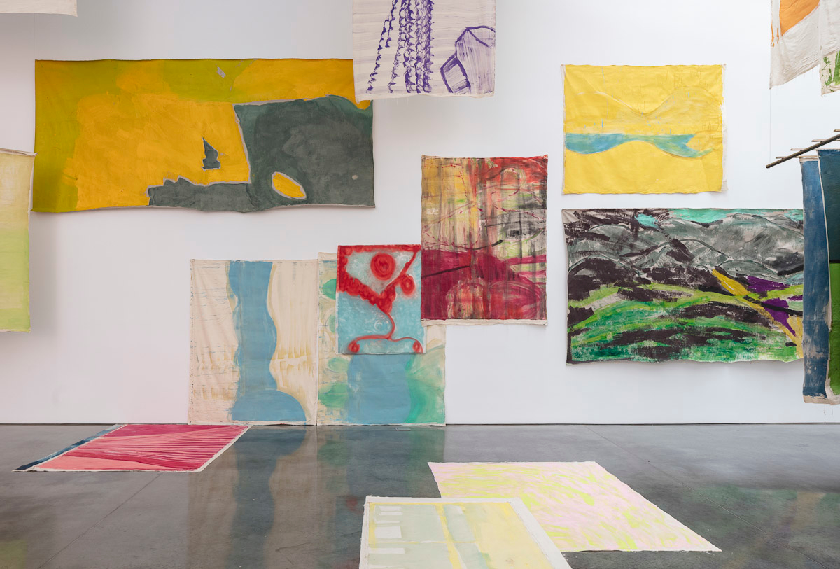 Gladstone is pleased to present its first exhibition with Argentine-Swiss artist Vivian Suter. Comprised exclusively of mixed media paintings, this show furthers Suter’s singular style of installation, in which canvases flood the gallery space, creating an enveloping mise-en-scène of visual characters that intermingle, juxtapose, and cavort with one another. Composed individually, the works on view – through their unique display – inevitably become an interconnected painterly biome, openly inviting gallery-goers into the artist’s cosmos.