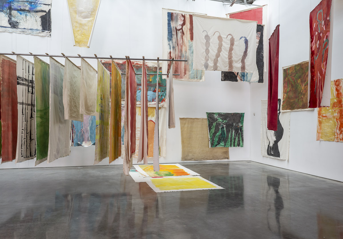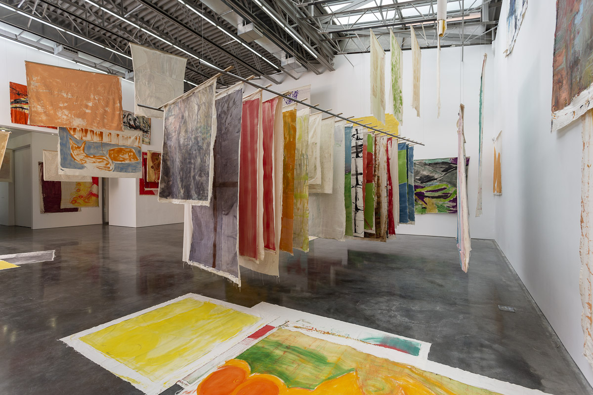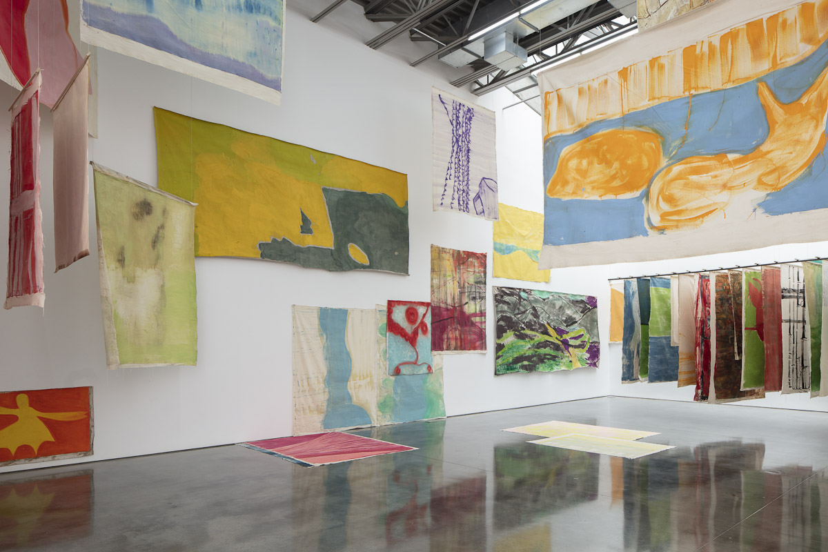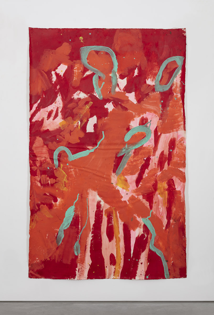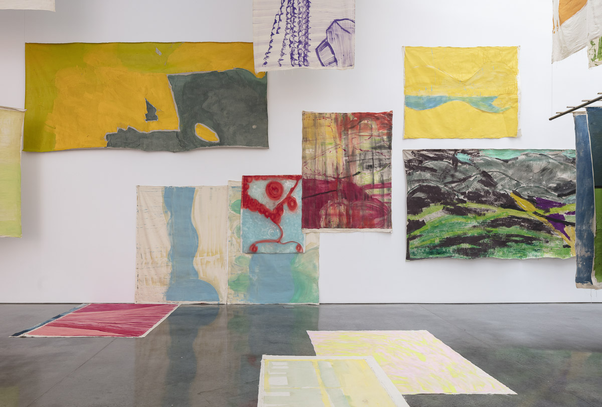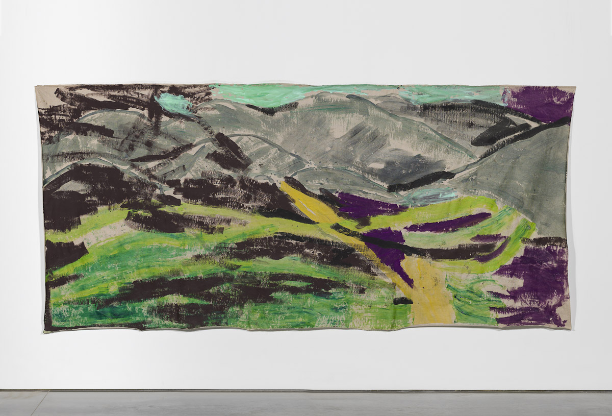 Gladstone is pleased to present its first exhibition with Argentine-Swiss artist Vivian Suter. Comprised exclusively of mixed media paintings, this show furthers Suter’s singular style of installation, in which canvases flood the gallery space, creating an enveloping mise-en-scène of visual characters that intermingle, juxtapose, and cavort with one another. Composed individually, the works on view – through their unique display – inevitably become an interconnected painterly biome, openly inviting gallery-goers into the artist’s cosmos.