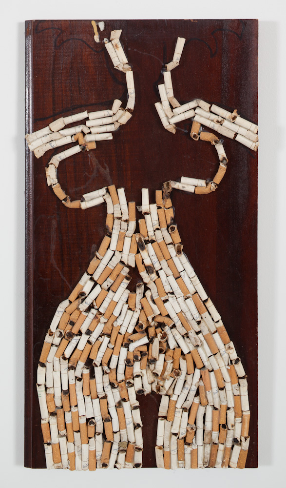Cigarette butts in wood drawer