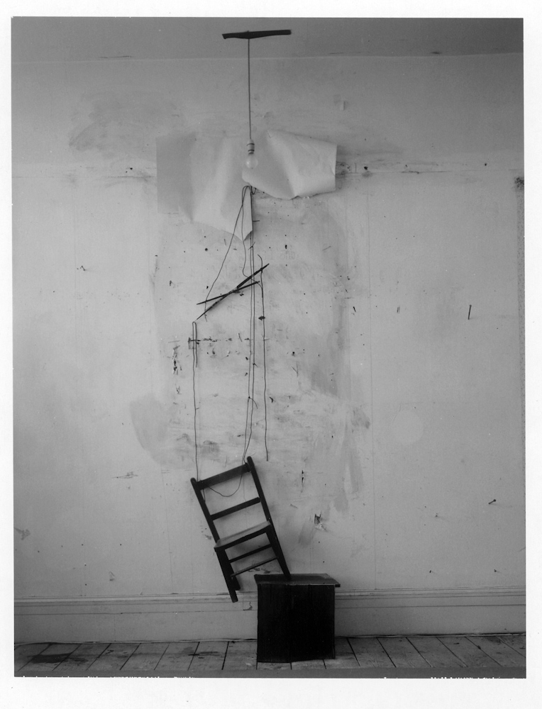 Untitled # 143 A–G, (A: Coat and note stand, B: Hanging picture, C: Hanging shoes, D: Self portrait, E: Hanging chair, F: Armoire and cloth, G: The end), 2001