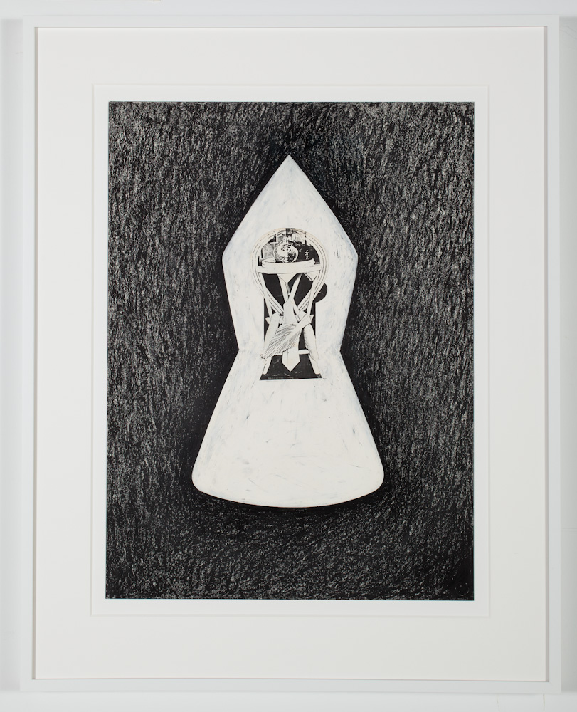 Charcoal and oil crayon with photocopy and tape on paper