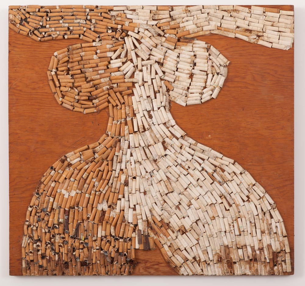 Oil, mortar, colored glass, pebbles and shells on hardboard