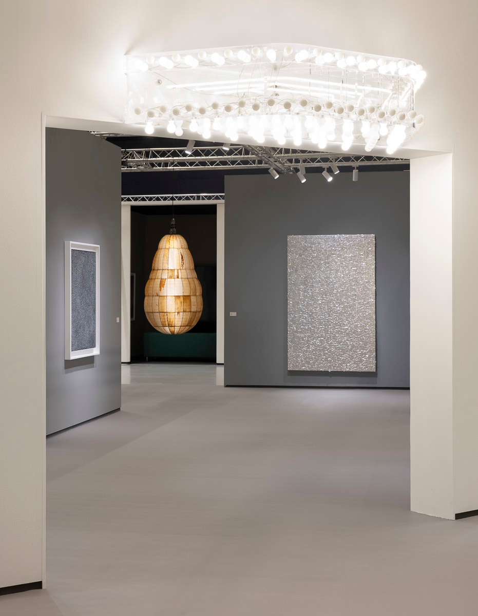 Other highlights of Gladstone’s Frieze Seoul presentation include new paintings by Rirkrit Tiravanija and Anicka Yi (alongside three recent kelp lamps by the artist), a recent marquee by Philippe Parreno (presented in Parreno’s solo show at the Leeum Museum of Art, Seoul, in 2024), and a group of Salvo paintings as well as a Yayoi Kusama Infinity Net painting, both from the 2000s. The Frieze booth also features a major Robert Rauschenberg piece, in advance of the artist’s solo exhibition at M+ in Hong Kong, Robert Rauschenberg and Asia, opening November 22, 2025.