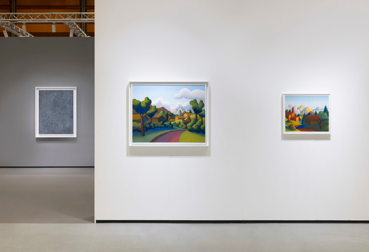 Gladstone Gallery returns to Frieze Seoul with a presentation comprising new, recent, and historic works by artists spanning the gallery’s dynamic roster. The installation’s centerpiece is a new large-scale, multi-color mountain lake landscape painting by Ugo Rondinone—his first in this monumental scale, coinciding with the opening of his solo exhibition at Gladstone’s Seoul location, in beauty bright, on view through October 18, 2025. Featuring 13 new multicolor lake paintings inspired by the landscape of Lake Lucerne, Switzerland where Rondinone spent his childhood, as well as the artist’s longstanding interest in the relationship between man and nature, in beauty bright debuts a new multi-color palette by Rondinone that has never before been exhibited.